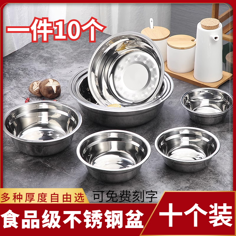 十个装不锈钢盆子批发小盆清仓盆汤碗商用摆摊家用餐饮店铁盆汤盆