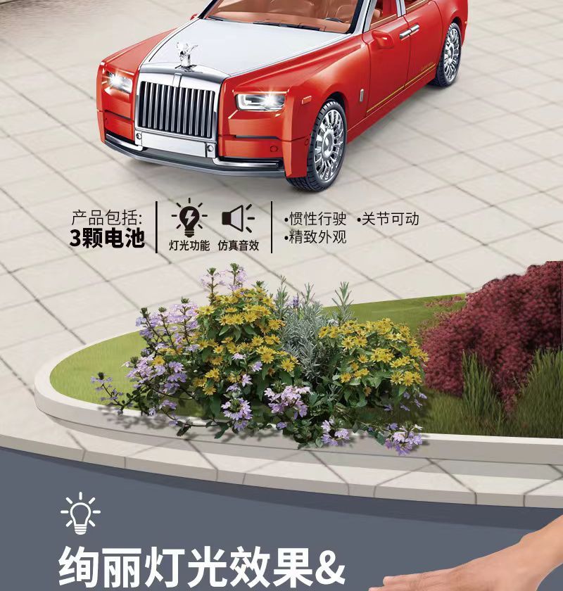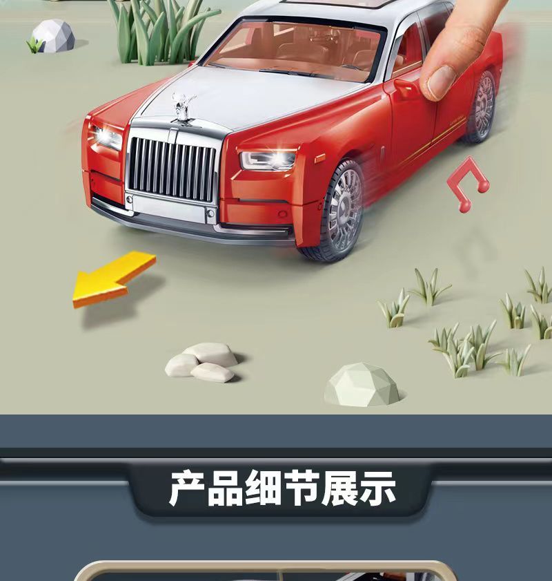 劳斯莱斯豪华仿真汽车模型六开门声光惯性玩具汽车男孩礼物摆件