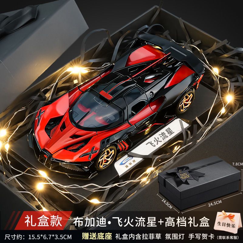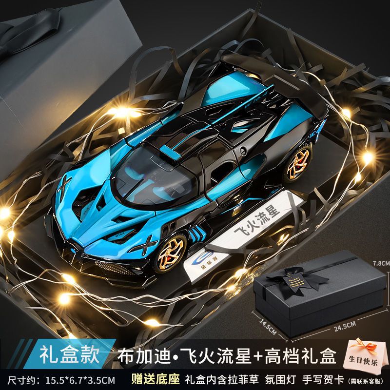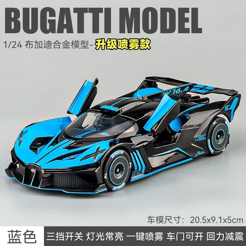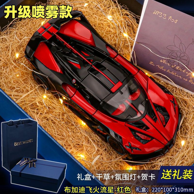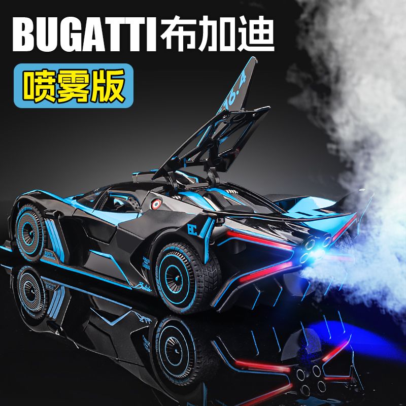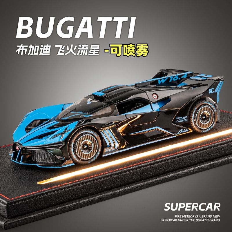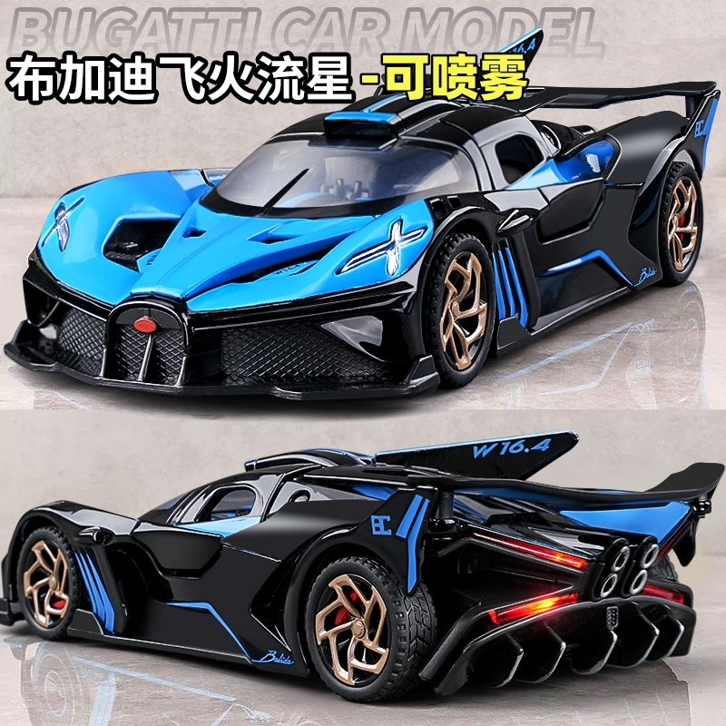 布加迪飞火流星车模合金仿真超跑汽车模型摆件可喷雾玩具车男孩
