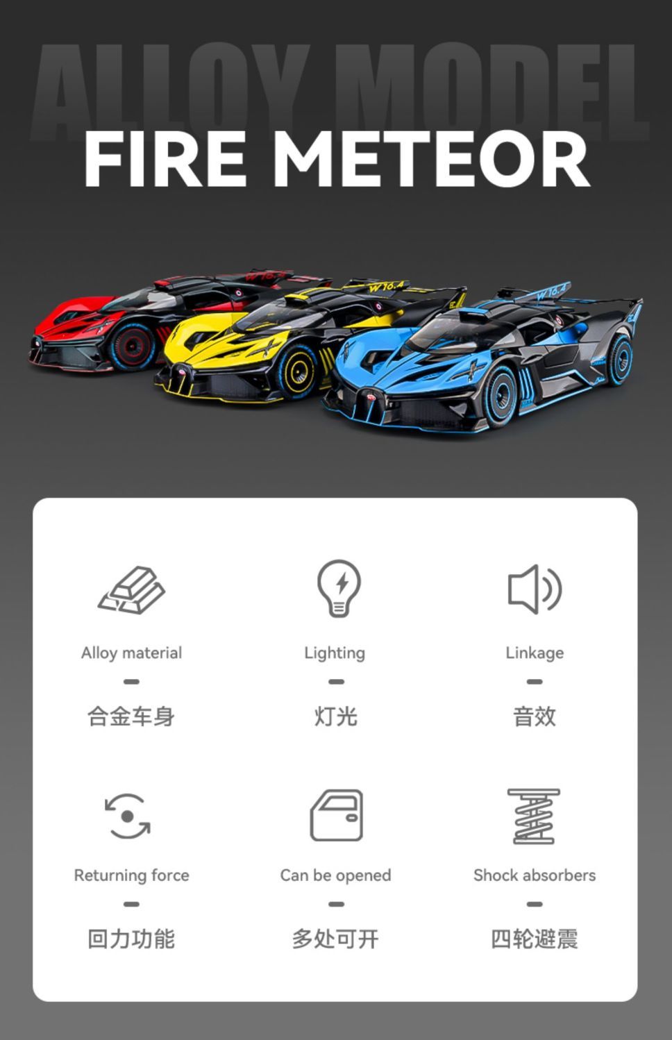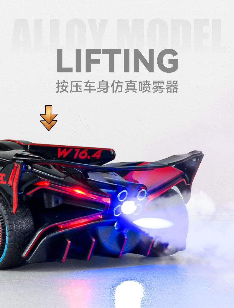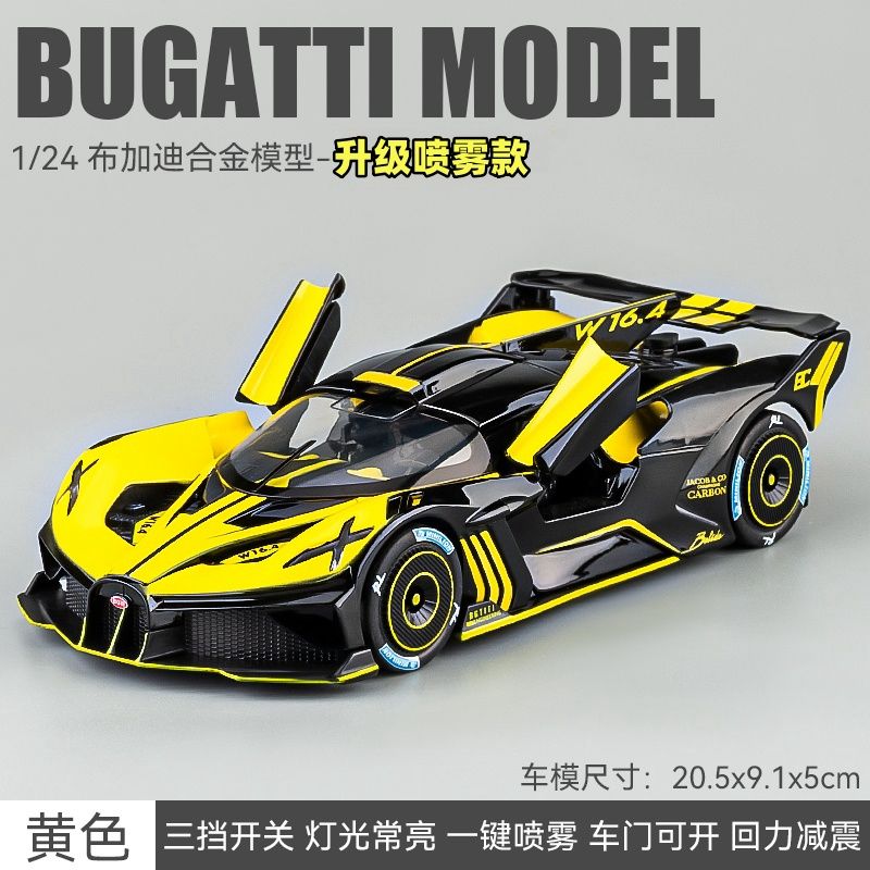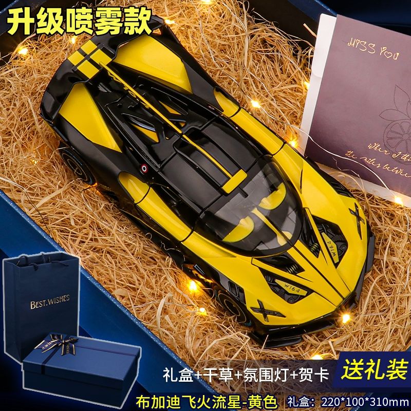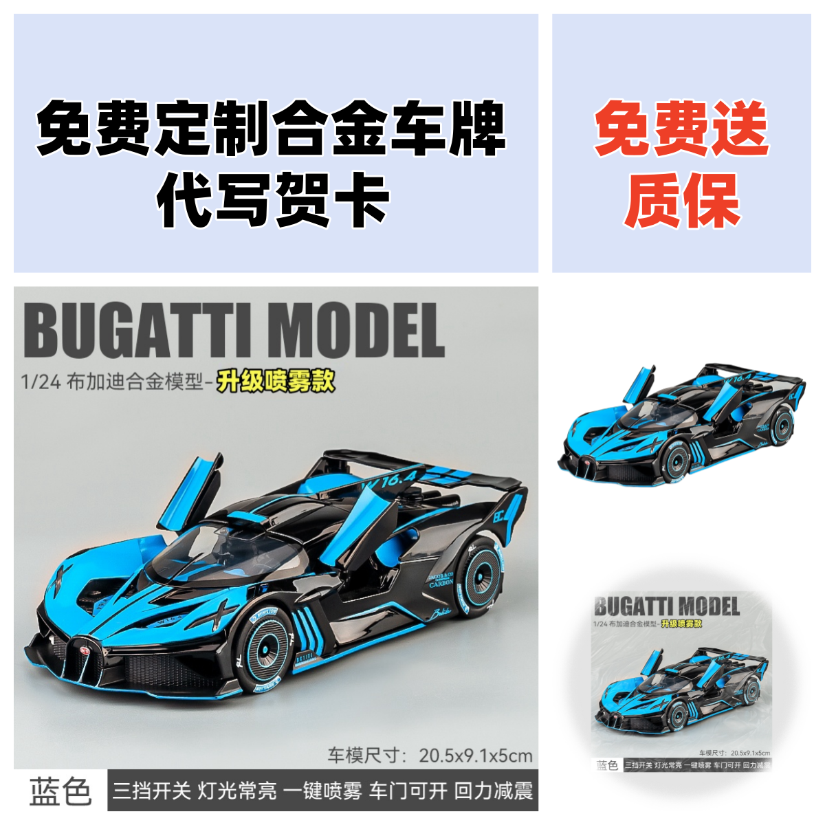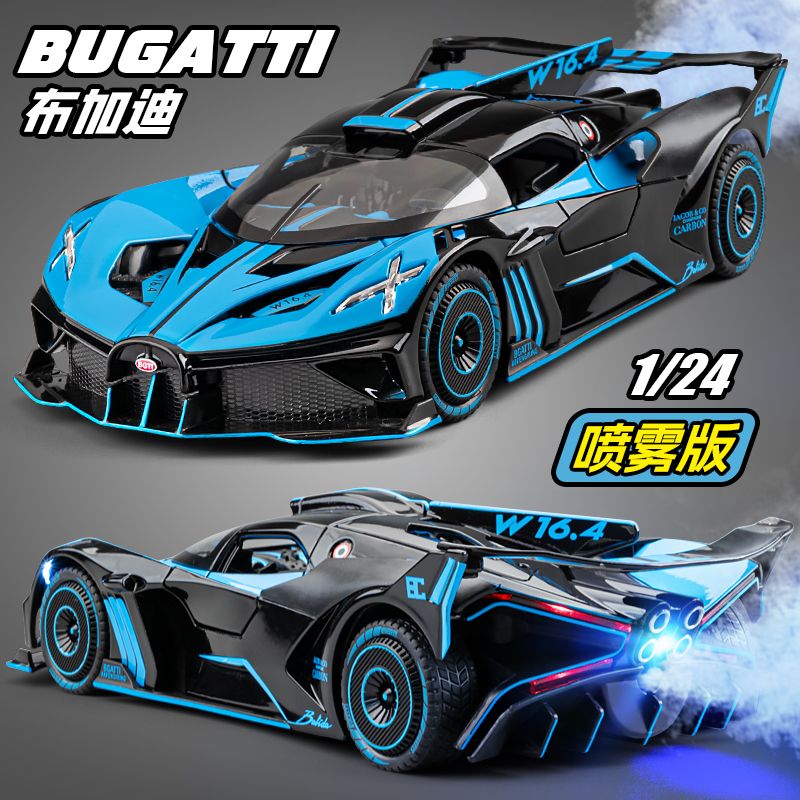 布加迪飞火流星车模合金仿真超跑汽车模型摆件可喷雾玩具车男孩