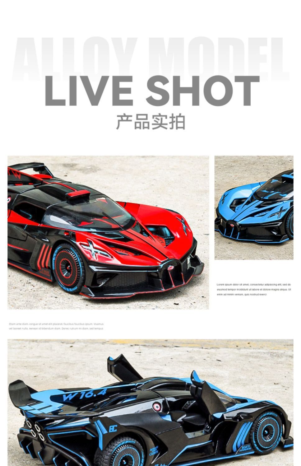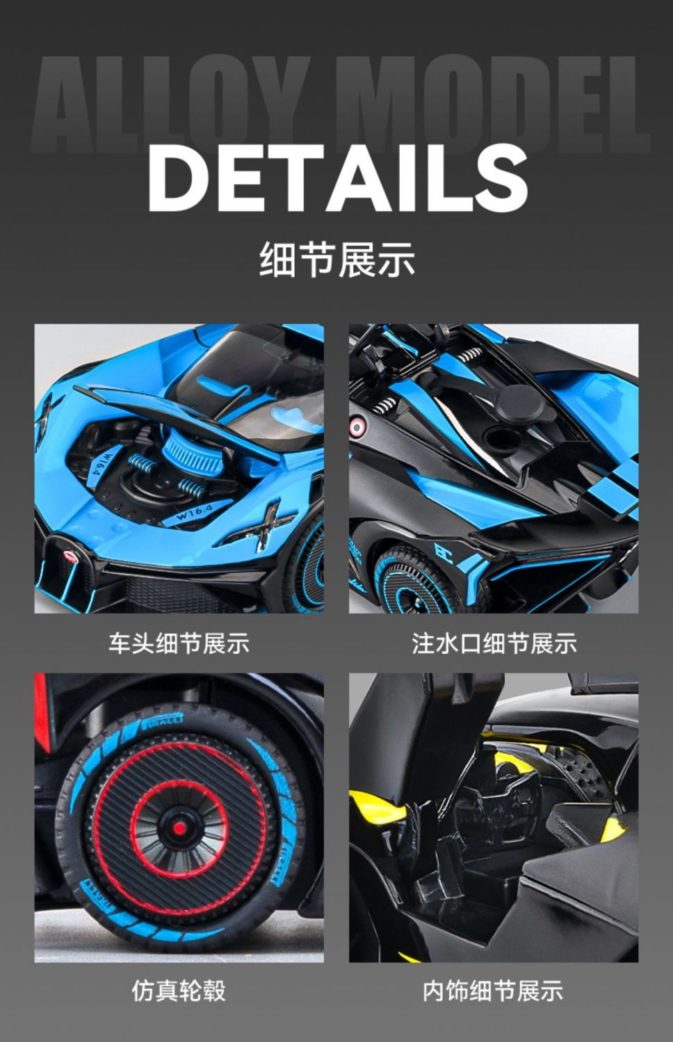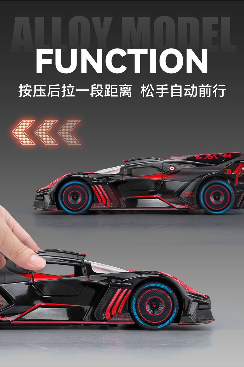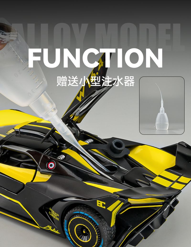 布加迪飞火流星车模合金仿真超跑汽车模型摆件可喷雾玩具车男孩