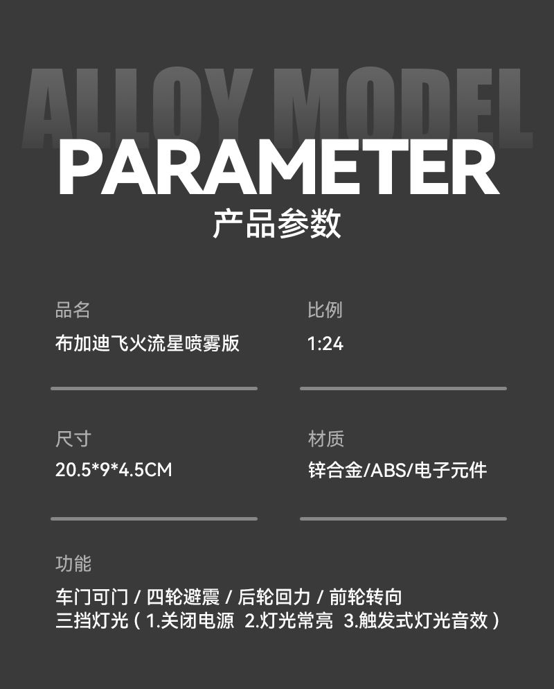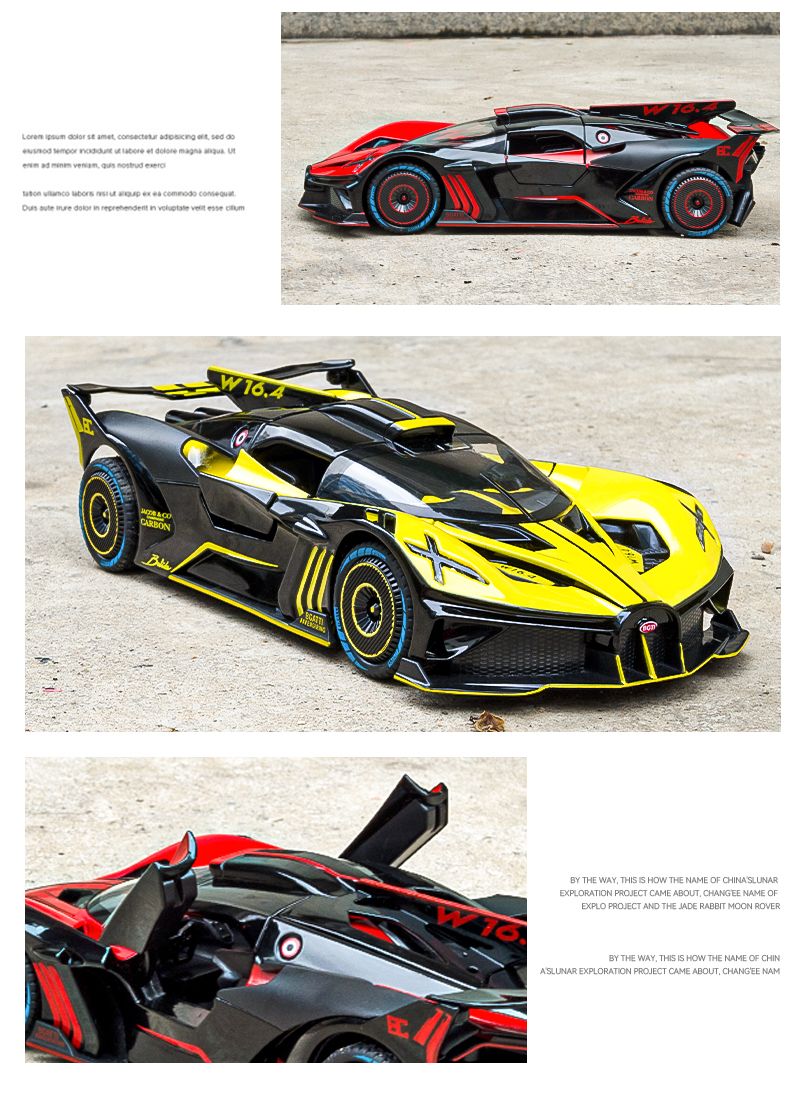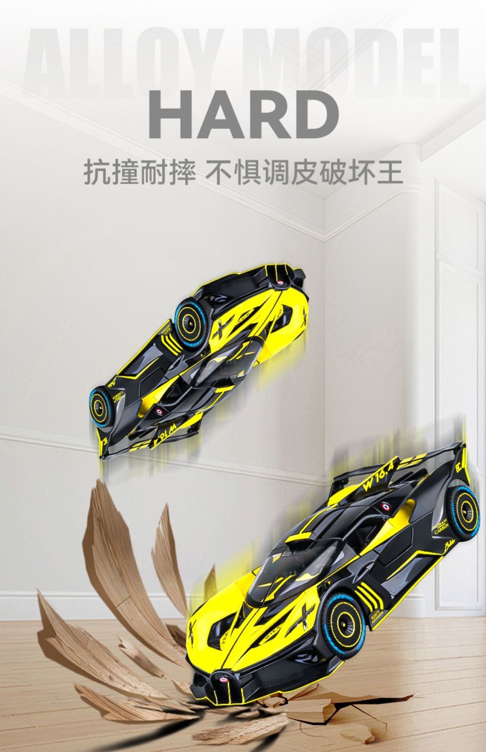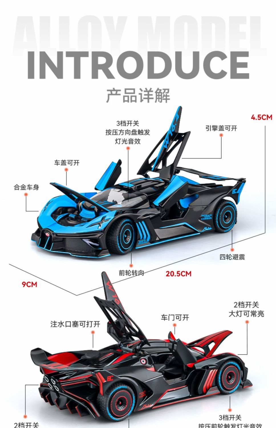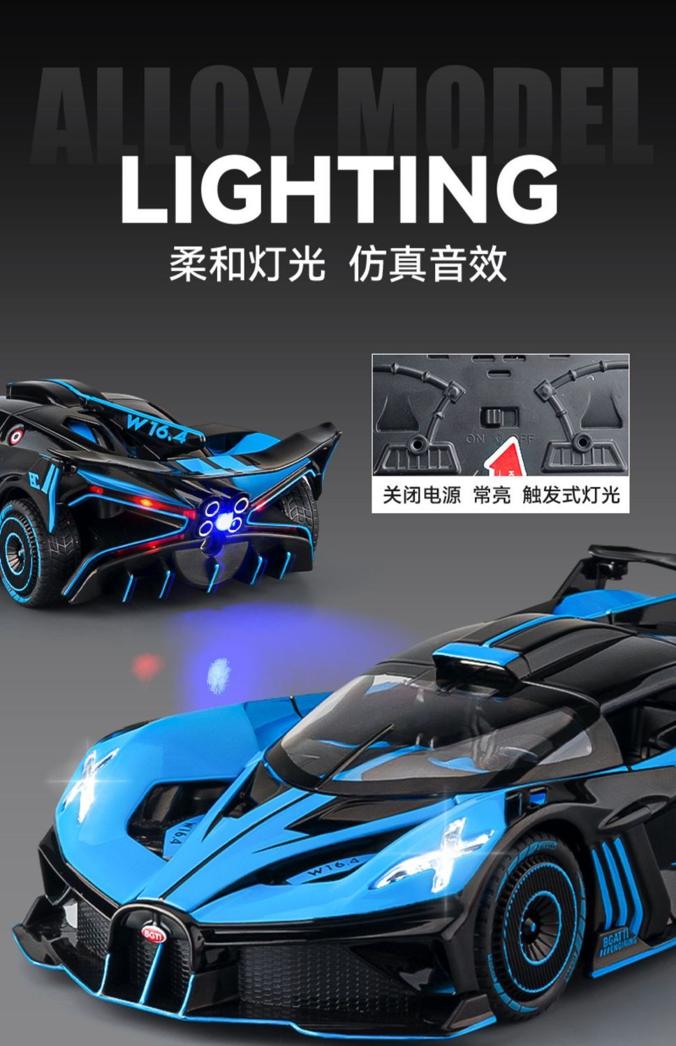 布加迪飞火流星车模合金仿真超跑汽车模型摆件可喷雾玩具车男孩