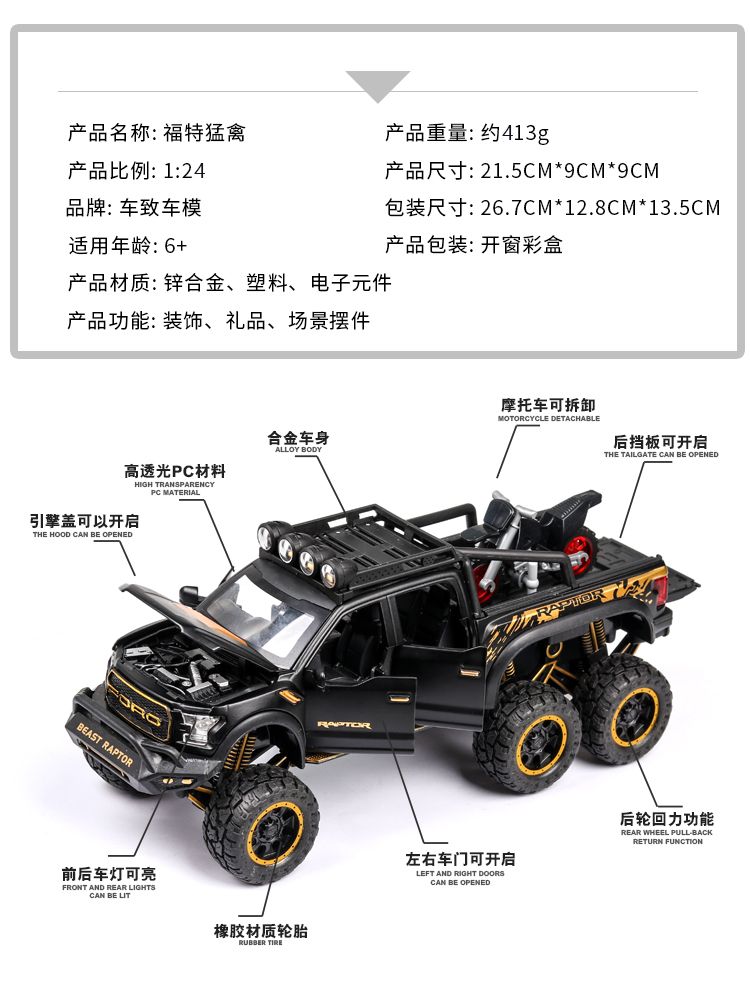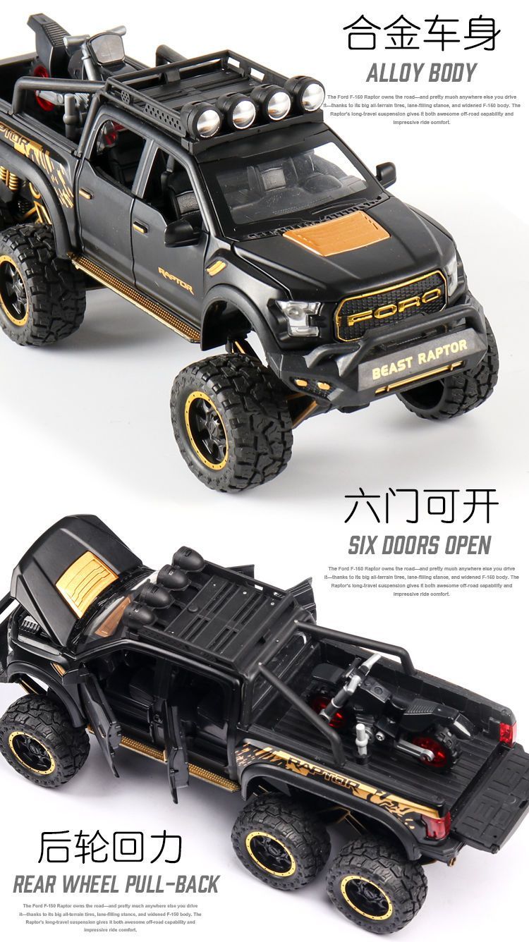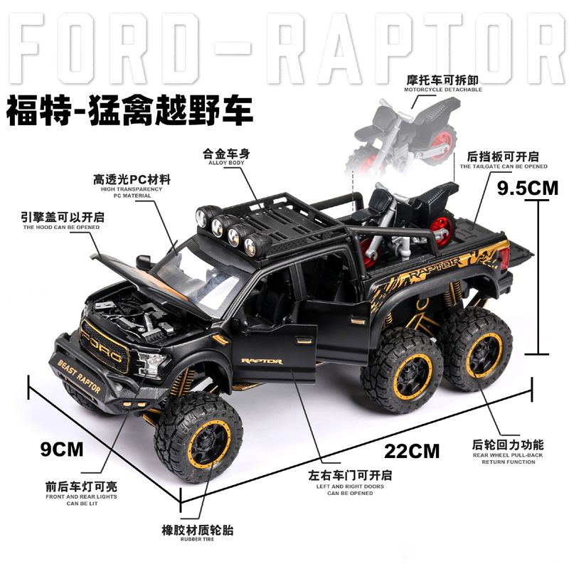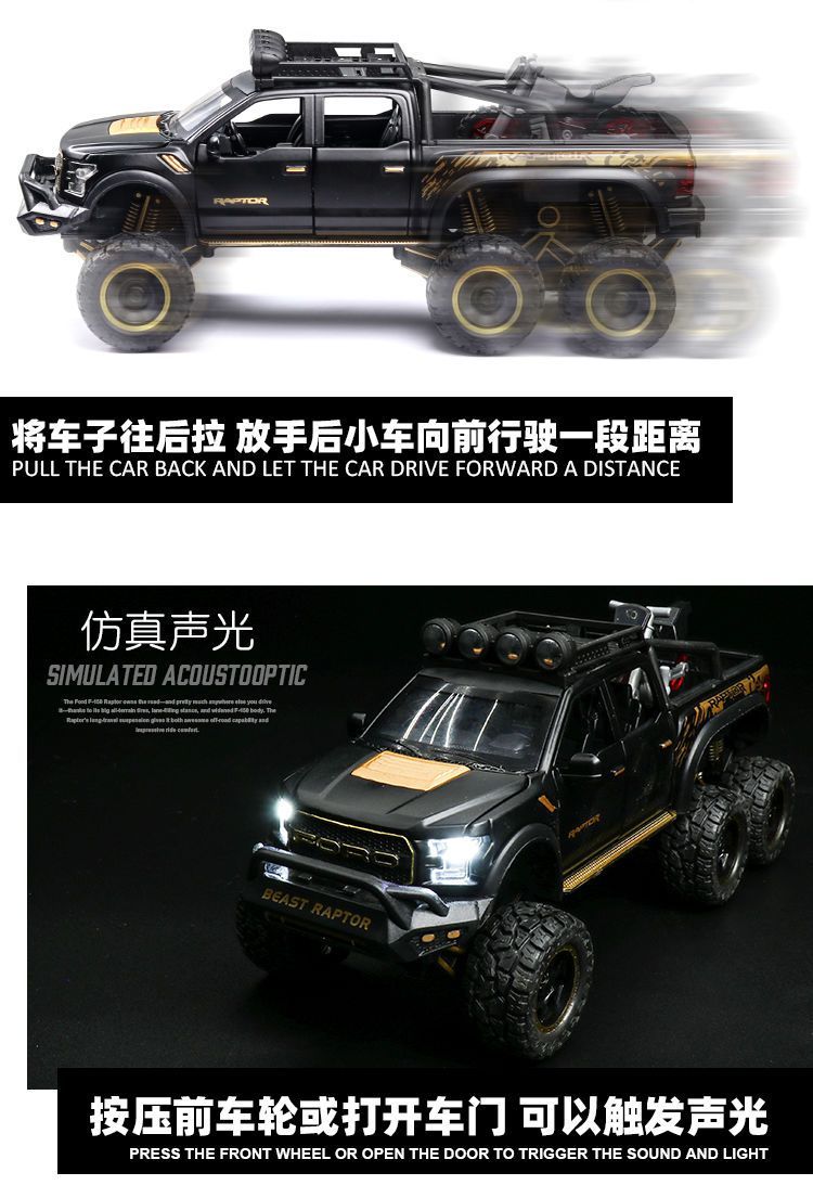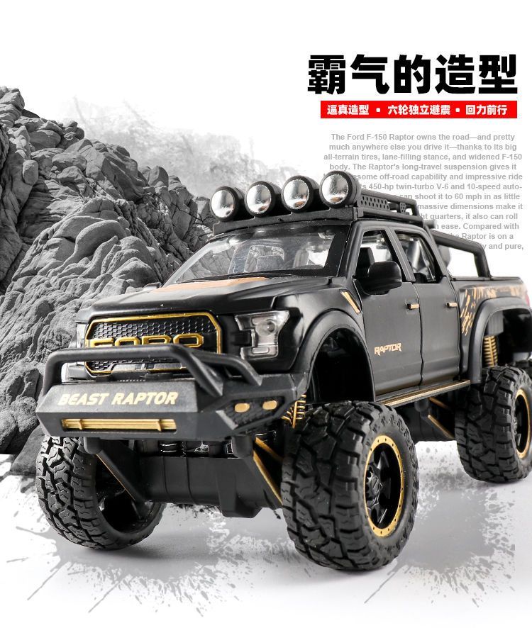 福特猛禽f150皮卡越野汽车模型仿真合金男孩回力声光玩具礼物摆件