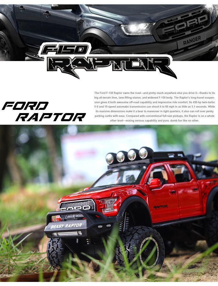 | 1:24 ford raptor f150-red(1:24福特猛禽F150-红色) | USD $9.32 | 999999 piece available |