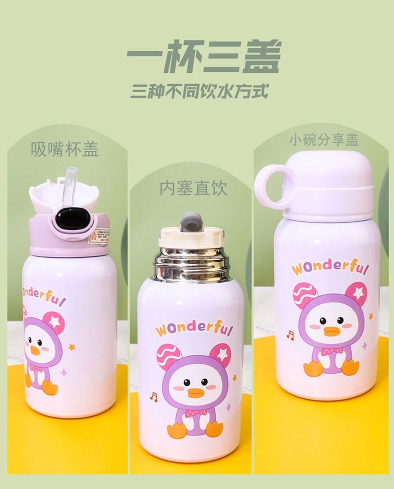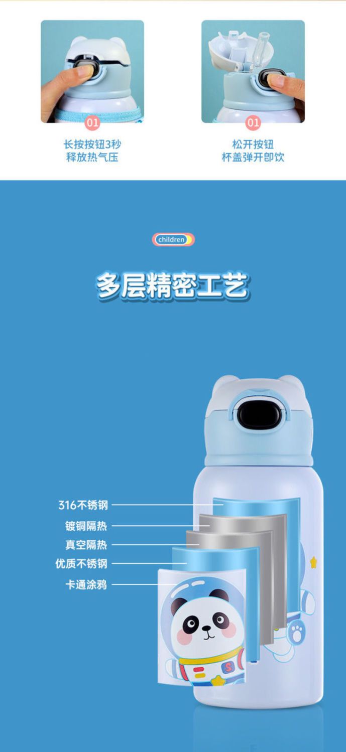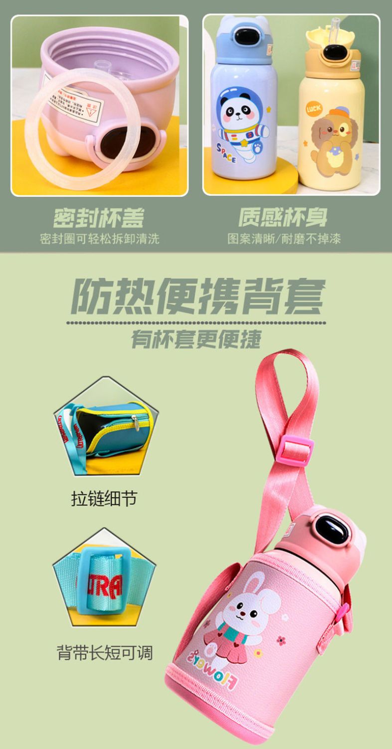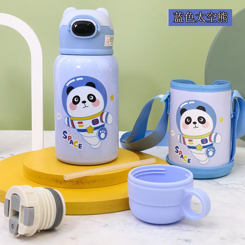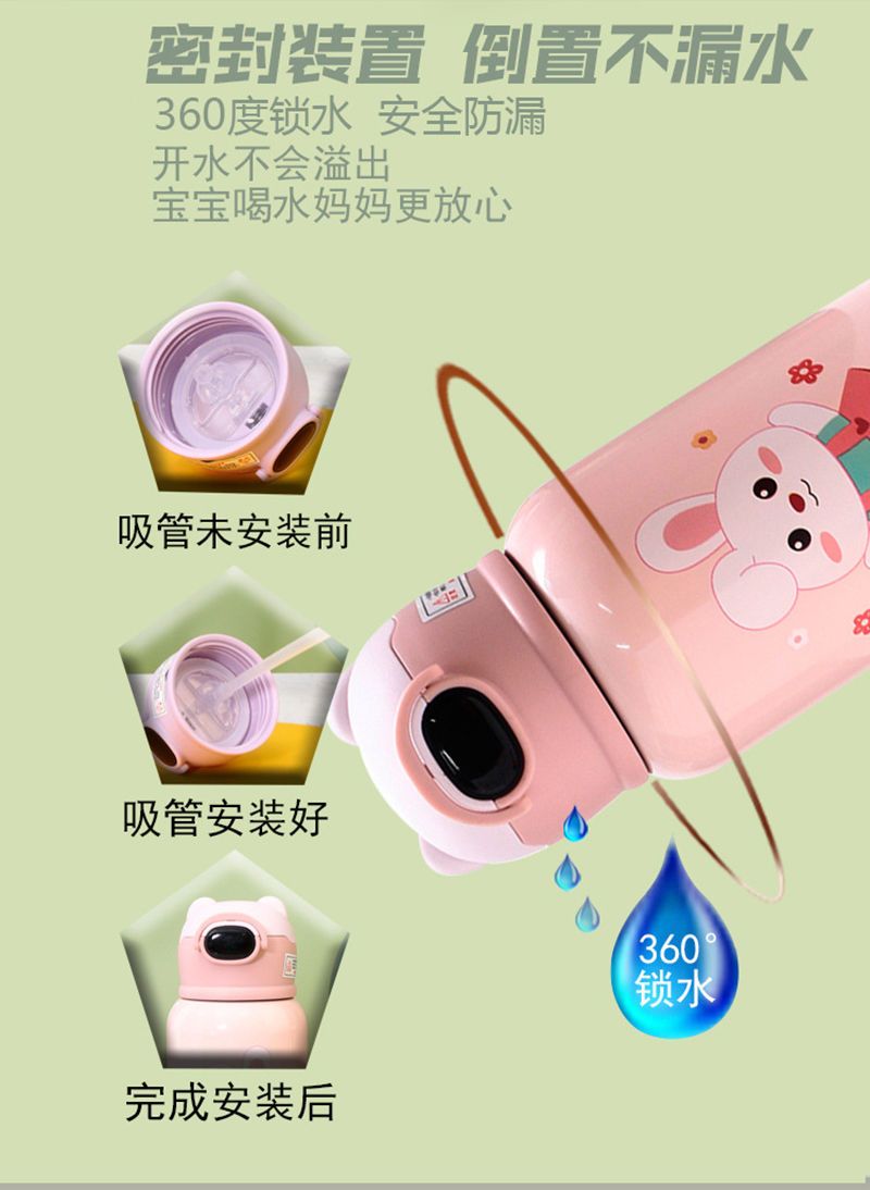 可爱小熊保温杯儿童卡通图案带吸管水壶幼儿园不锈钢大肚杯水杯子