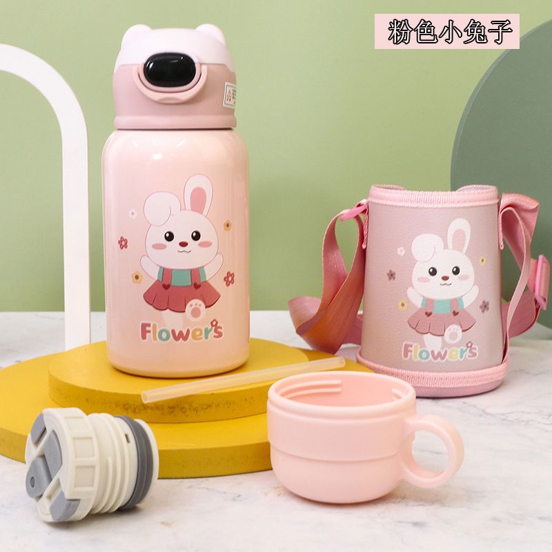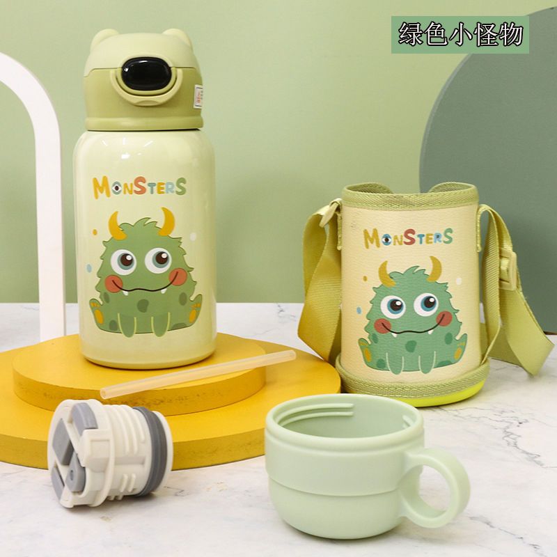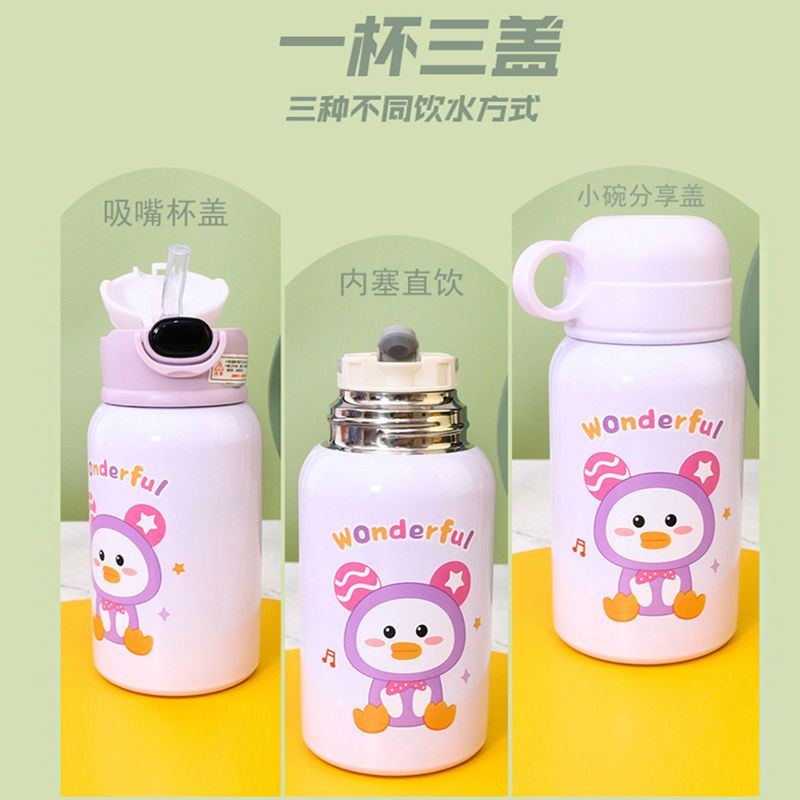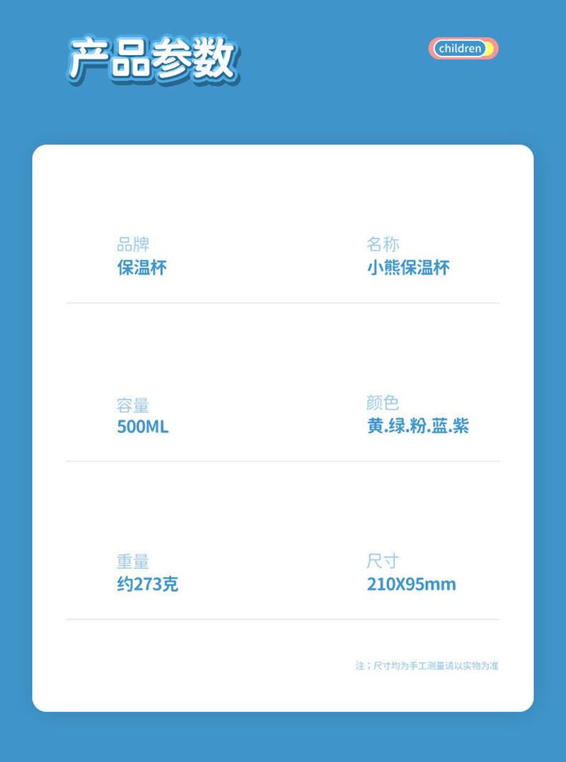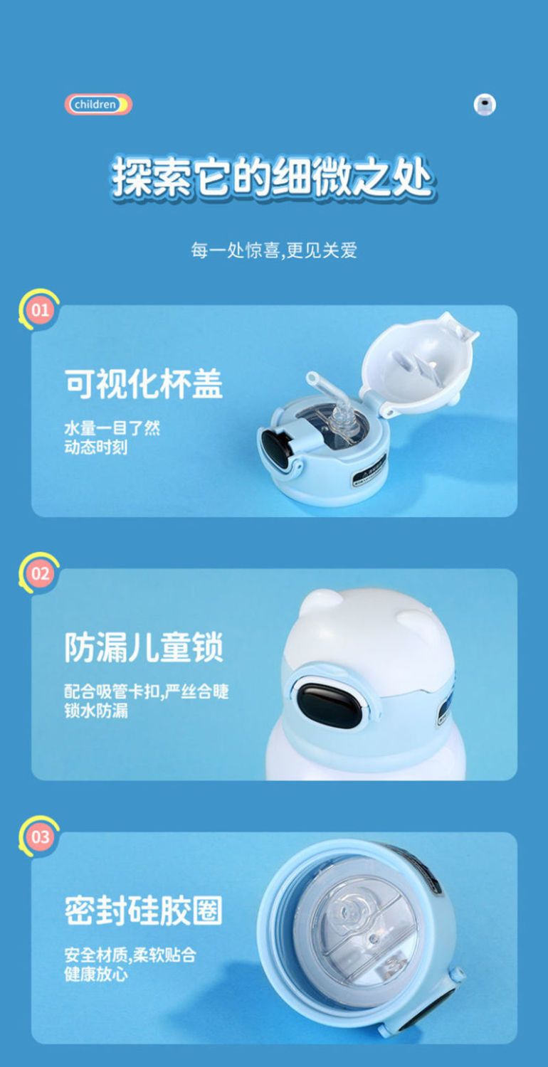 可爱小熊保温杯儿童卡通图案带吸管水壶幼儿园不锈钢大肚杯水杯子