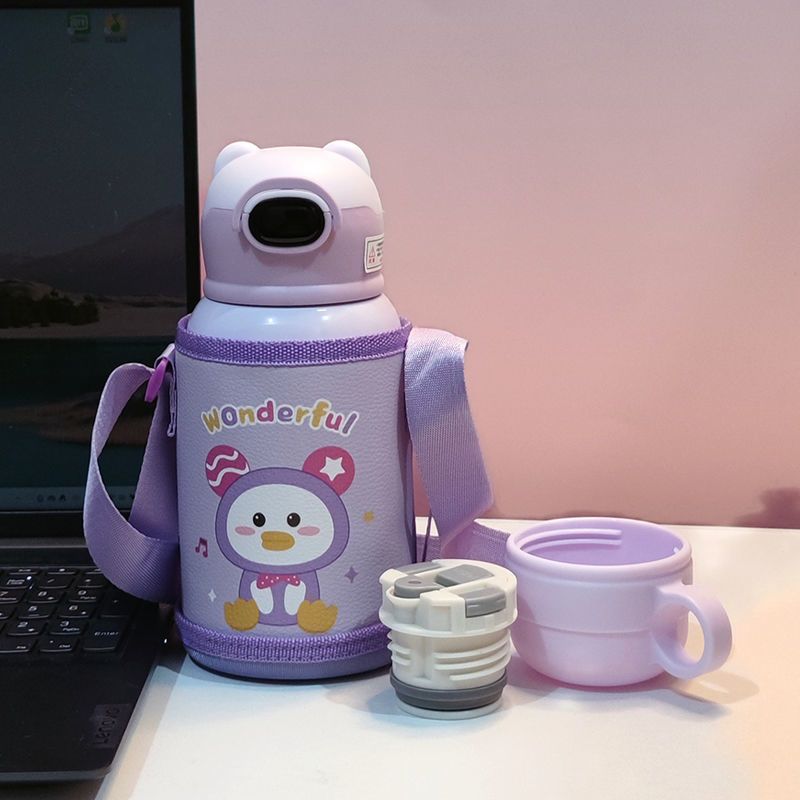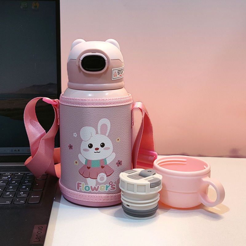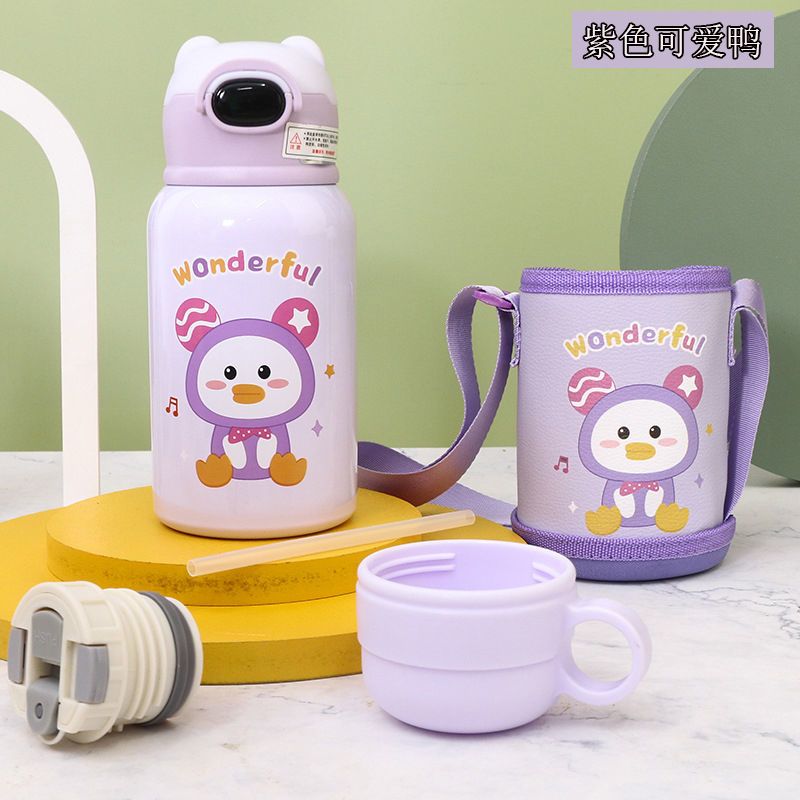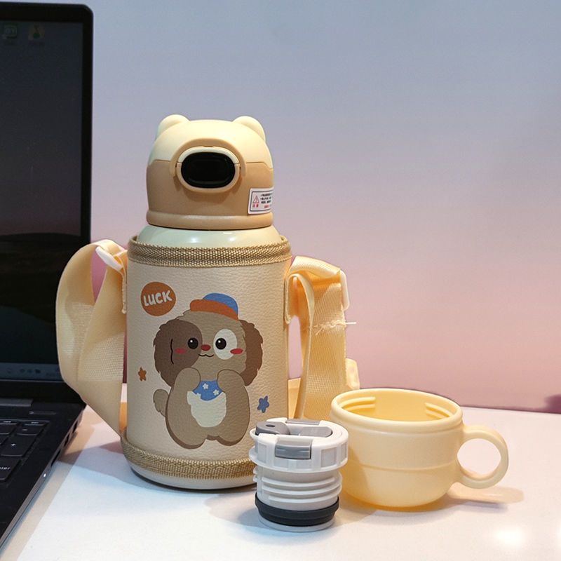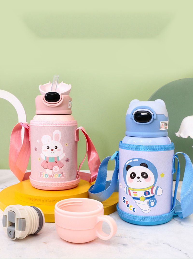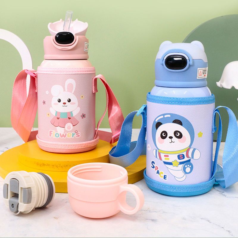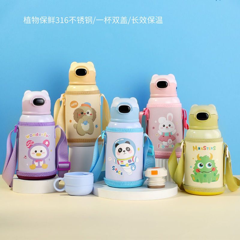 可爱小熊保温杯儿童卡通图案带吸管水壶幼儿园不锈钢大肚杯水杯子