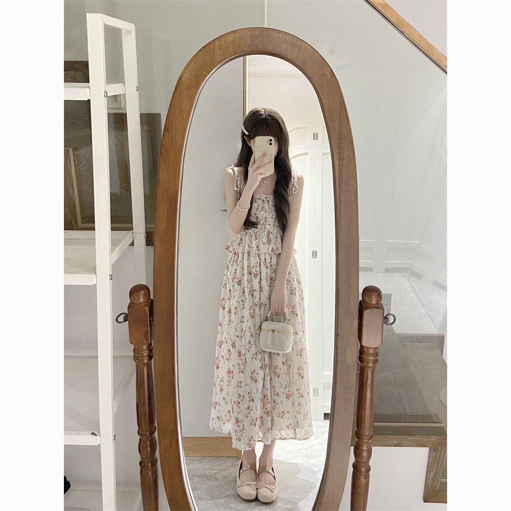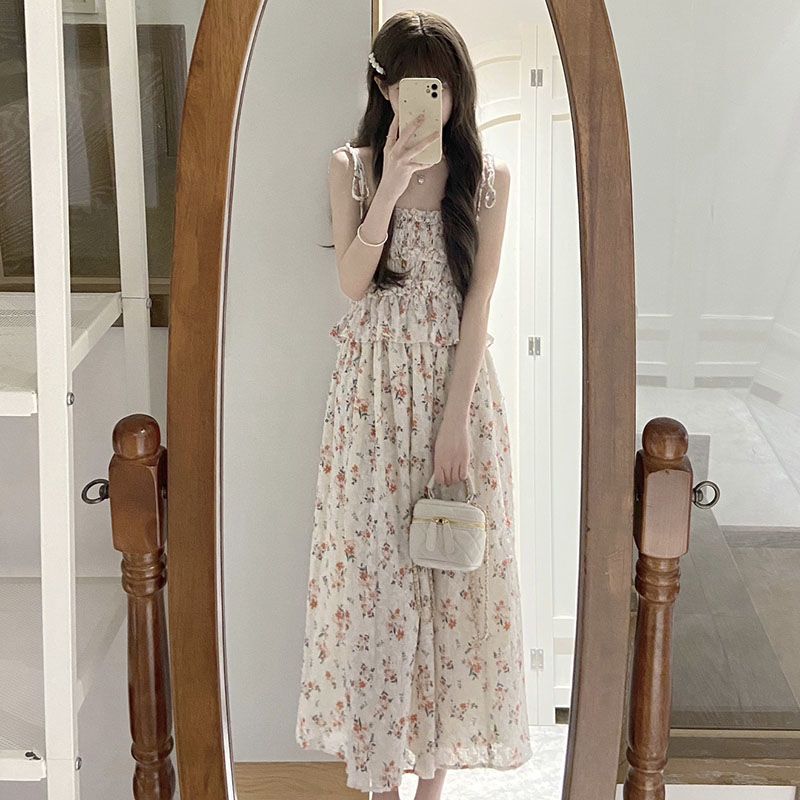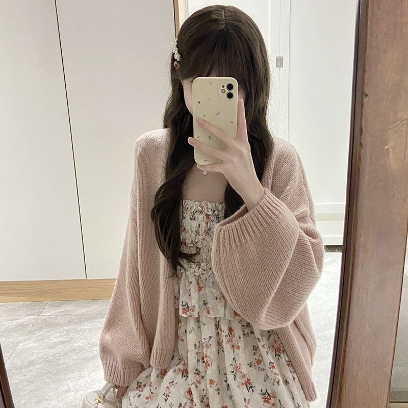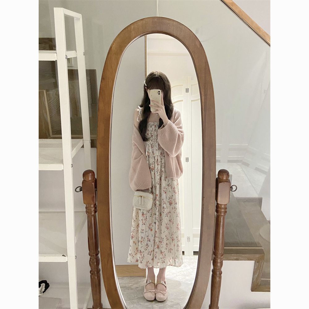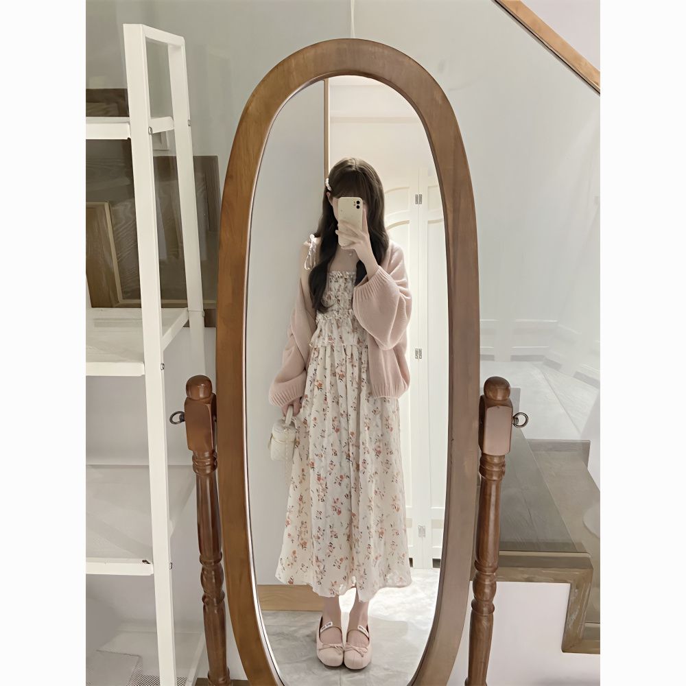 日系软妹吊带碎花连衣裙子女学生+甜美慵懒风毛衣开衫两件套装【7