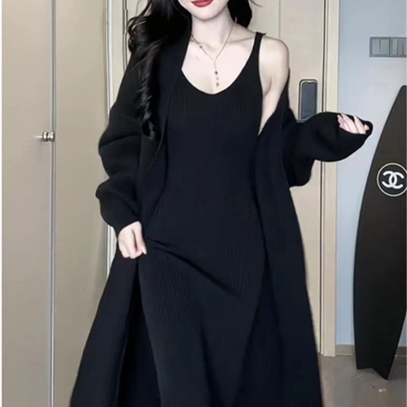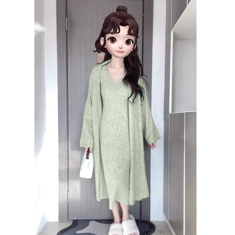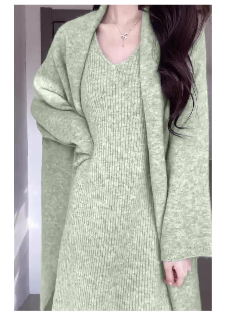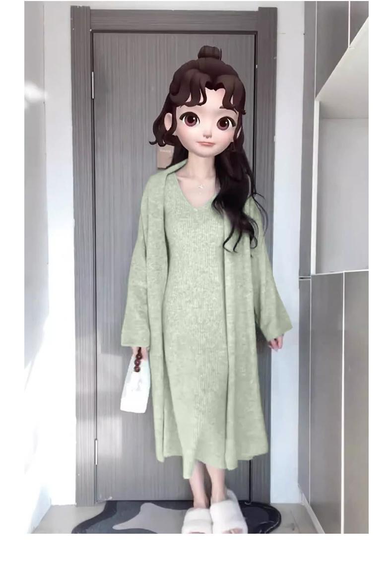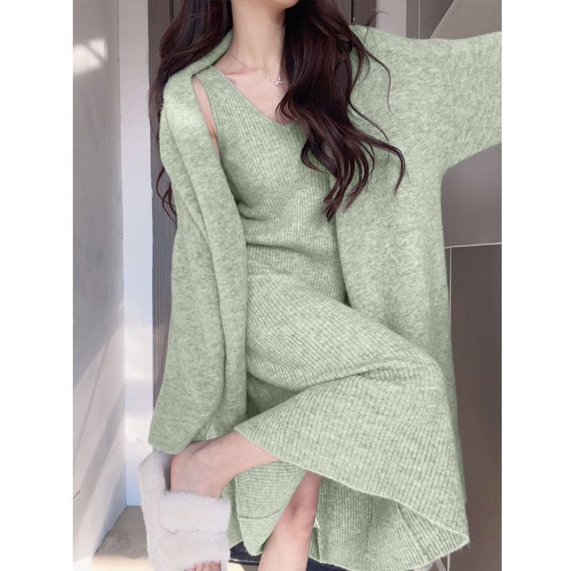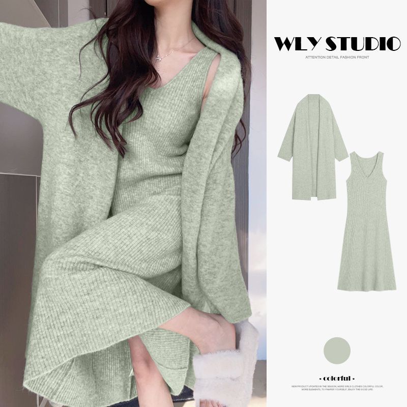 FV松霜绿无袖背心针织连衣裙气质女神范高级感毛衣长裙两件套