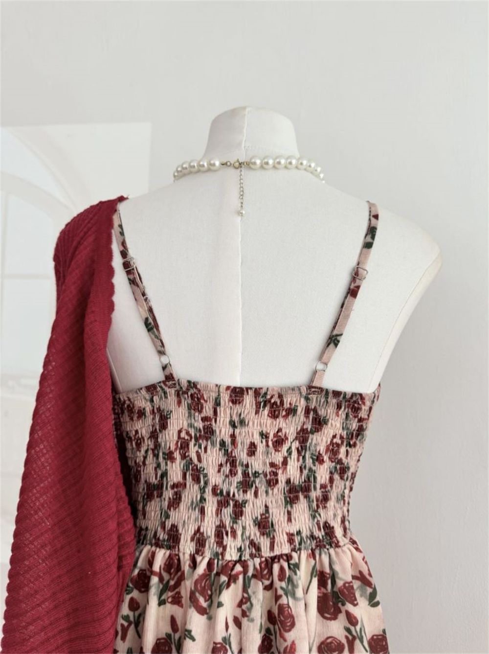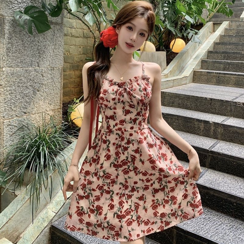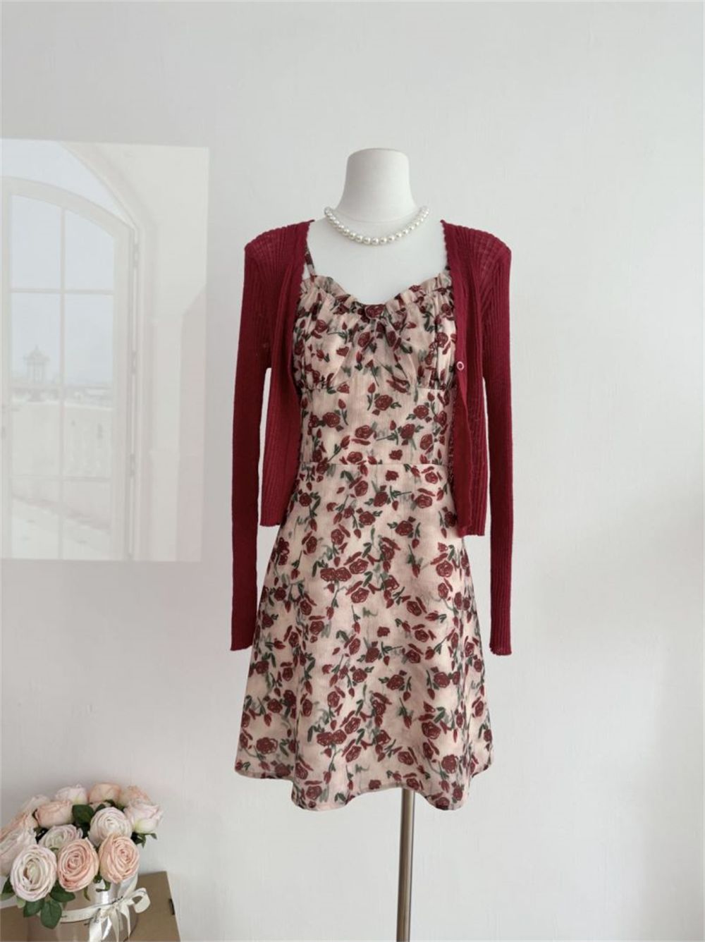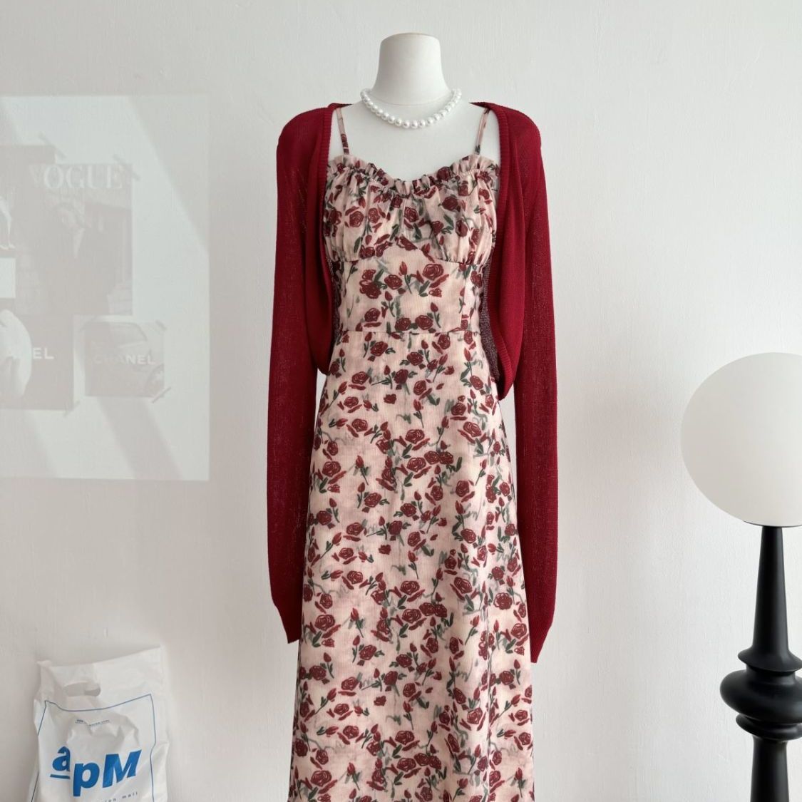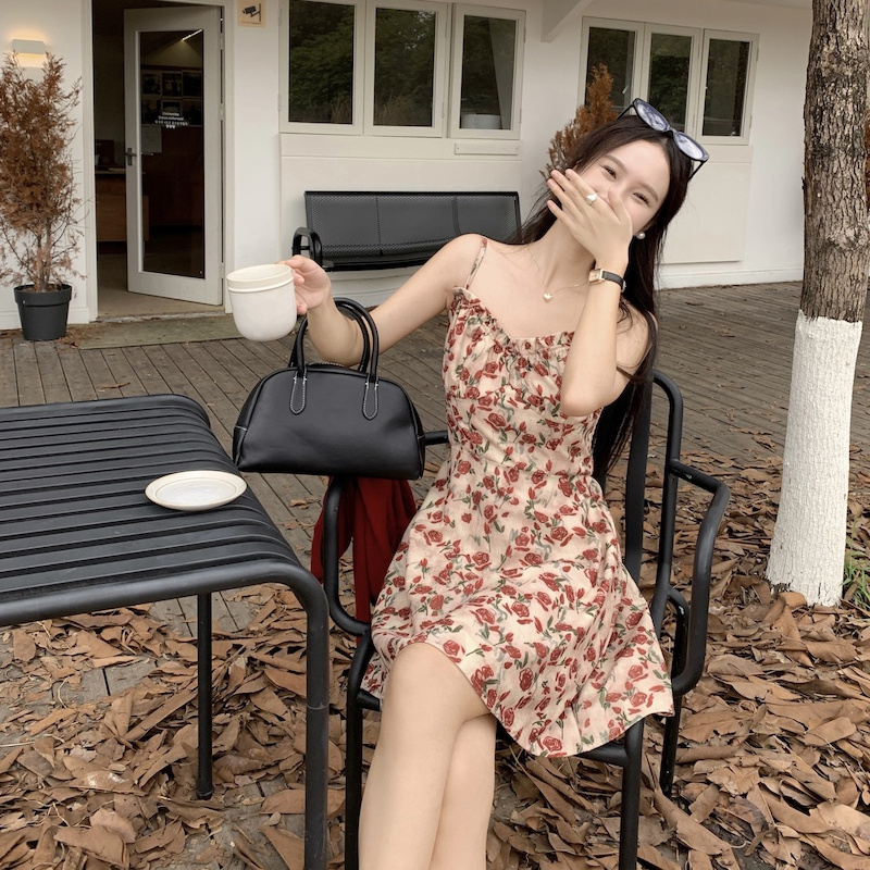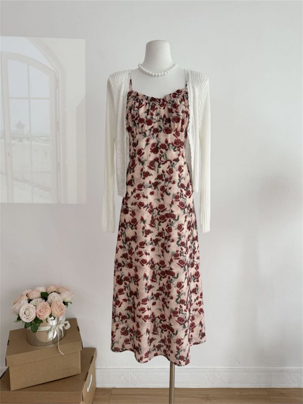 甜美碎花吊带长裙针织外搭套装裙子早春新款打底灯芯绒连衣裙女装