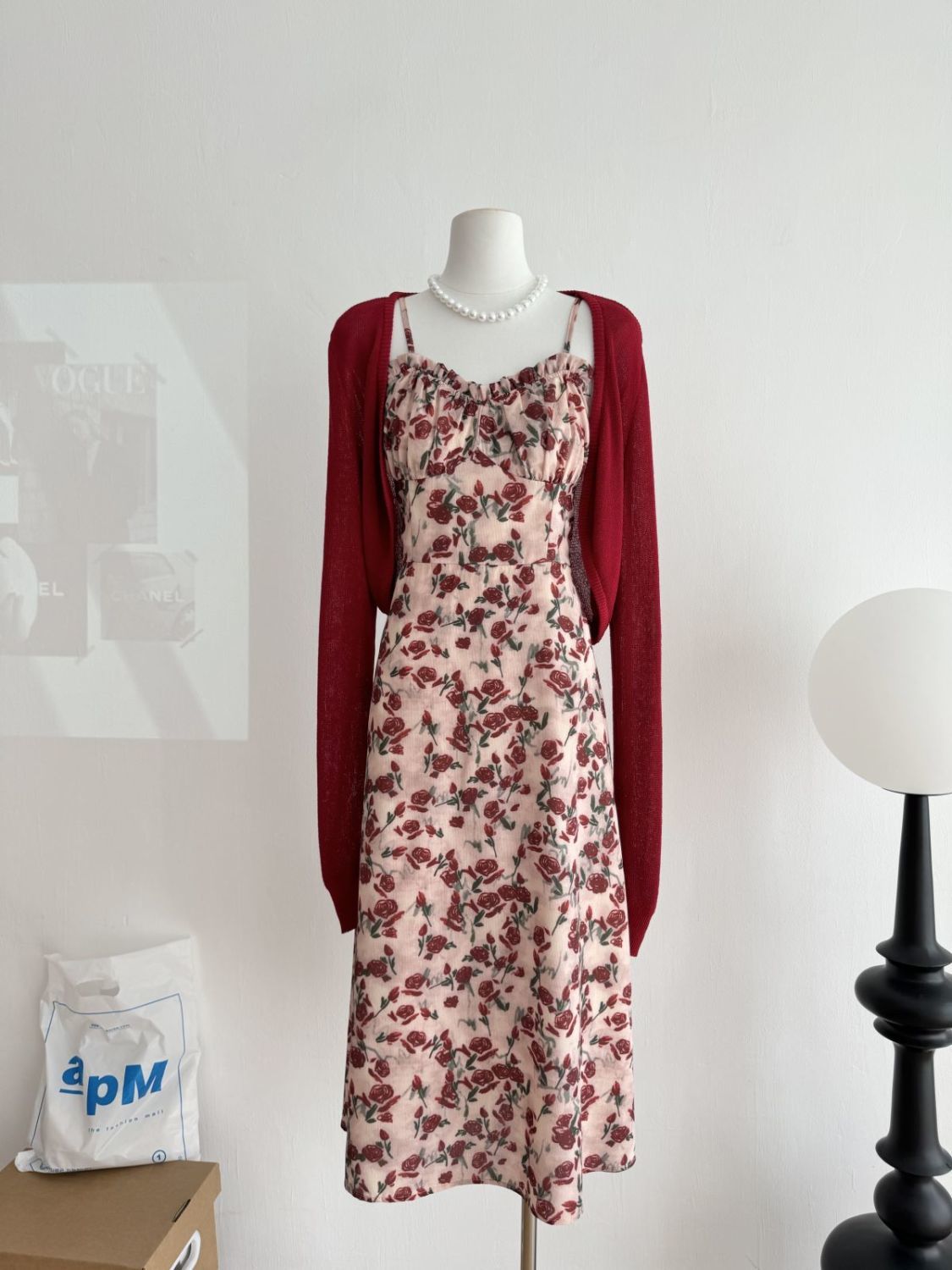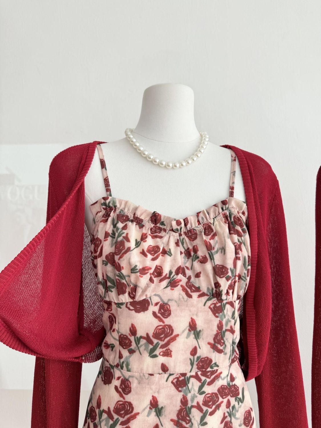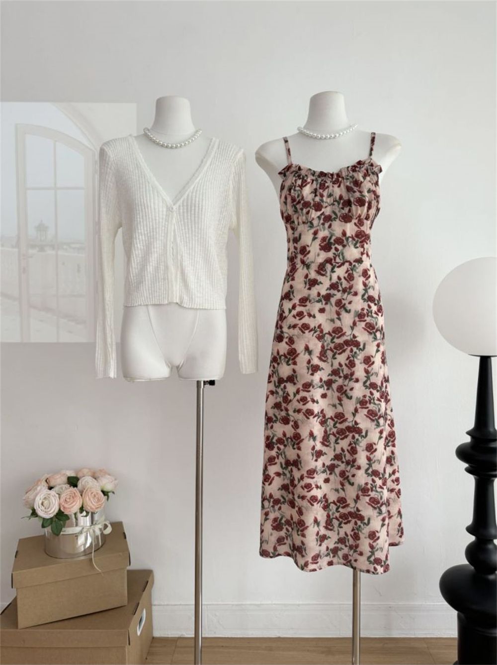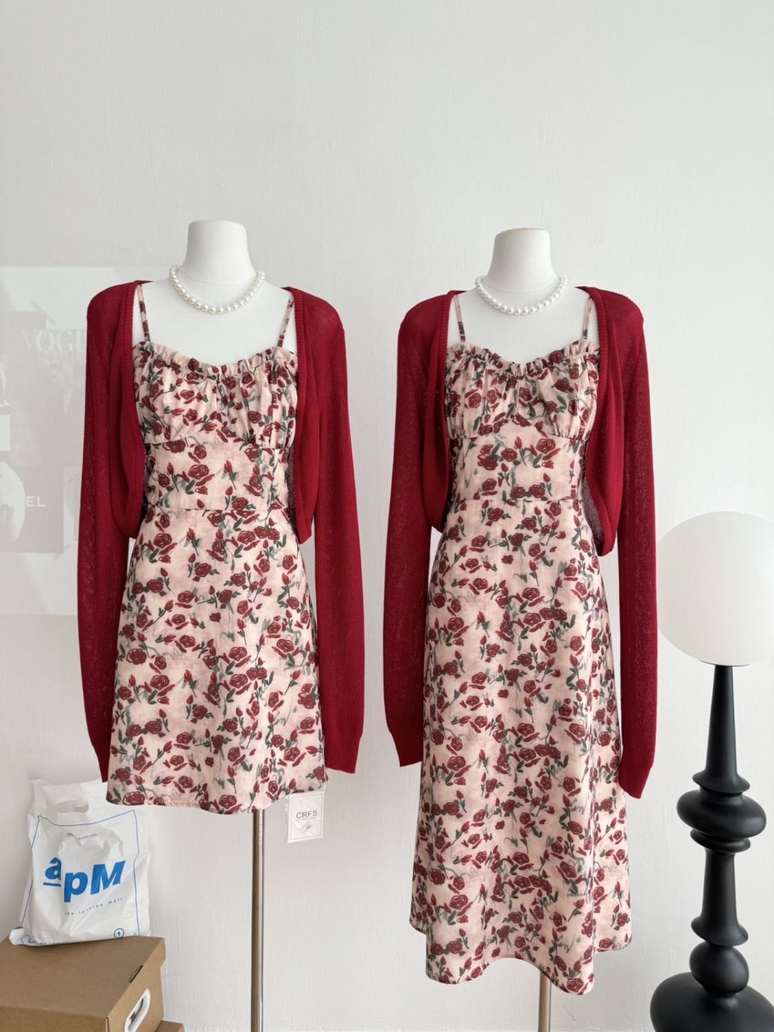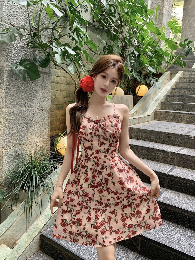 甜美碎花吊带长裙针织外搭套装裙子早春新款打底灯芯绒连衣裙女装