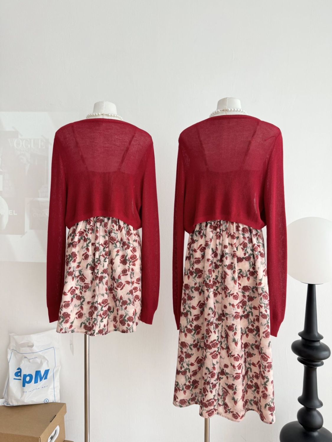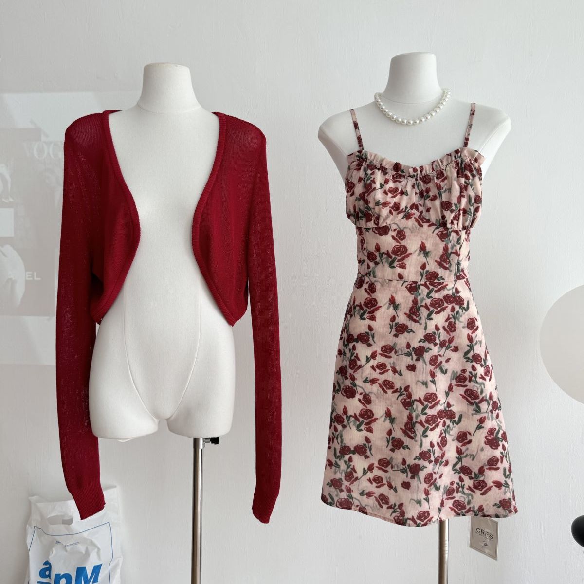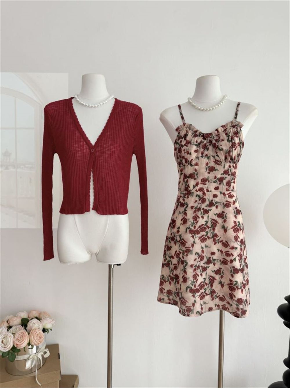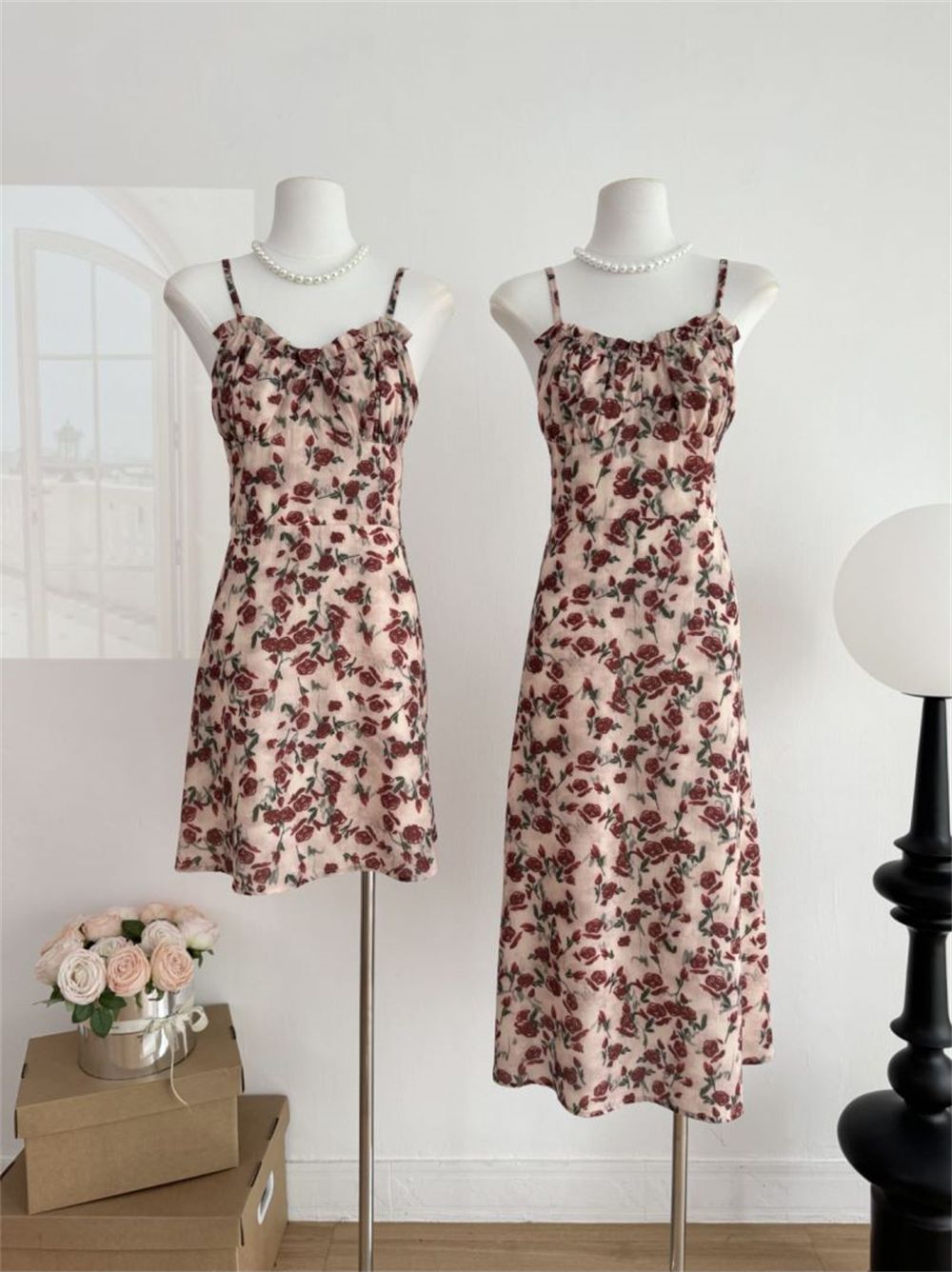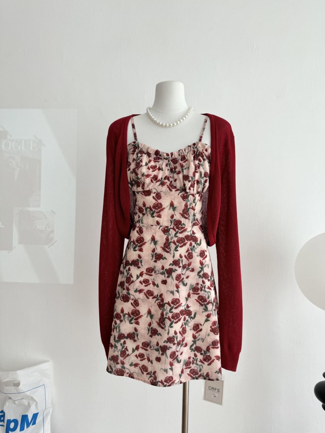 甜美碎花吊带长裙针织外搭套装裙子早春新款打底灯芯绒连衣裙女装