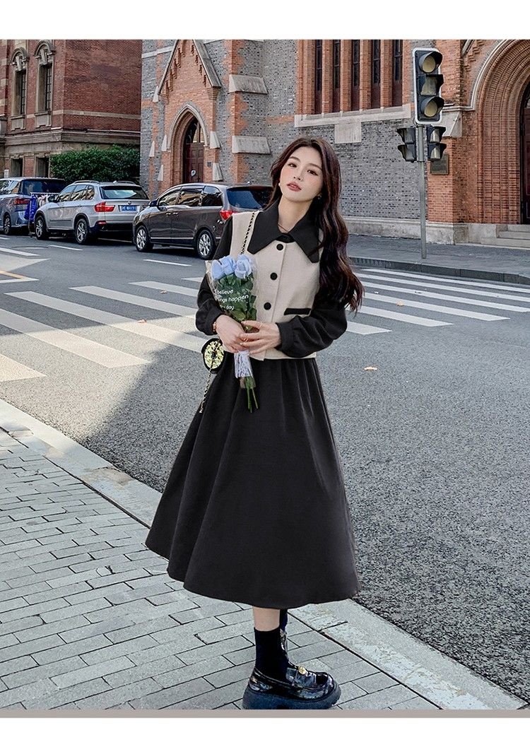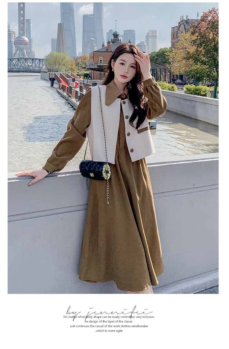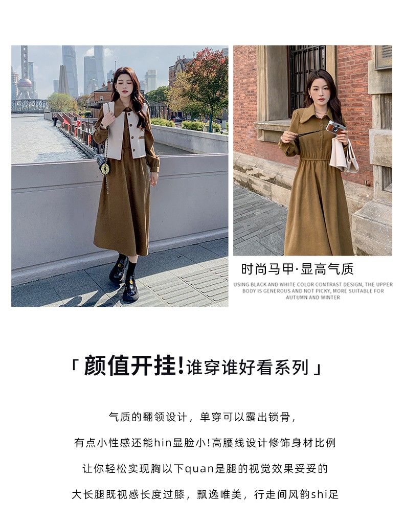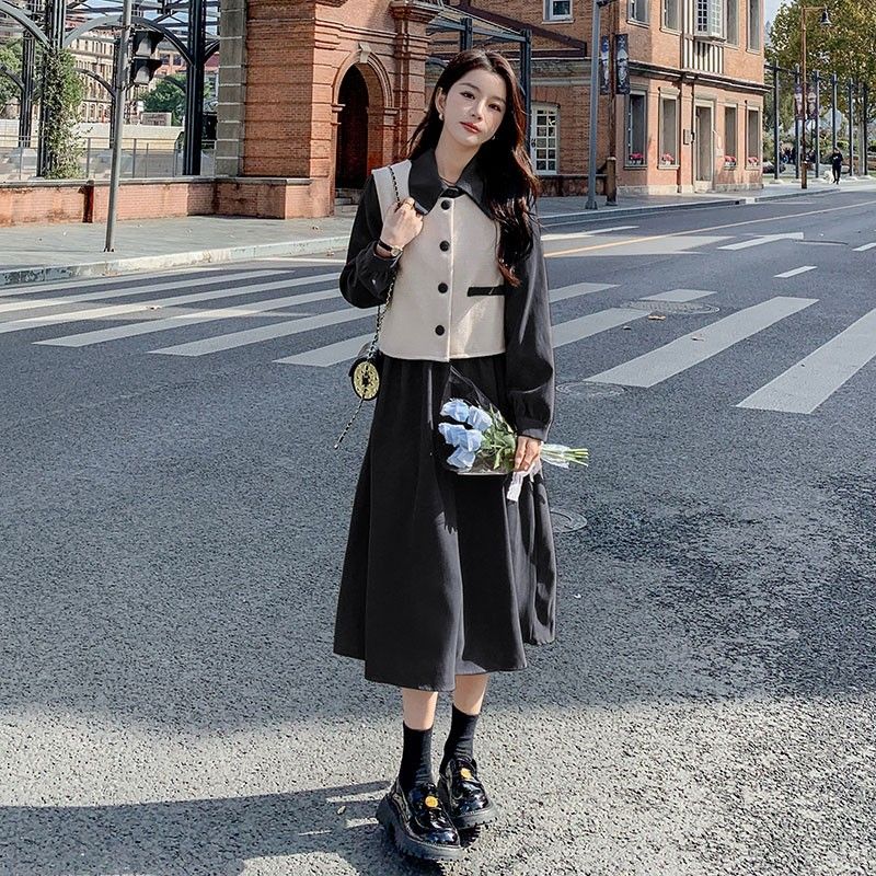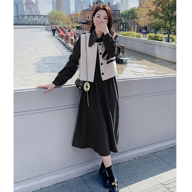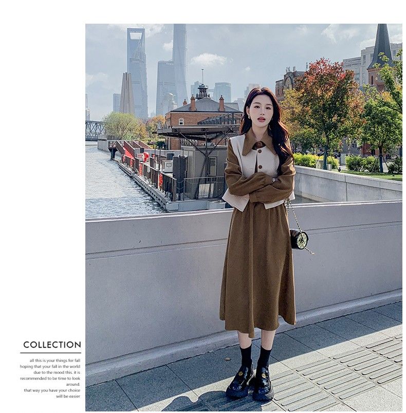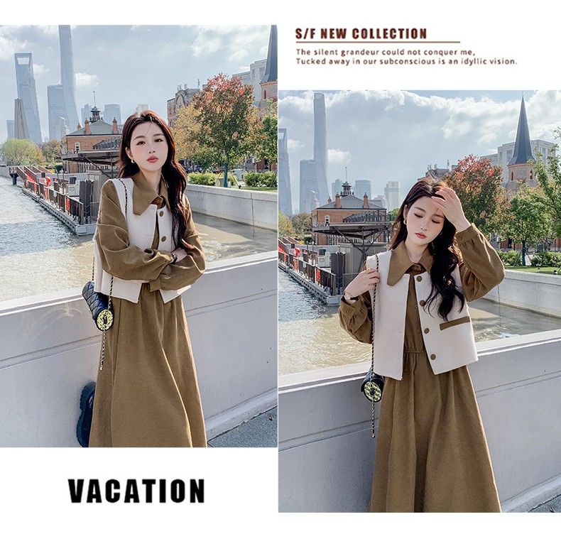 今年流行连衣裙套装女冬2024新款长袖美拉德穿搭马甲衬衫裙两件套
