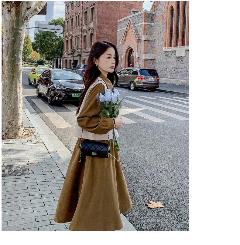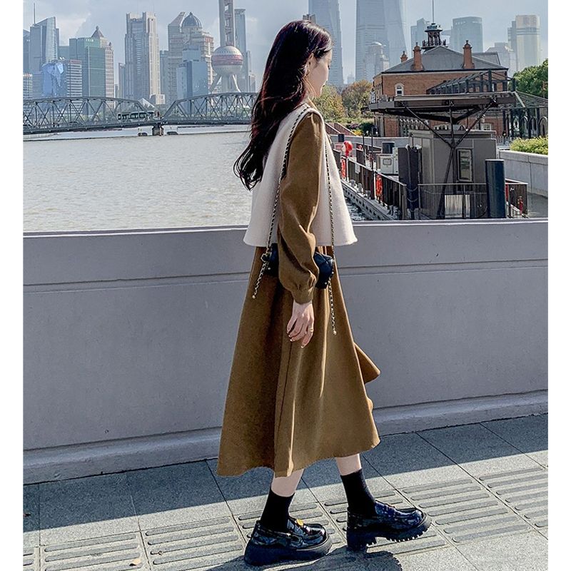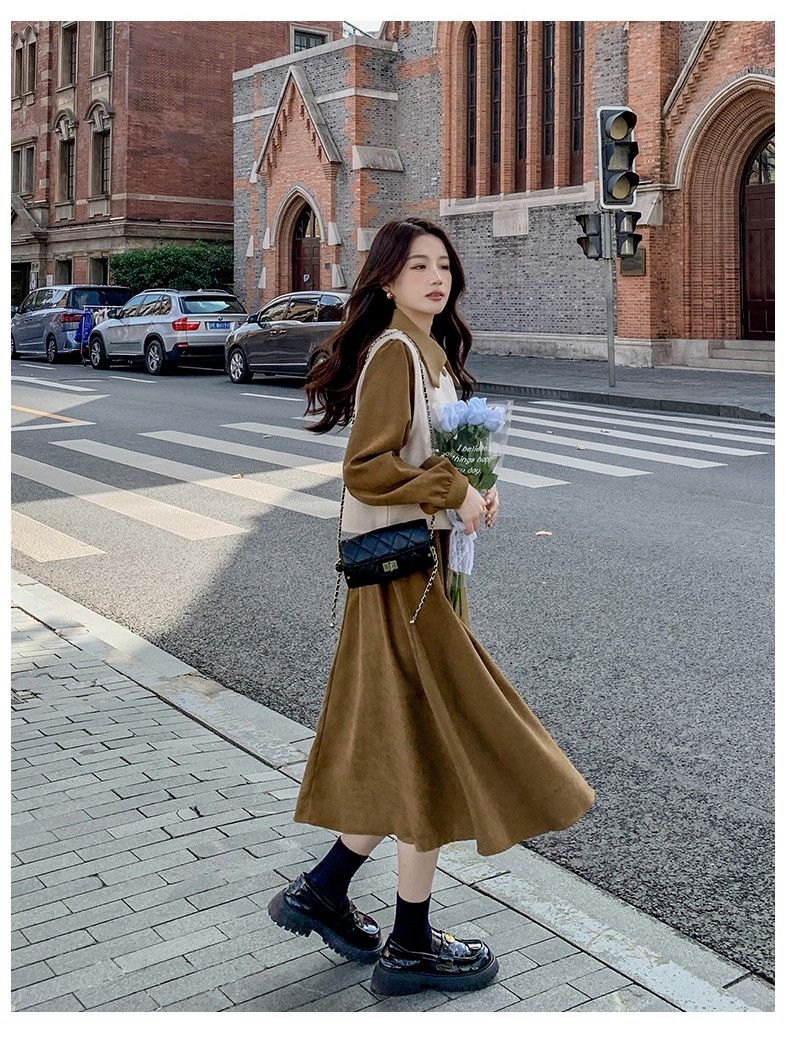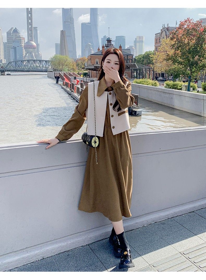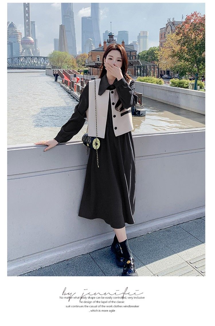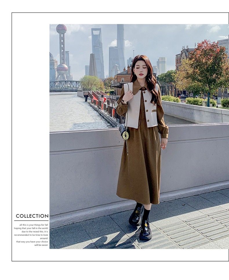 今年流行连衣裙套装女冬2024新款长袖美拉德穿搭马甲衬衫裙两件套