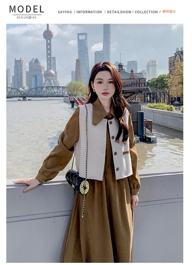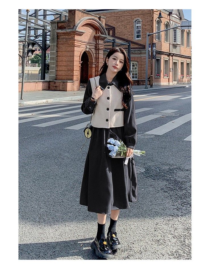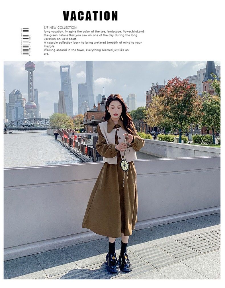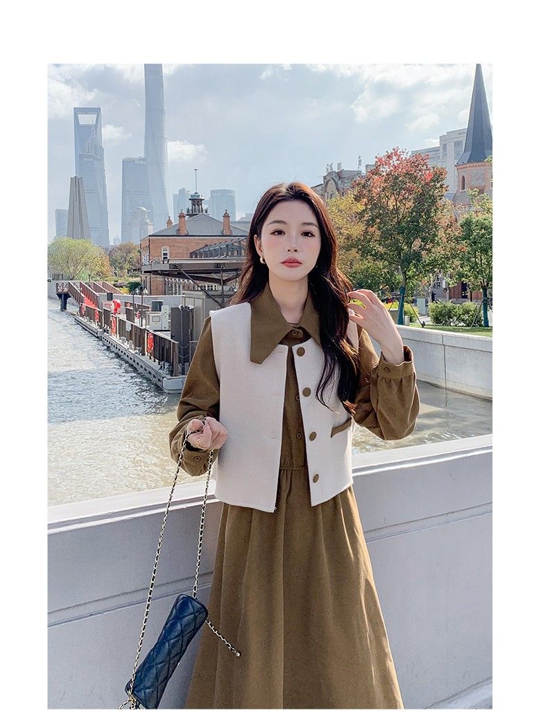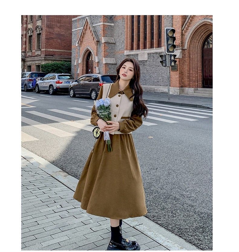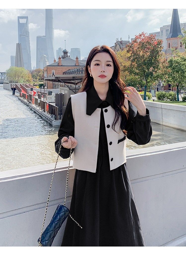 今年流行连衣裙套装女冬2024新款长袖美拉德穿搭马甲衬衫裙两件套