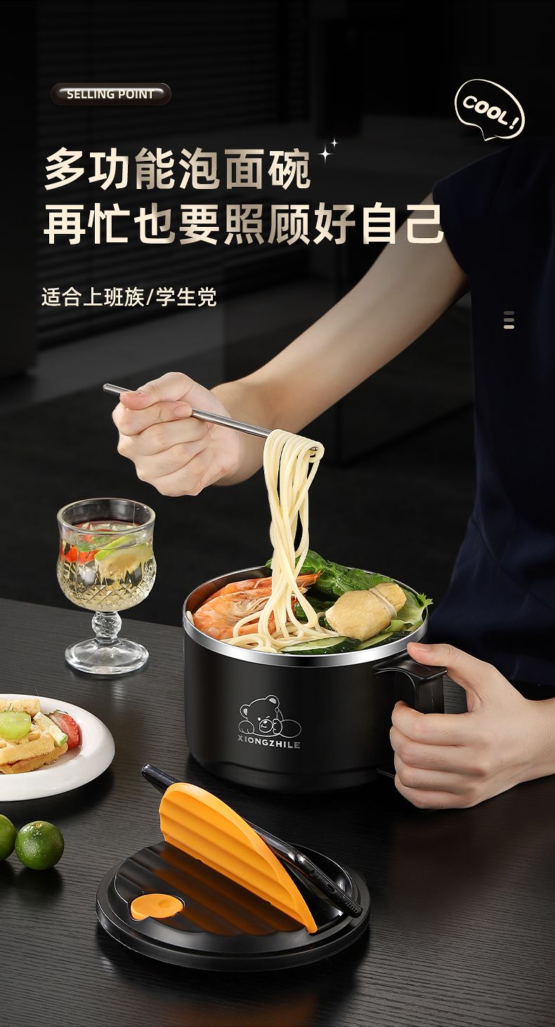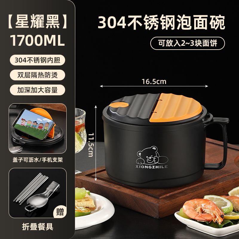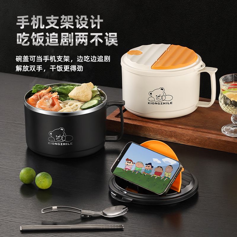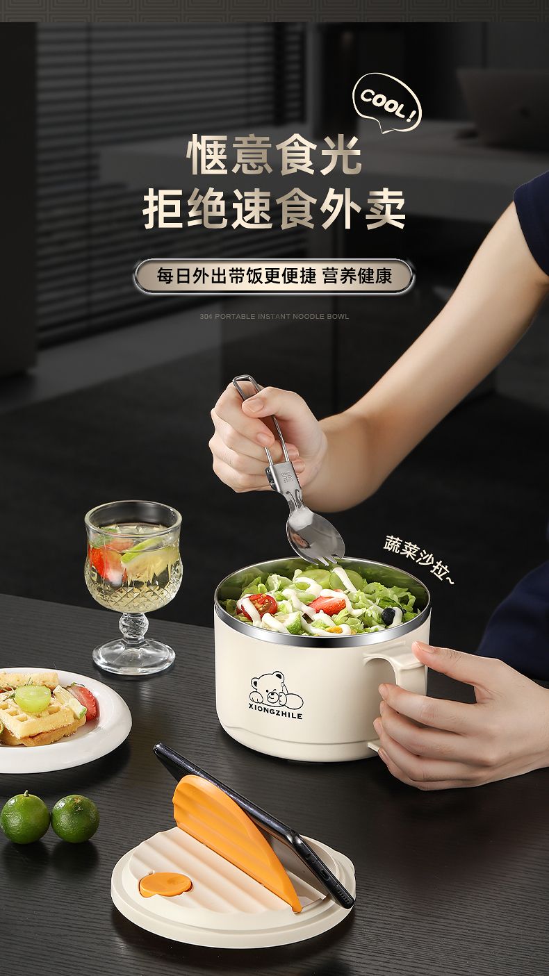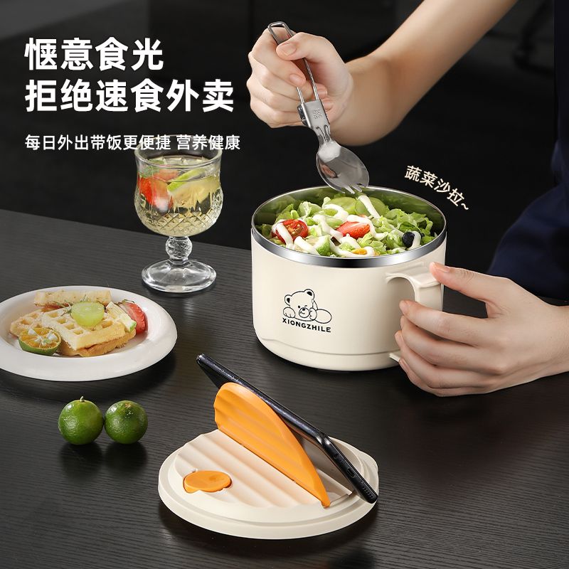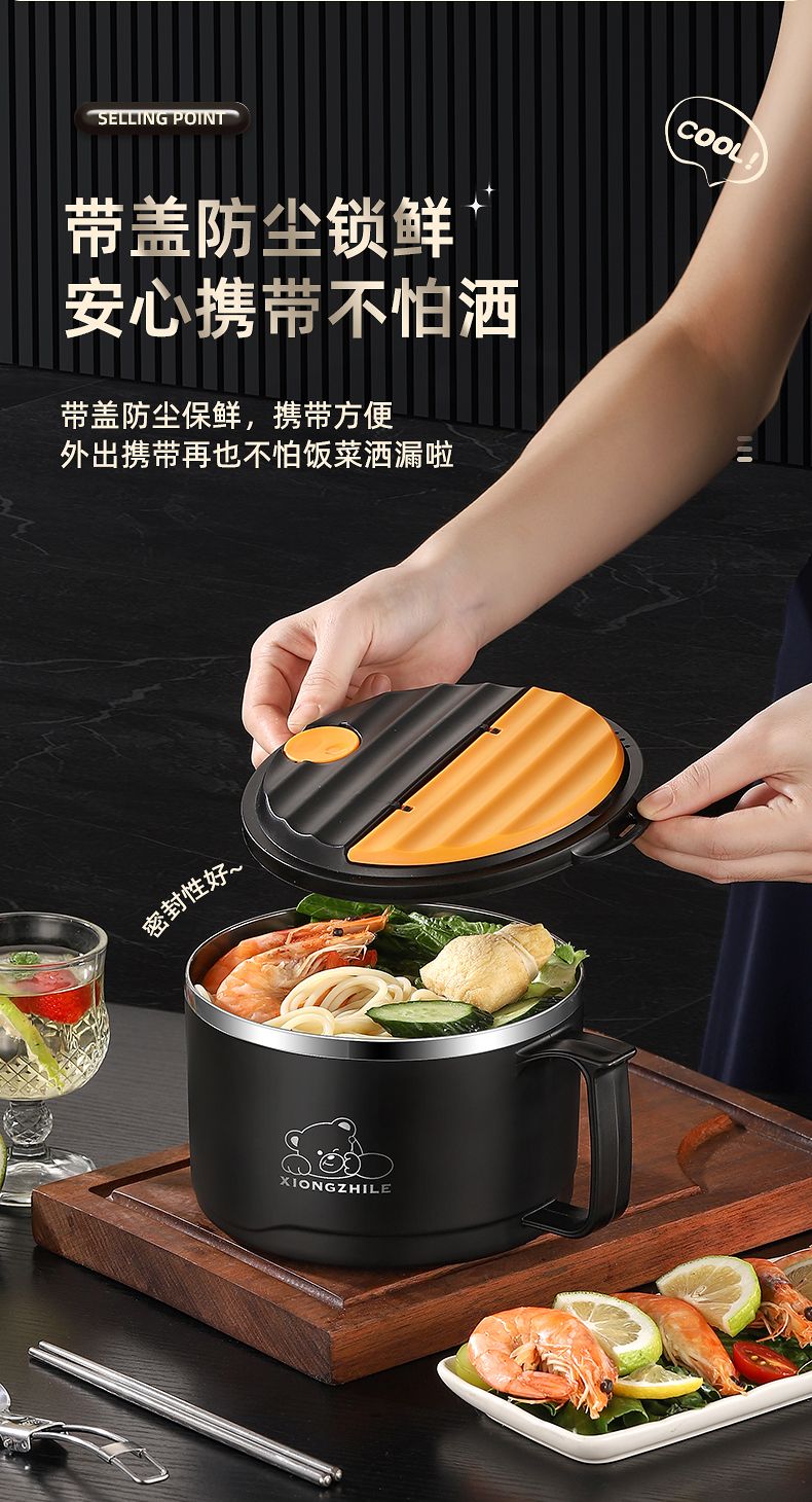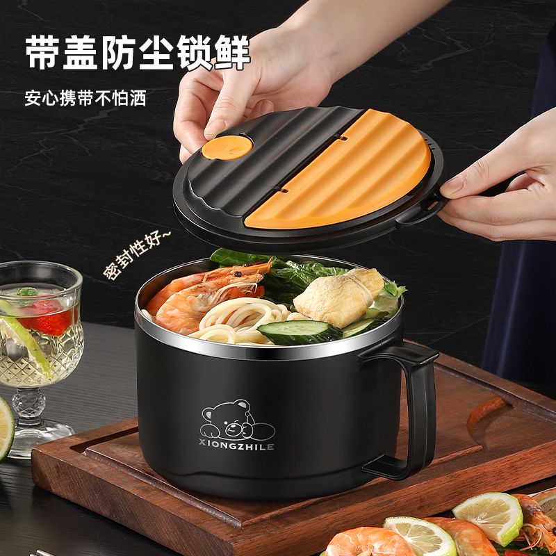 日式304不锈钢泡面碗带盖学生宿舍泡面神器食堂打饭碗筷套装