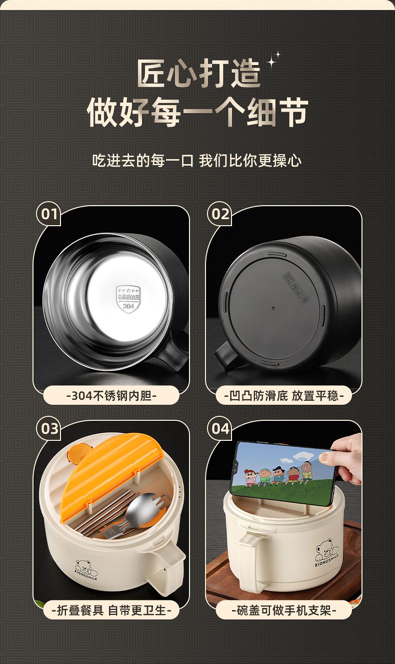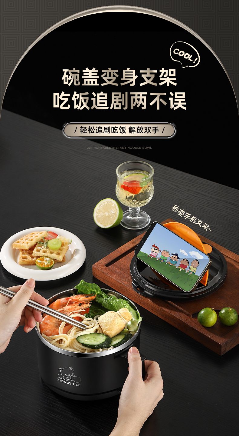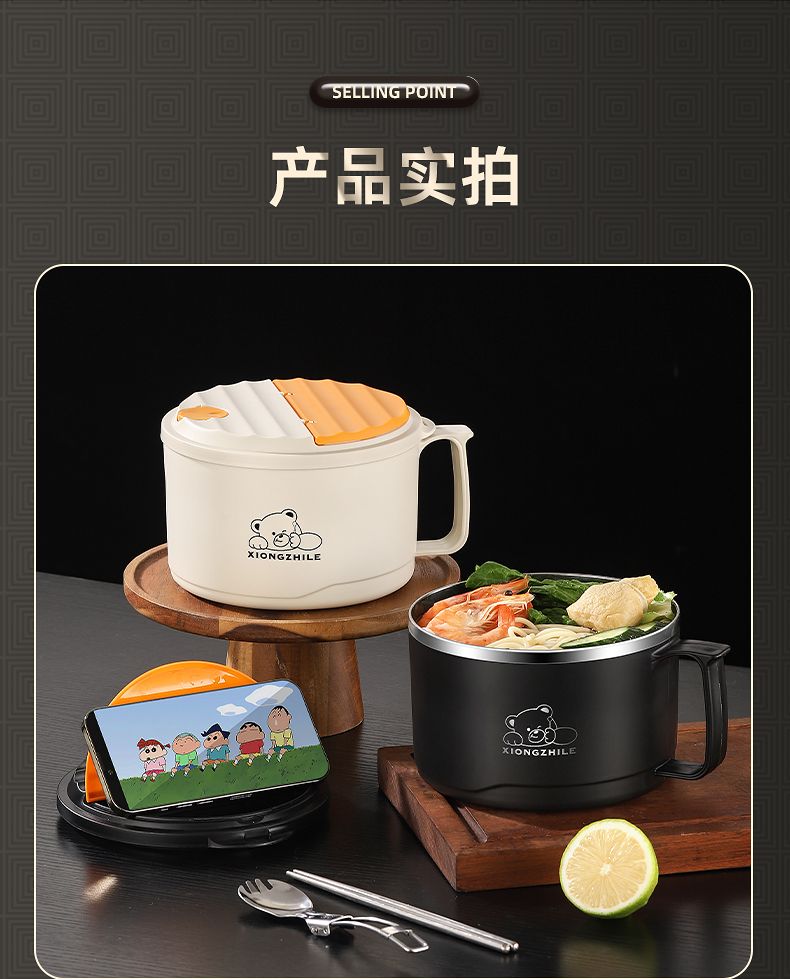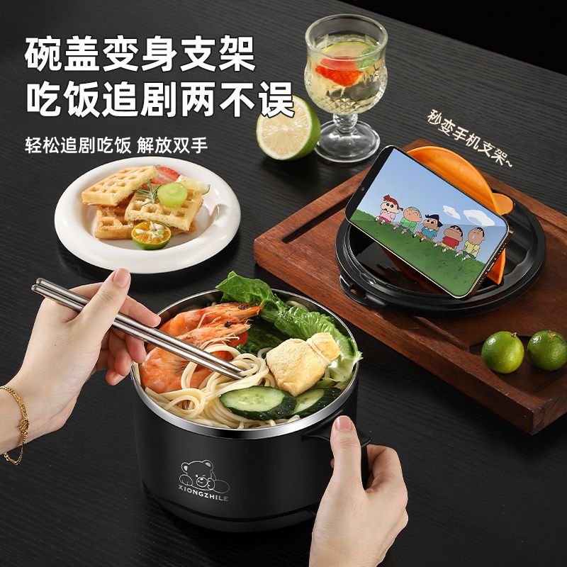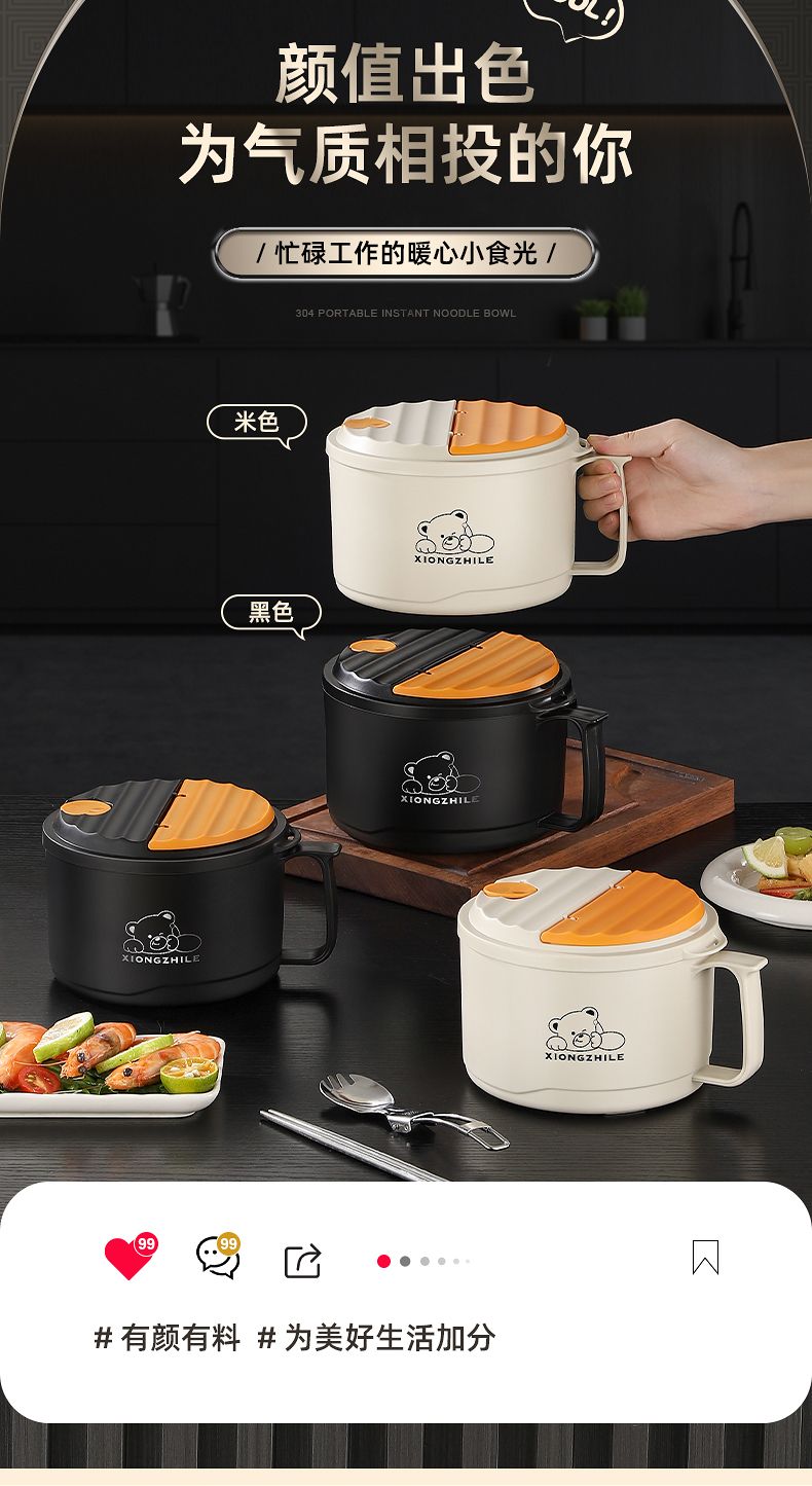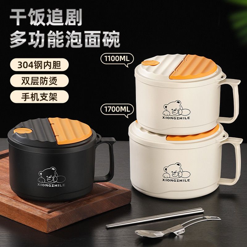 日式304不锈钢泡面碗带盖学生宿舍泡面神器食堂打饭碗筷套装