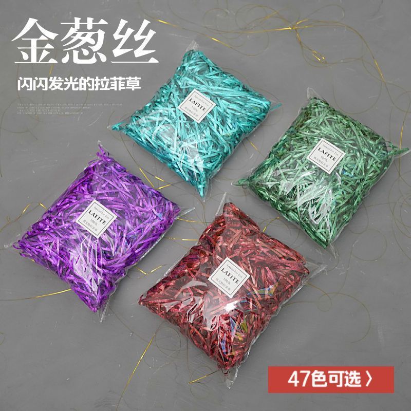 金葱拉菲草礼盒填充物高颜值情人节高档糖盒装饰生日水果批发铺垫