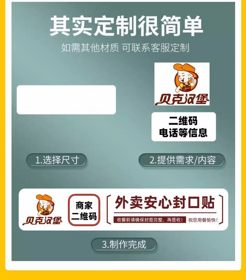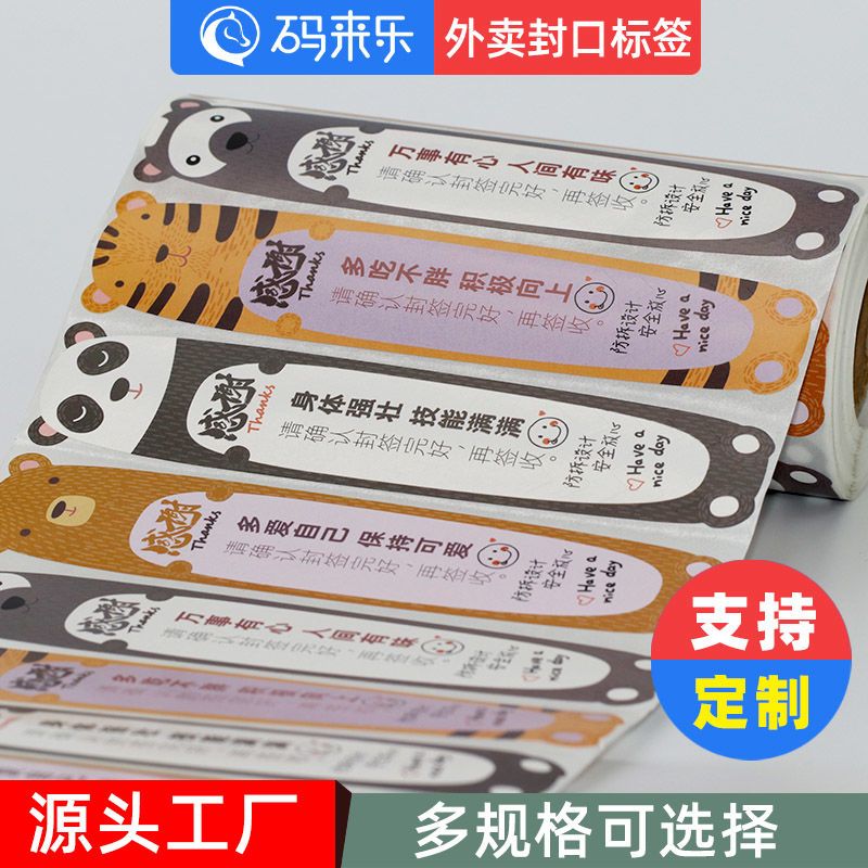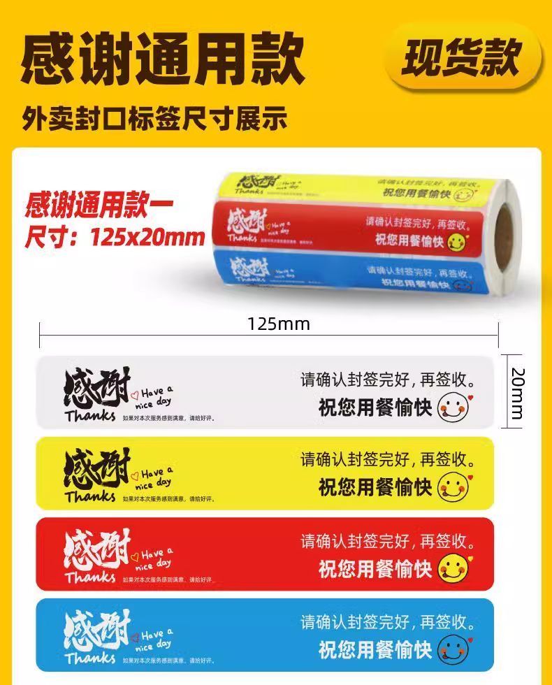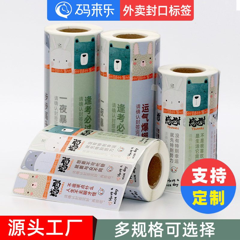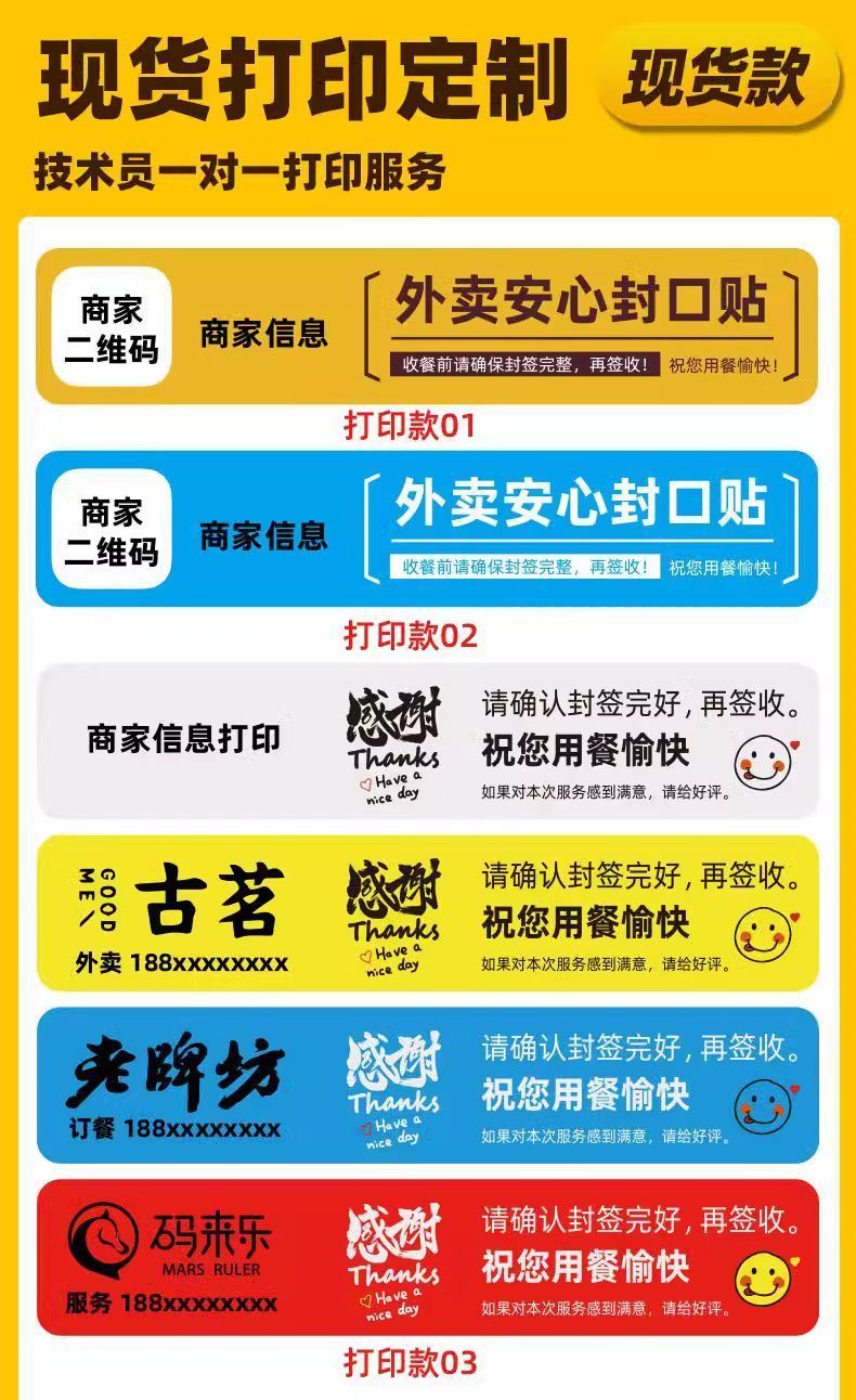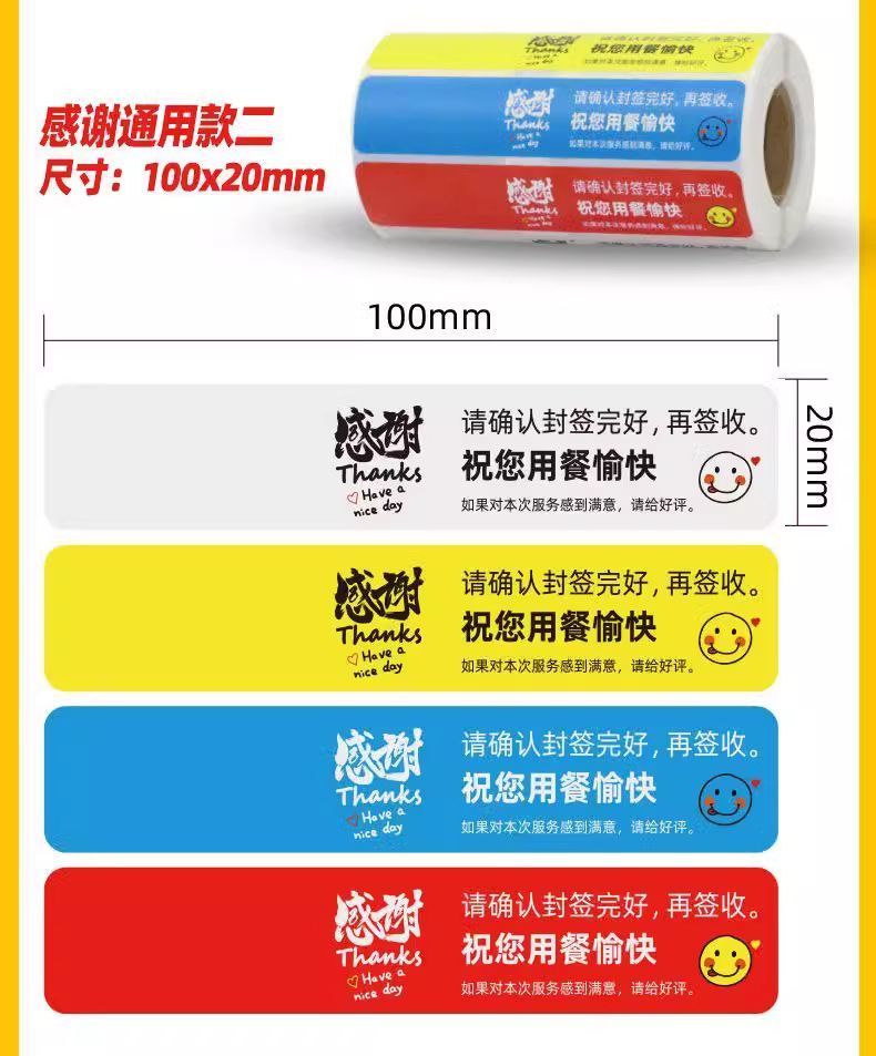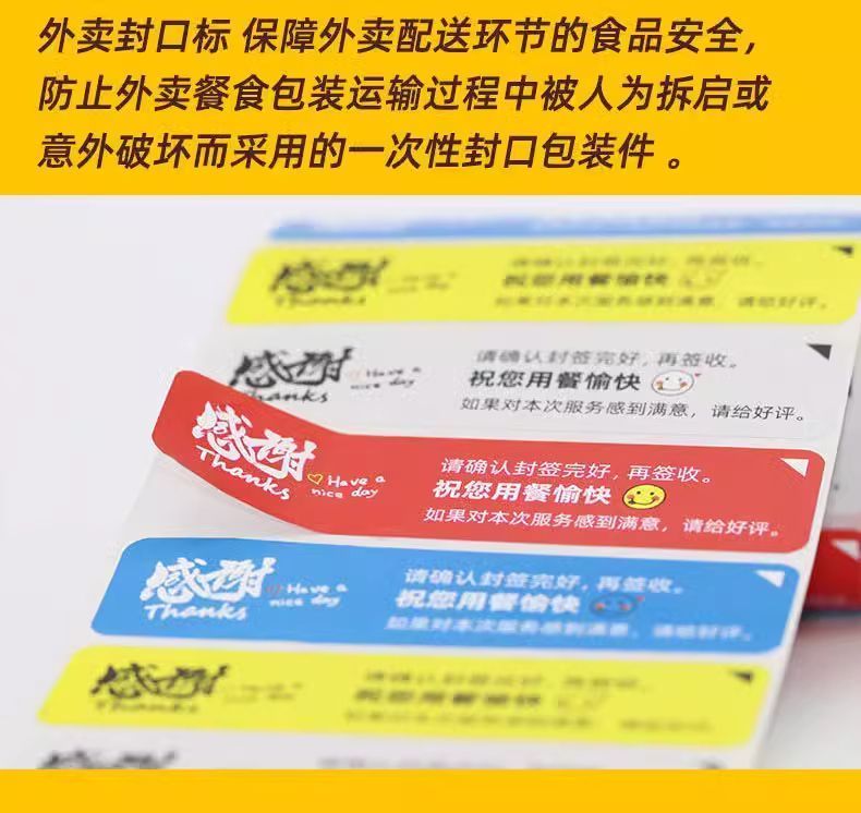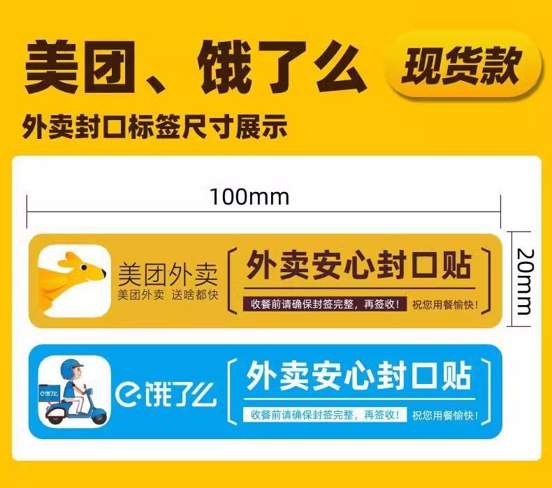 外卖封签贴纸美团饿了么食安封口封条小封签100 20防拆不干胶标签
