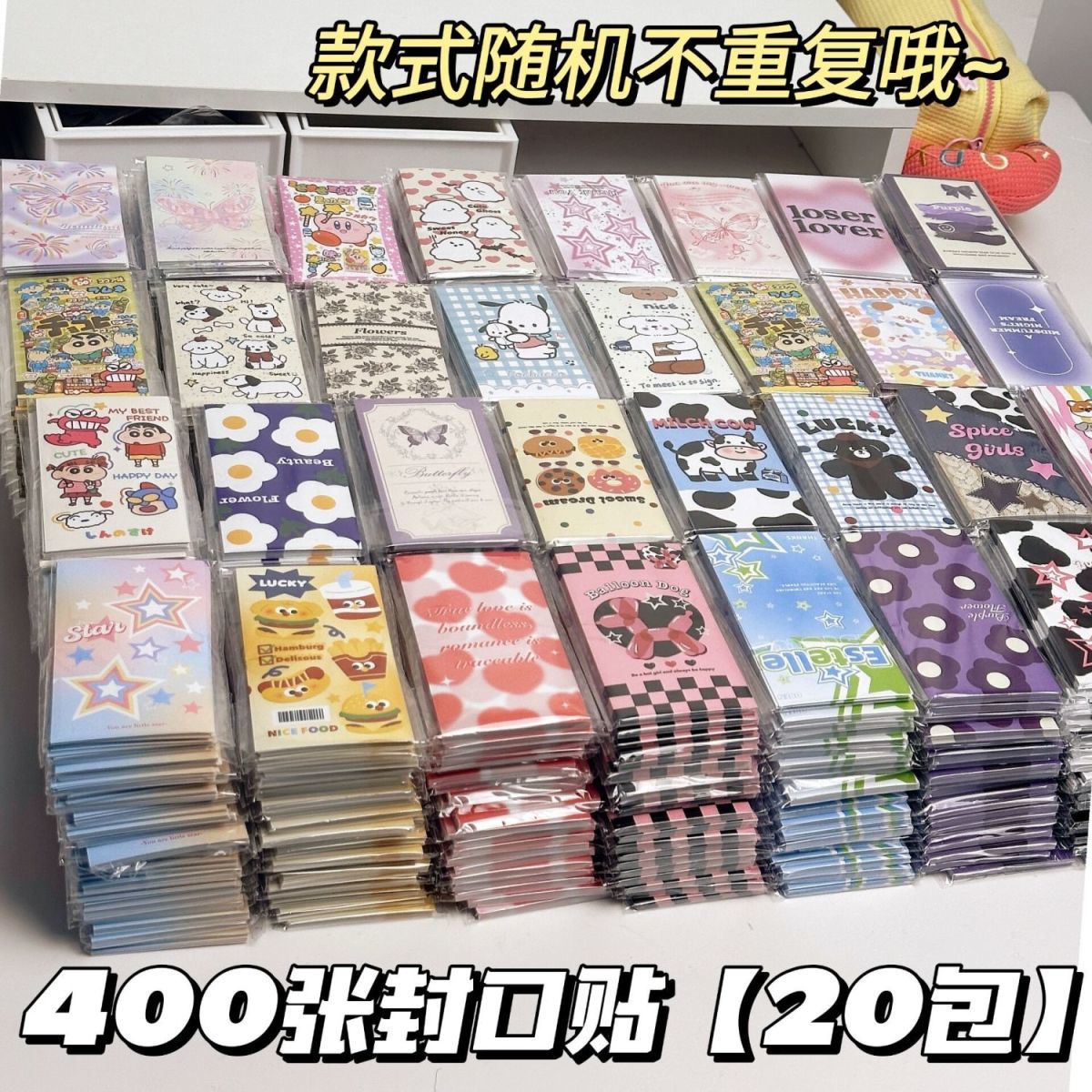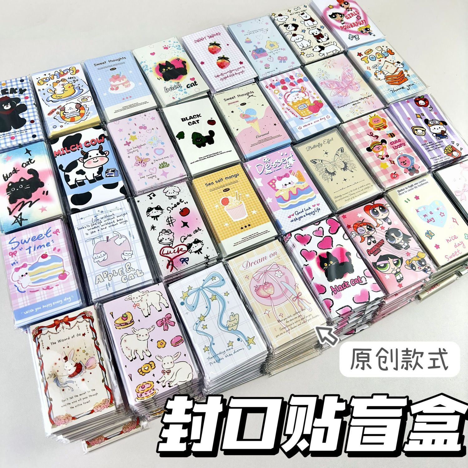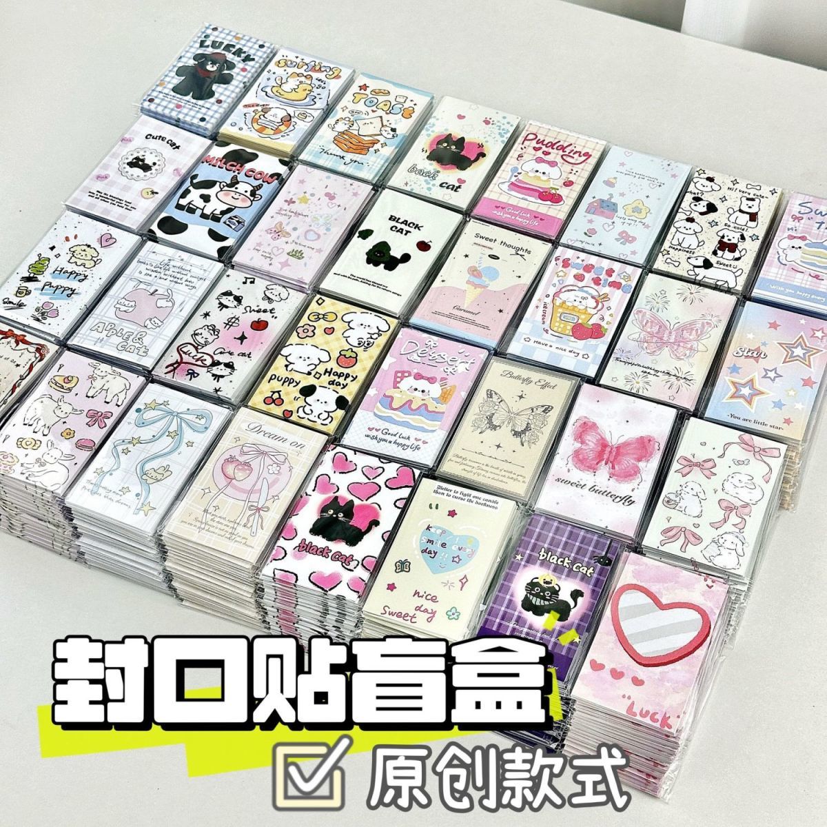 小红书ins风封口贴高颜值贴纸可爱卡通手账素材贴长方形盲盒批发