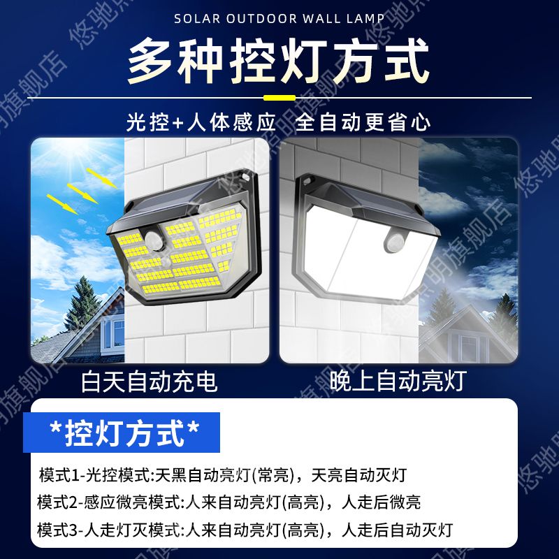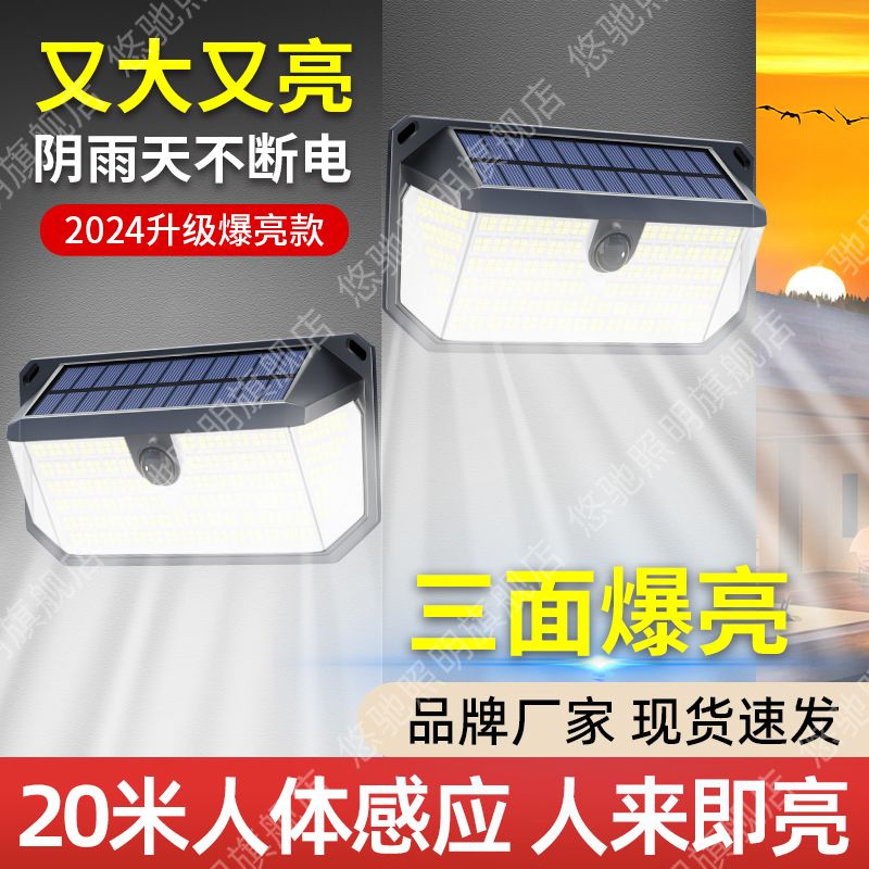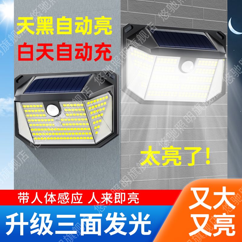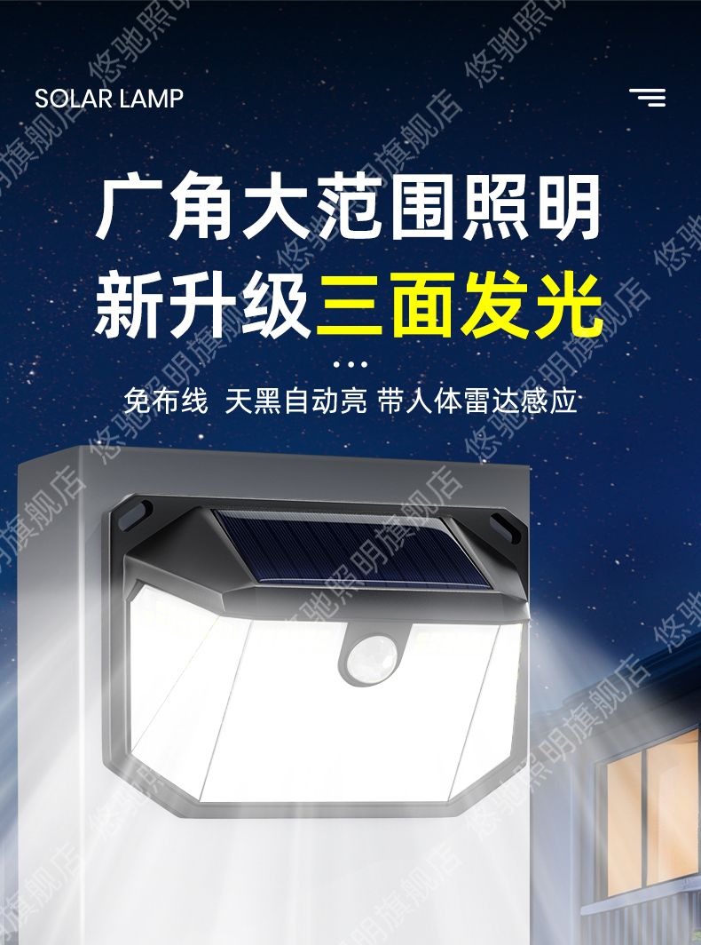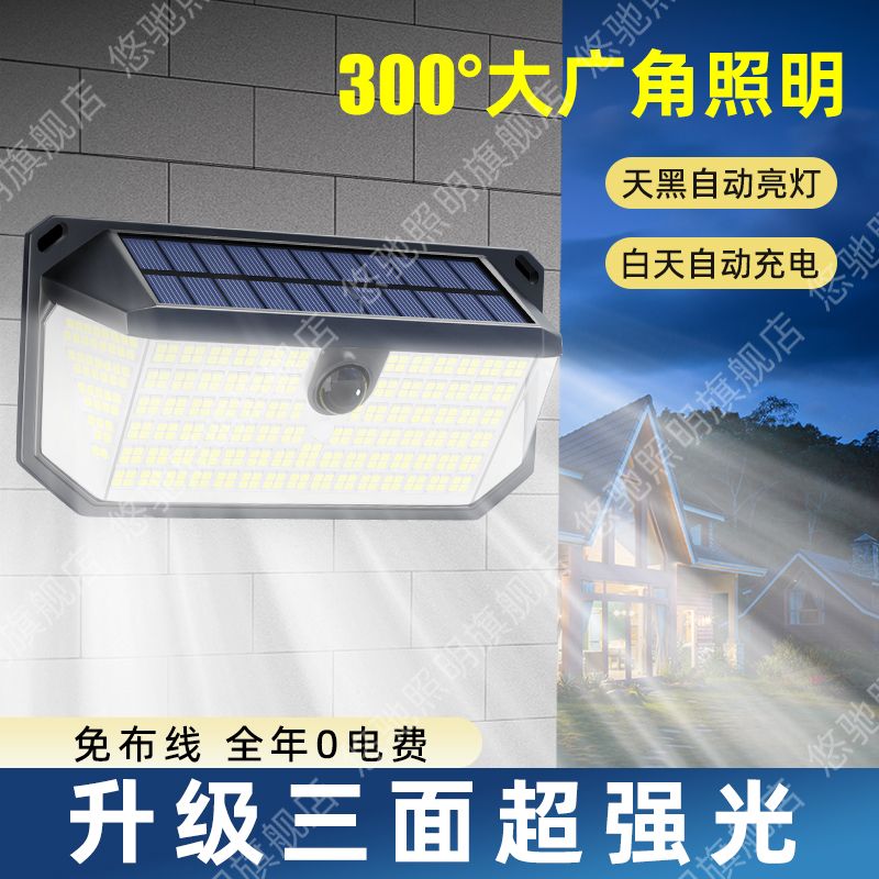 新款太阳能户外庭院灯家用农村院子室外防水人体感应照明路灯壁灯