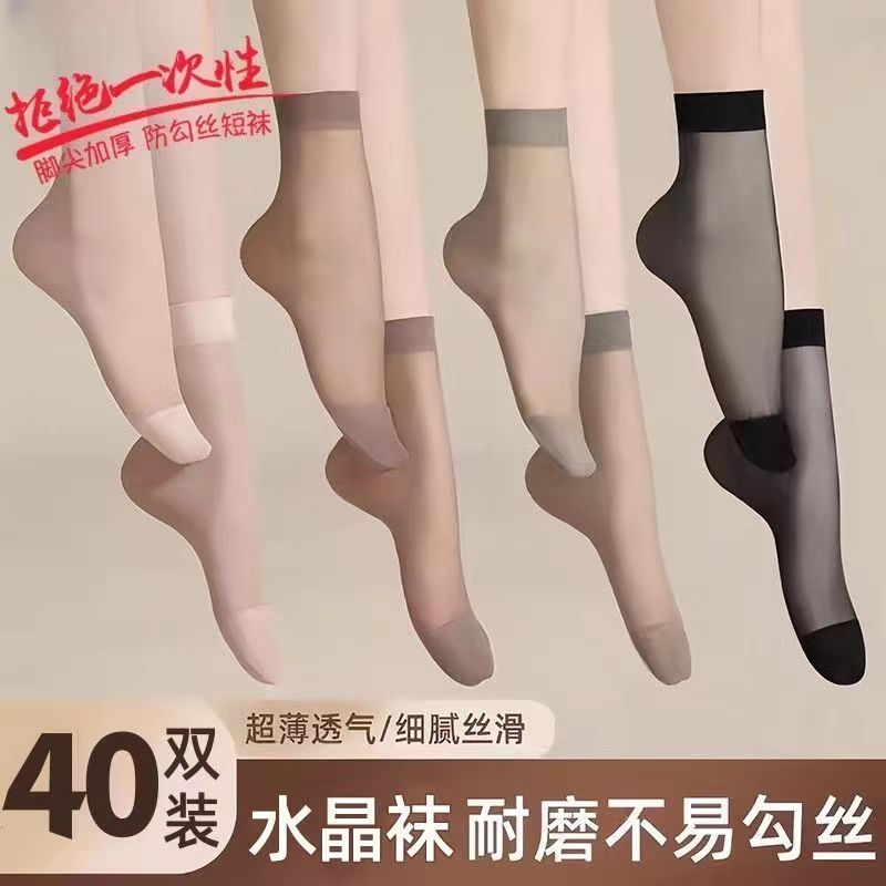 【买20双送20双】水晶袜女夏季超薄清凉透气防勾丝隐形肉色短丝袜