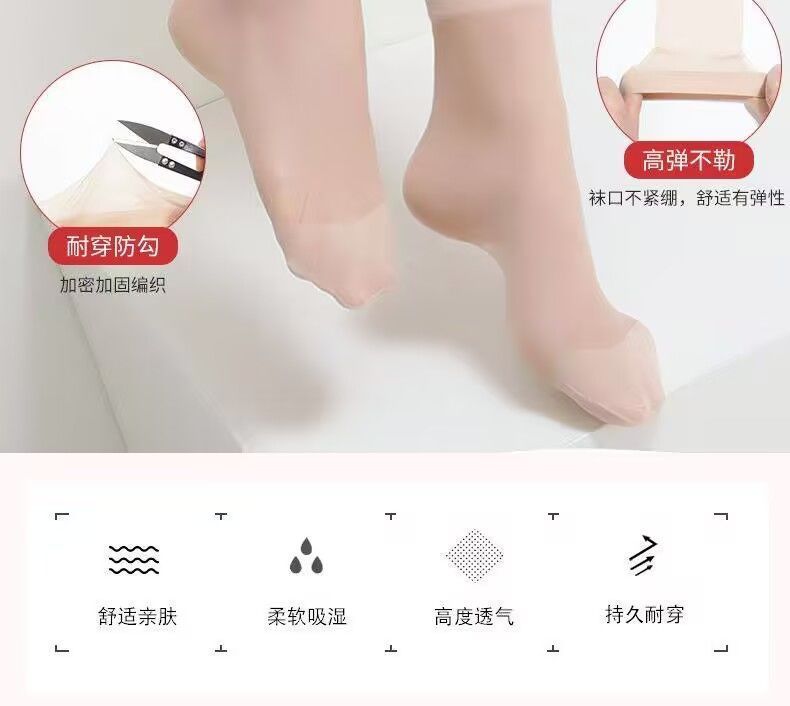 冰丝袜子丝袜女水晶丝宽口短丝袜超薄防勾短袜耐磨隐形透明夏季款