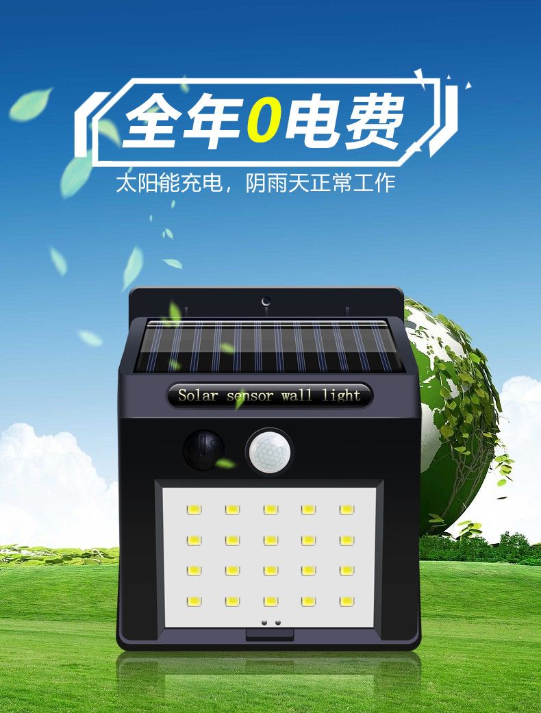 太阳能庭院户外灯家用照明人体感应路灯室外阳台农村门口超亮防水