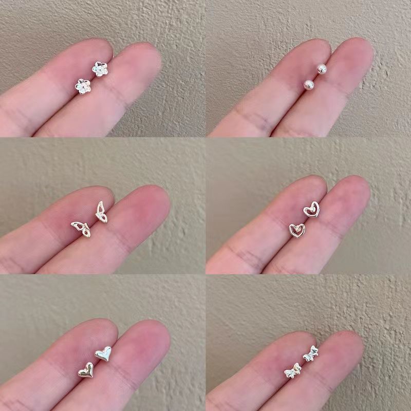 养耳洞s925纯银小耳钉套装组合甜美风小众设计感耳骨钉防过敏耳饰