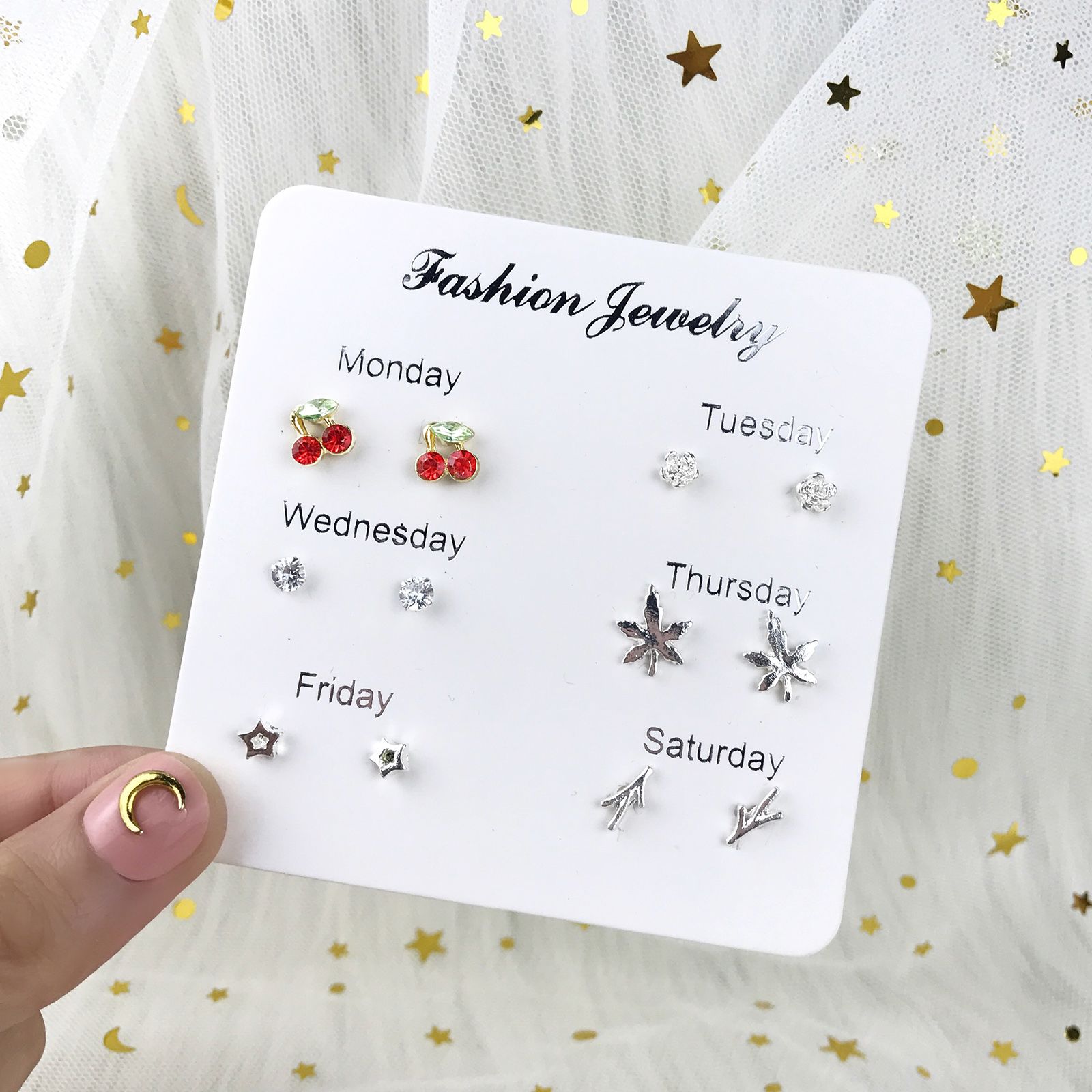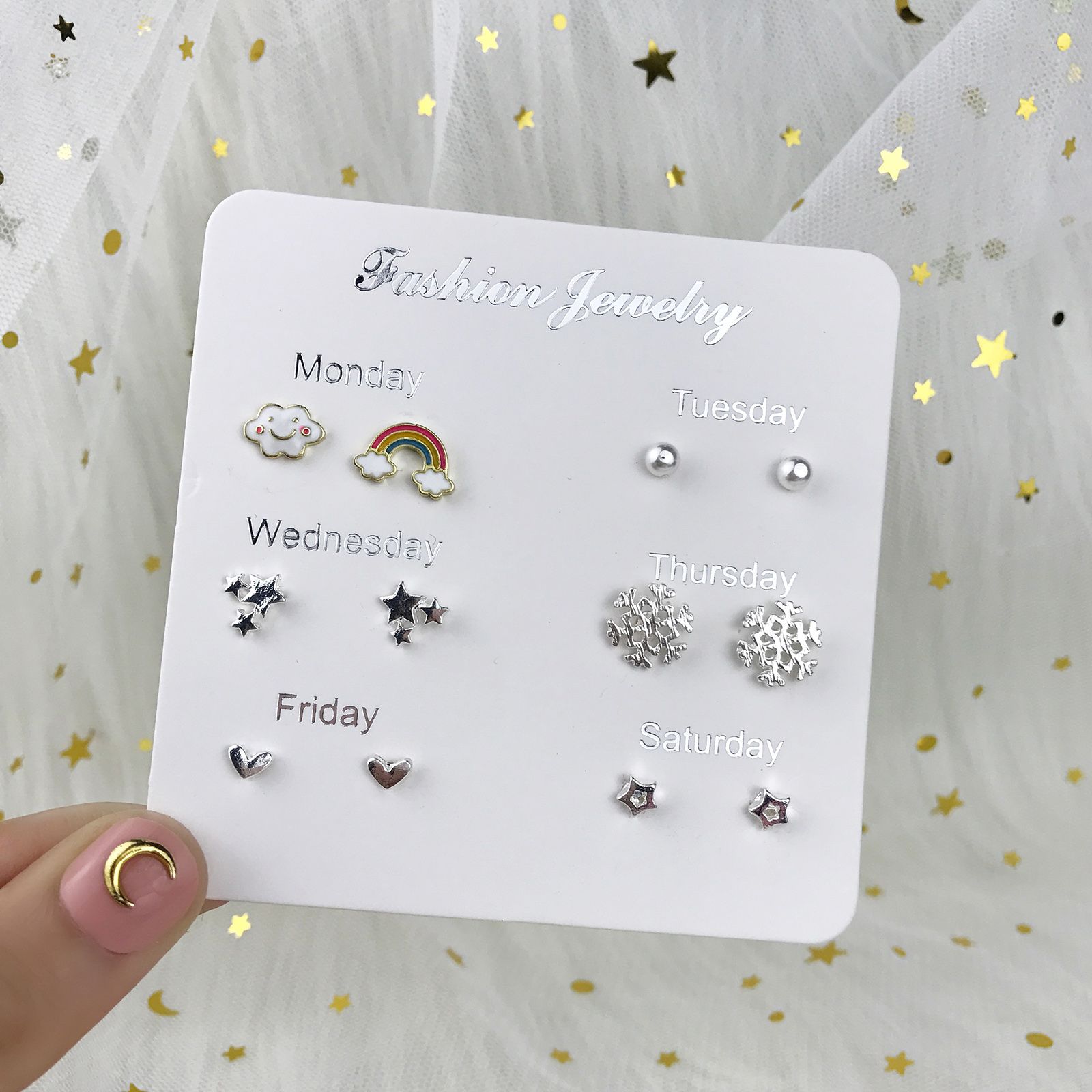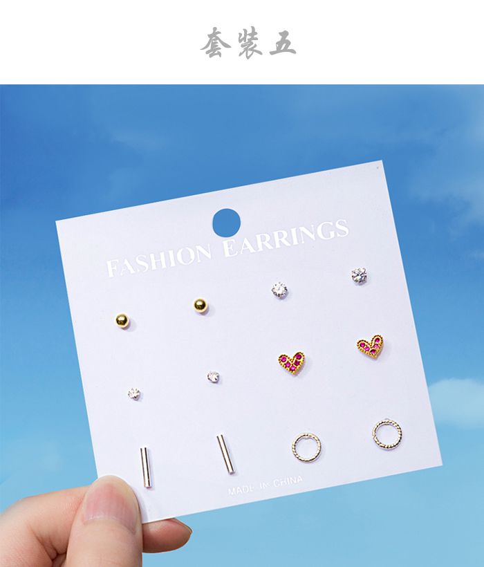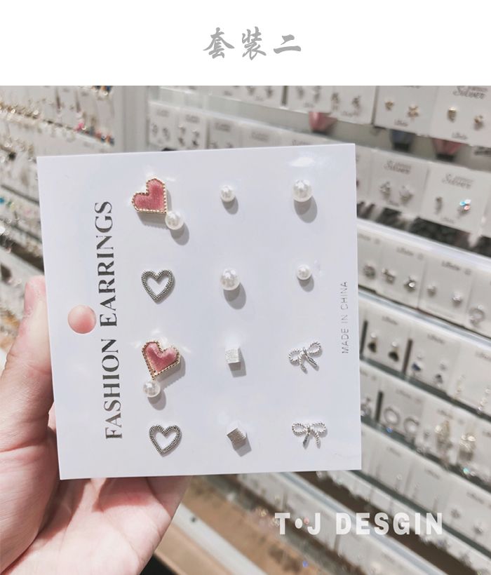 【6对装】耳钉耳环女学生韩版简约可爱套装组合