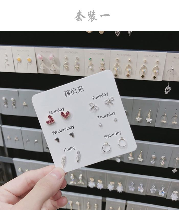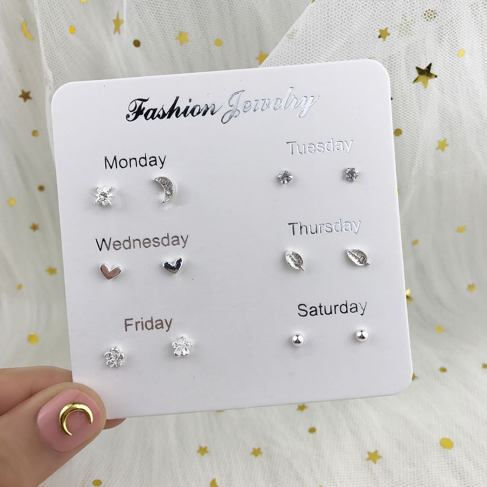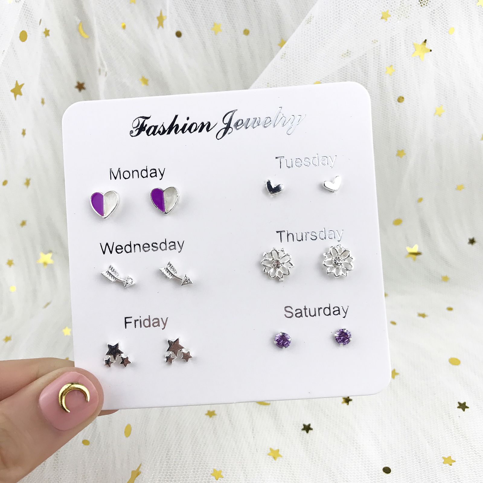 【6对装】耳钉耳环女学生韩版简约可爱套装组合