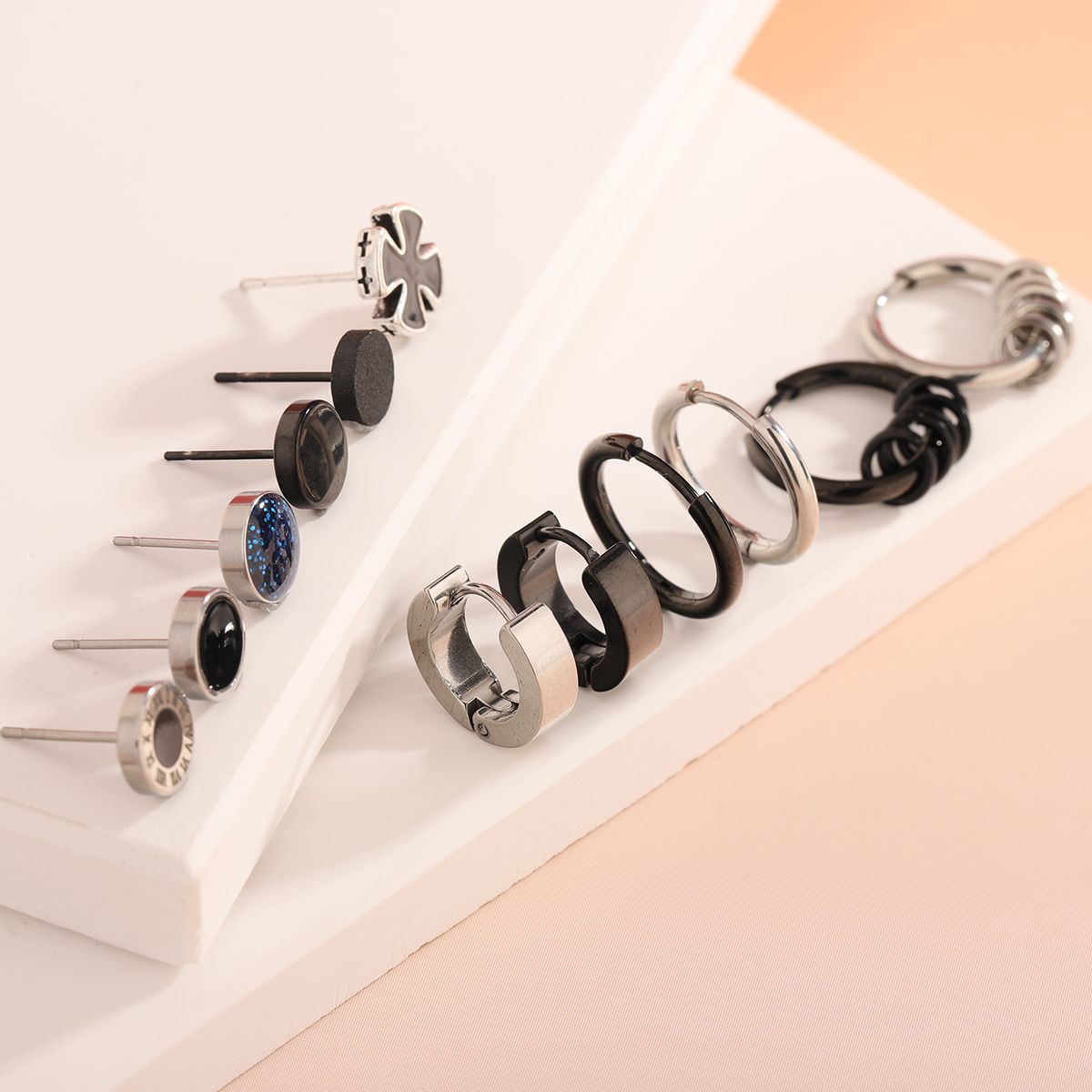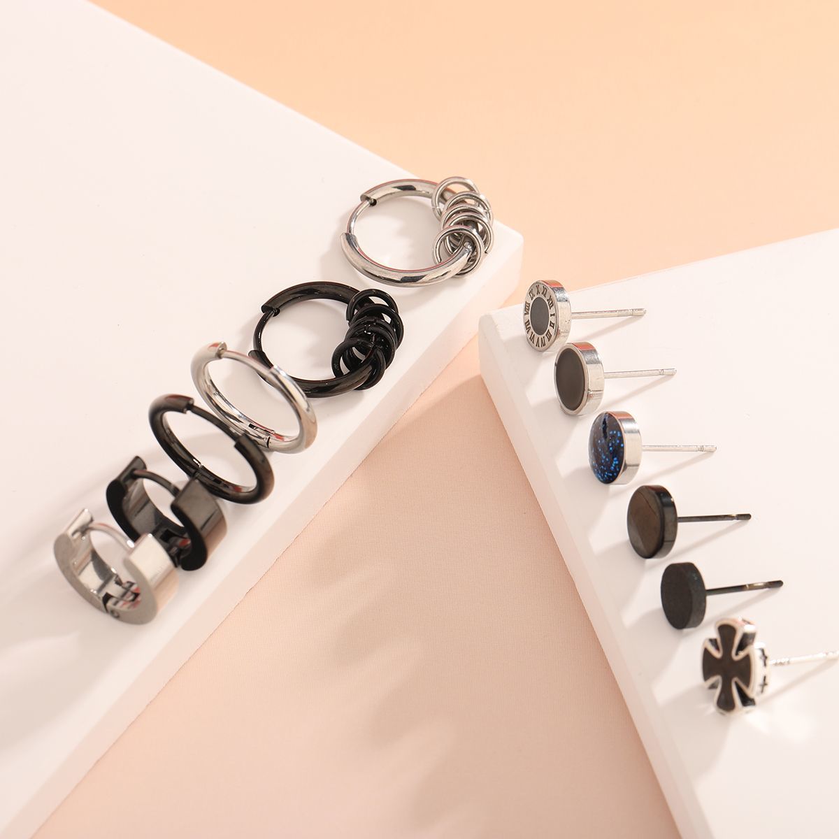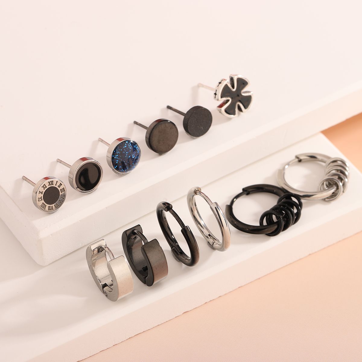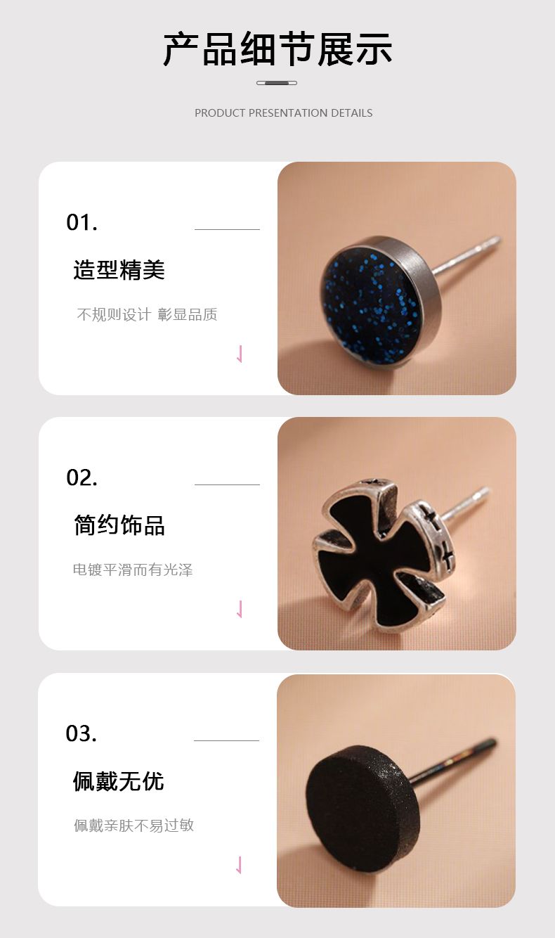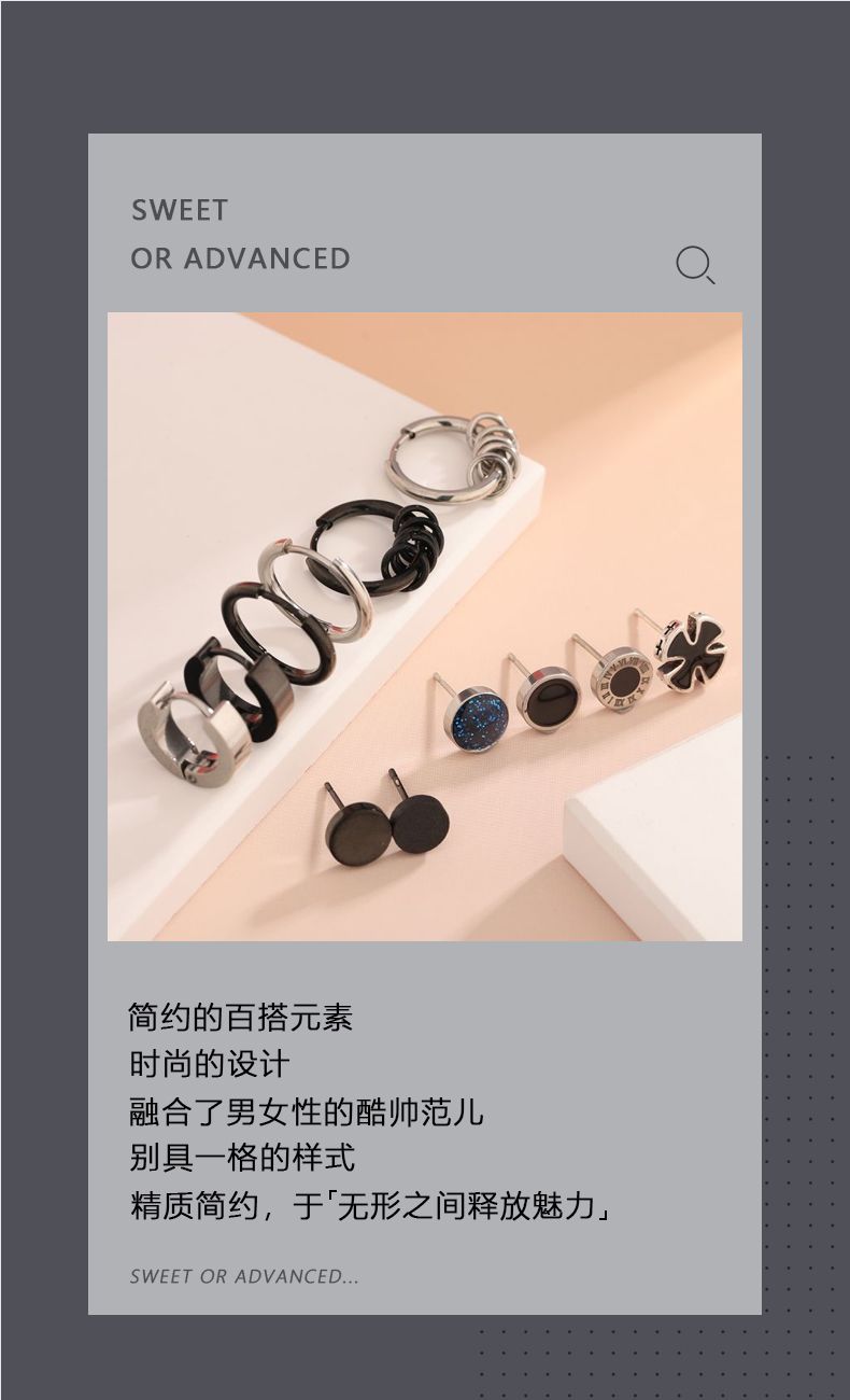 痞帅耳钉2024年新款时尚组合套装单只嘻哈创意耳环钛钢个性耳饰