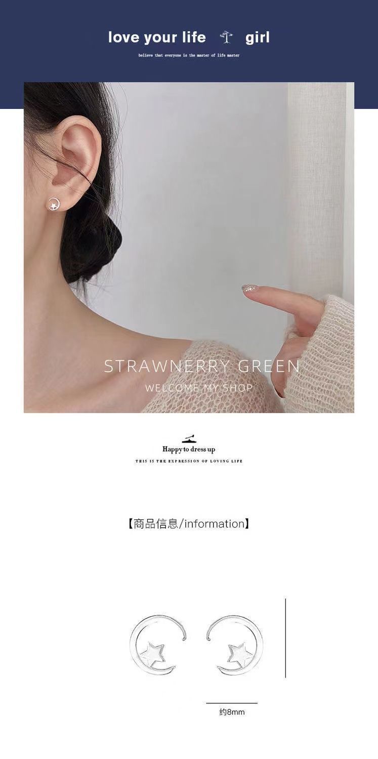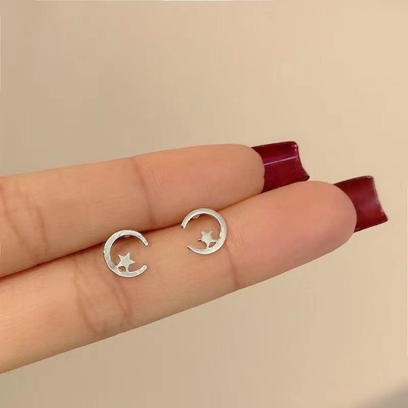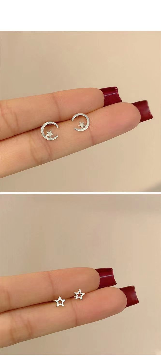 养耳洞s925银针小耳钉套装小巧冷淡风小众设计感星月防过敏耳骨钉