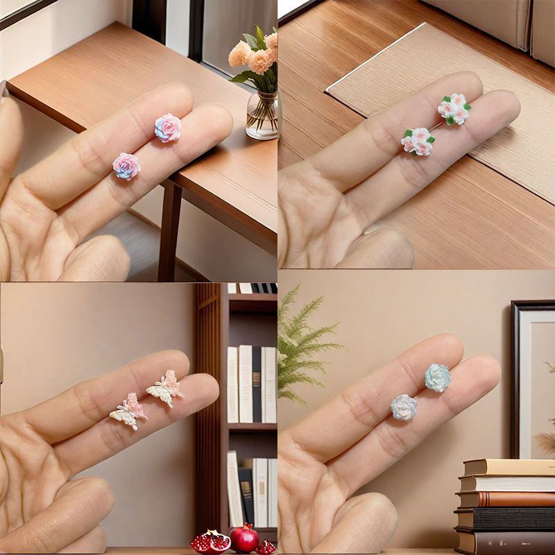 夏季花朵甜美耳环组合套装可爱清新精致百搭小众时尚新款耳钉耳饰