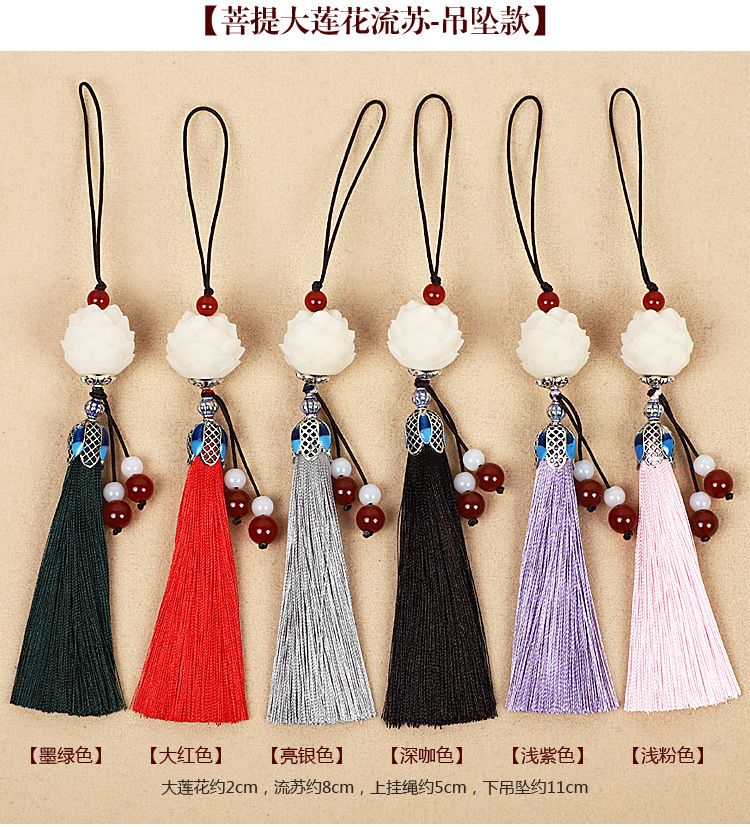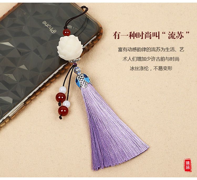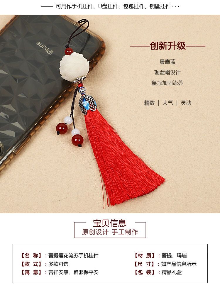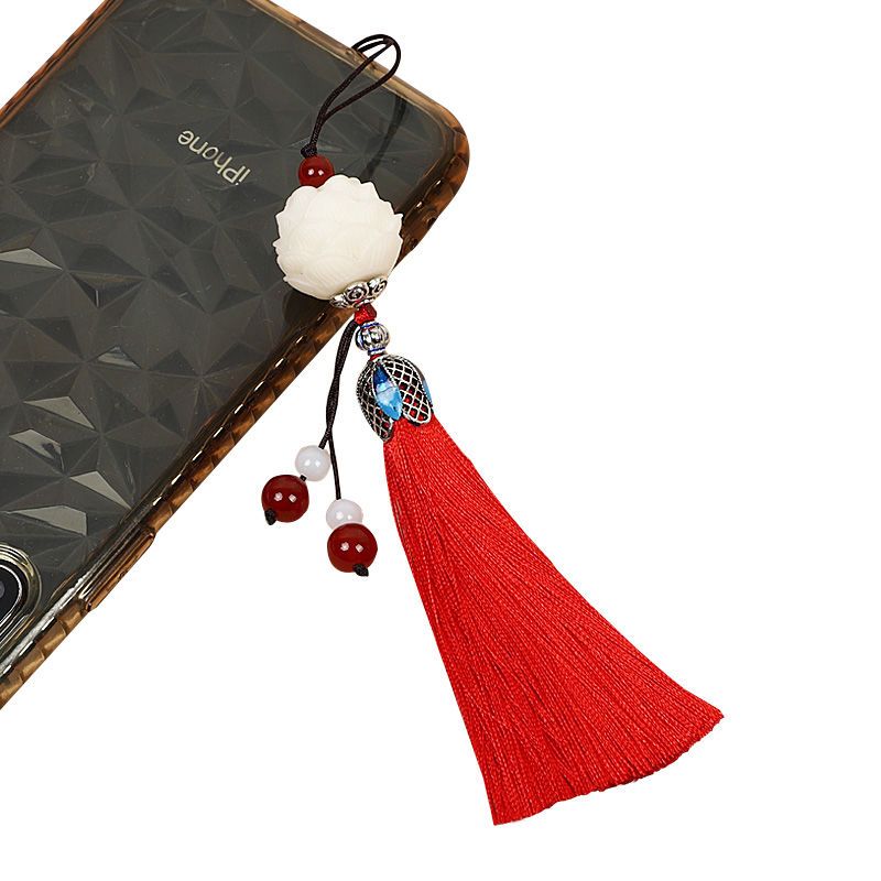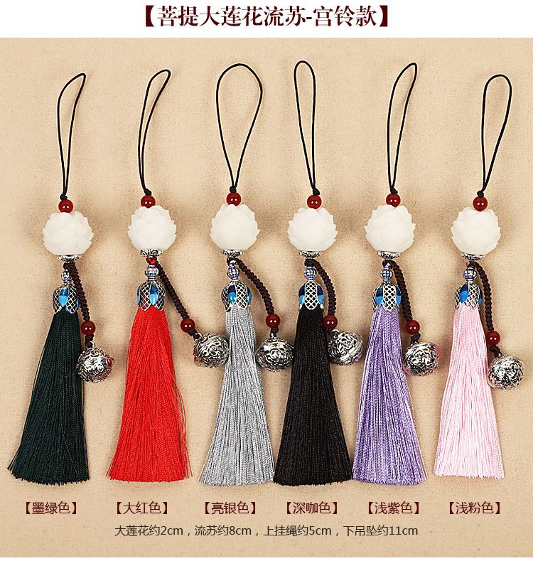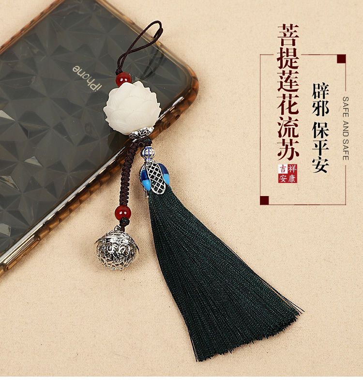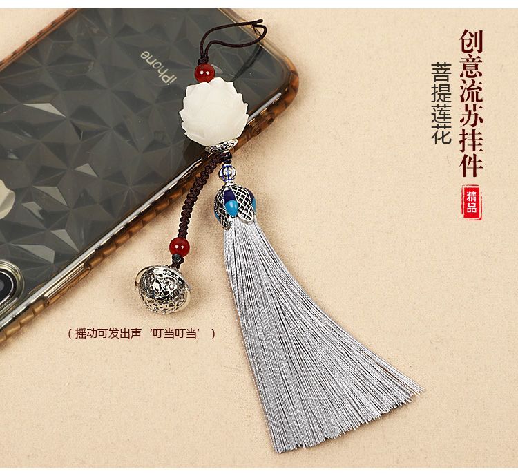 莲花流苏手机挂件饰品女款吊坠手机壳挂绳链铃铛挂饰古风穗子挂坠