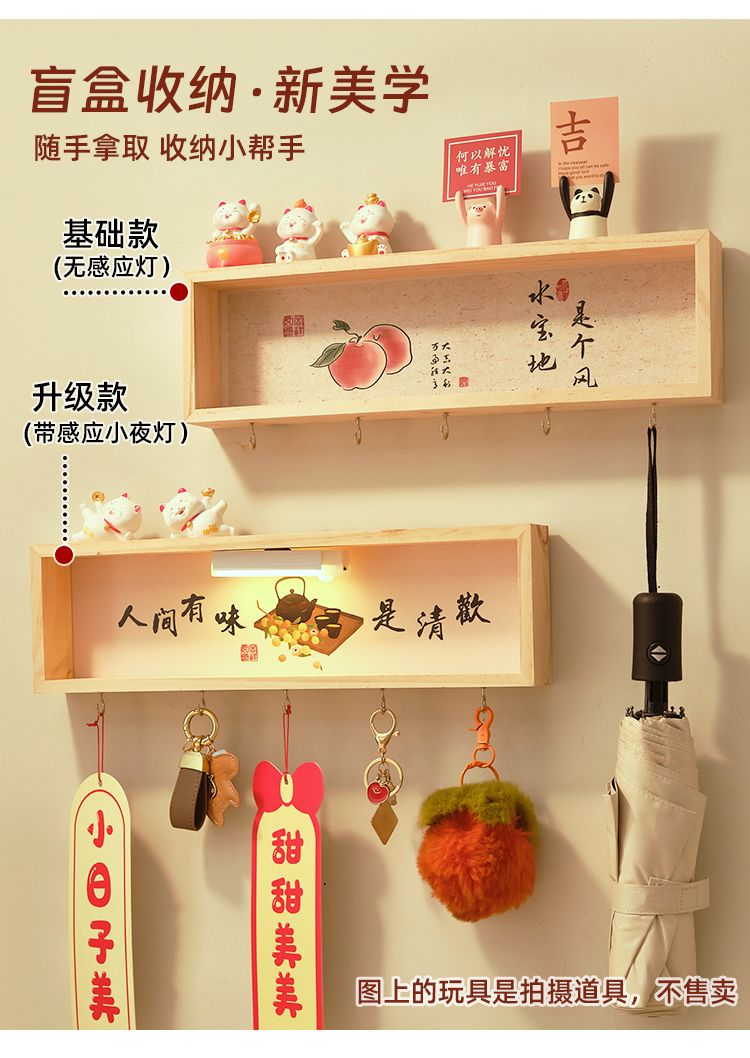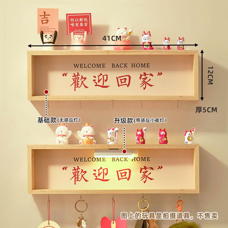 收纳入户门免打孔墙上挂牌置物架摆件钥匙玄关挂钩装饰挂画感应灯