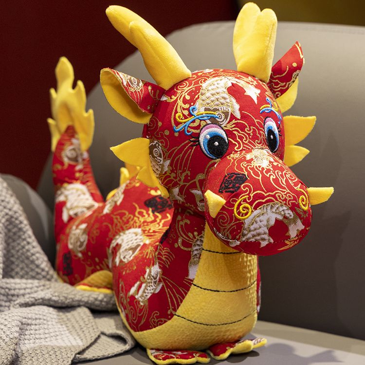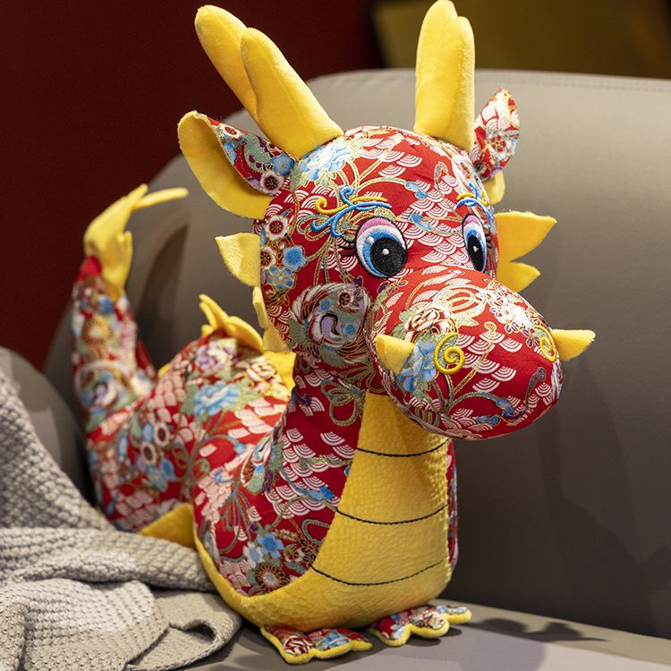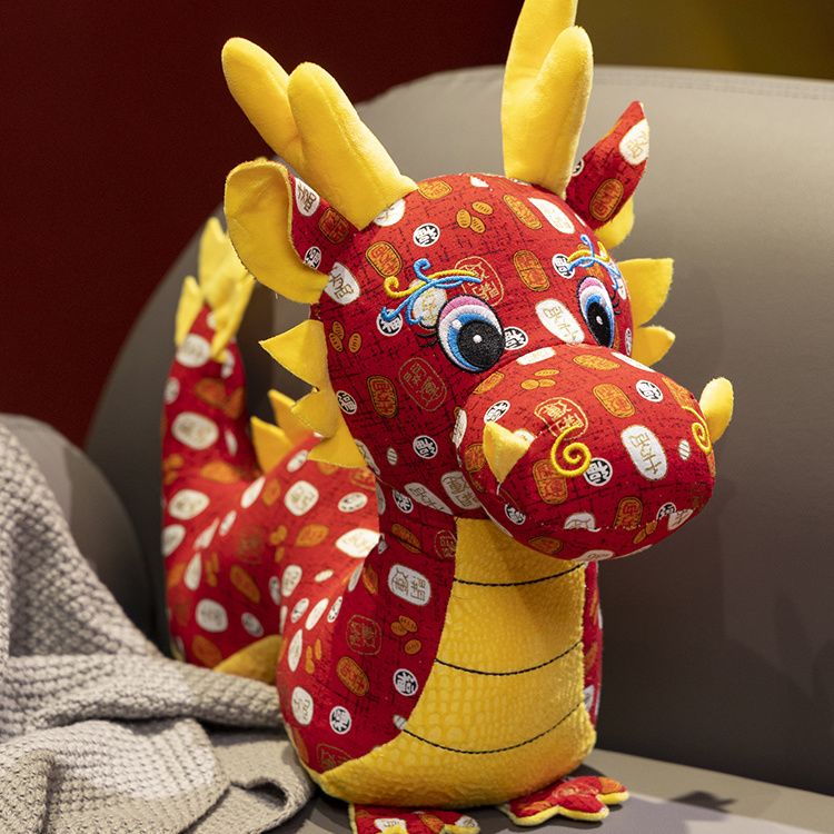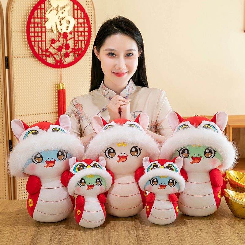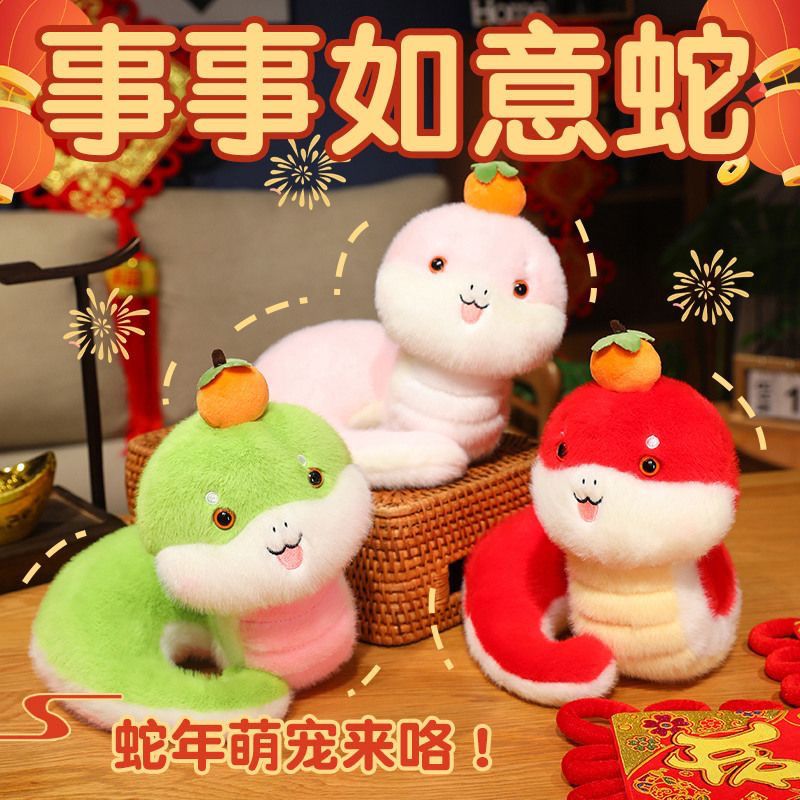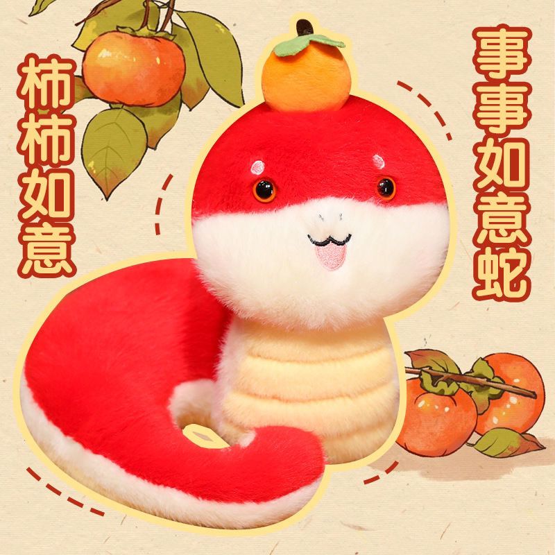 花布蛇毛绒玩具礼品可定制logo新年蛇年年会礼品2025年喜庆国风