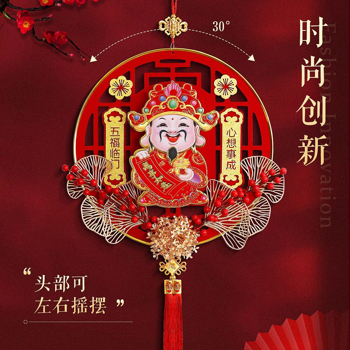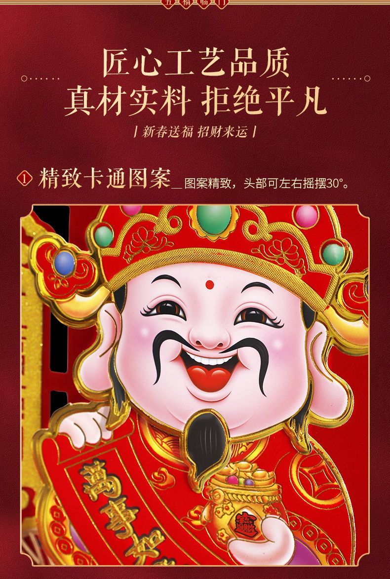 2025新款财神立体财神爷会动摇头晃脑新年挂件春节客厅亚克力装饰