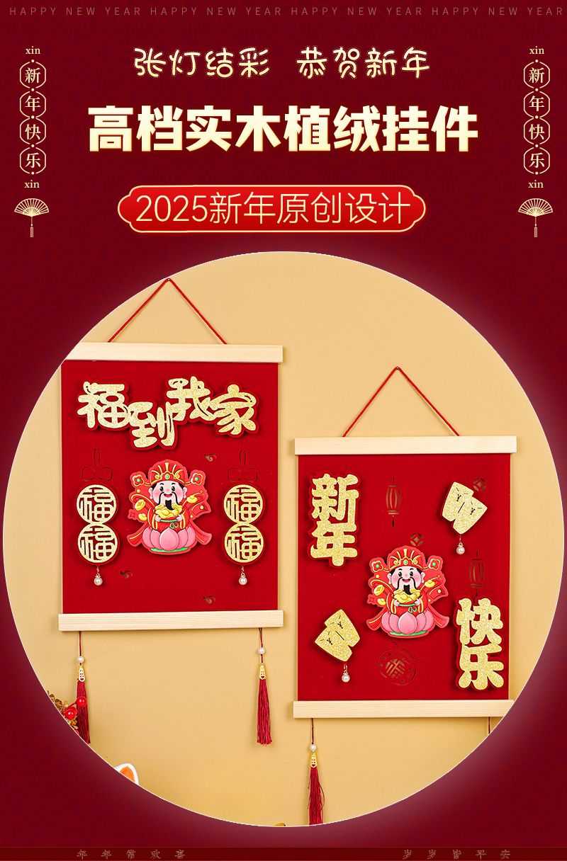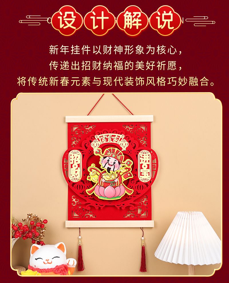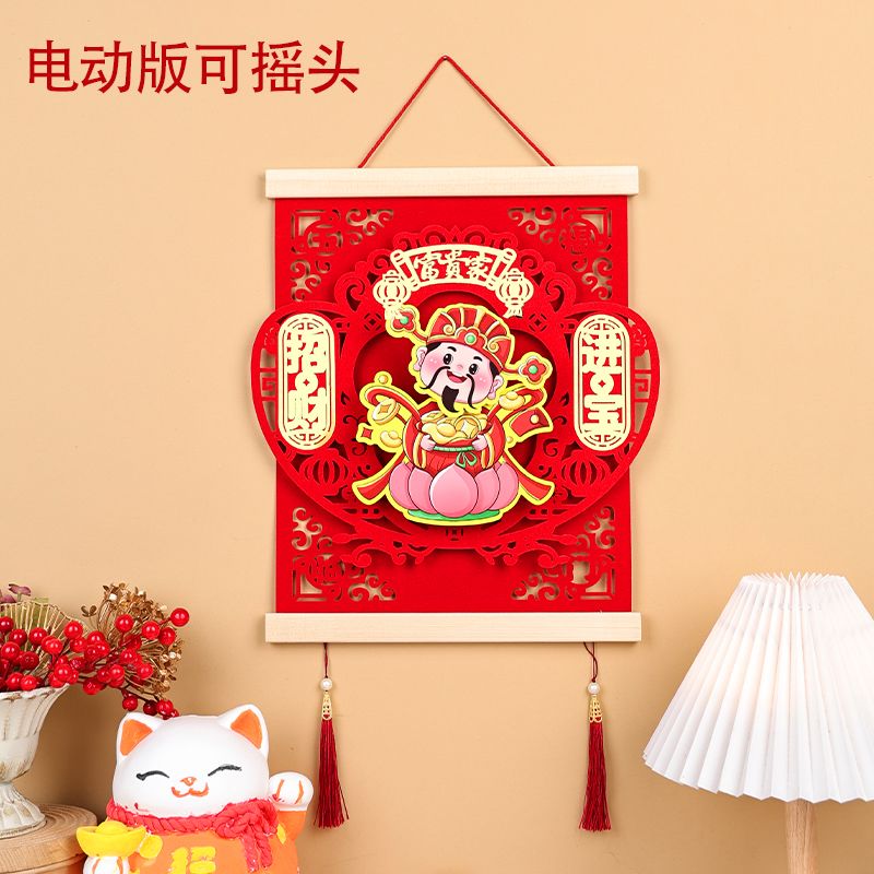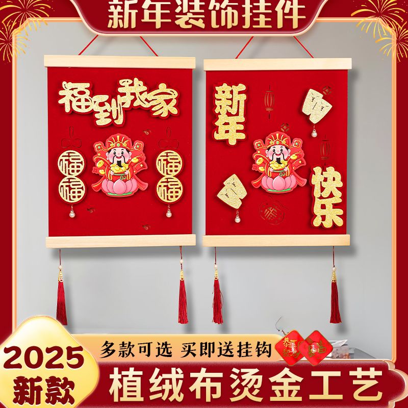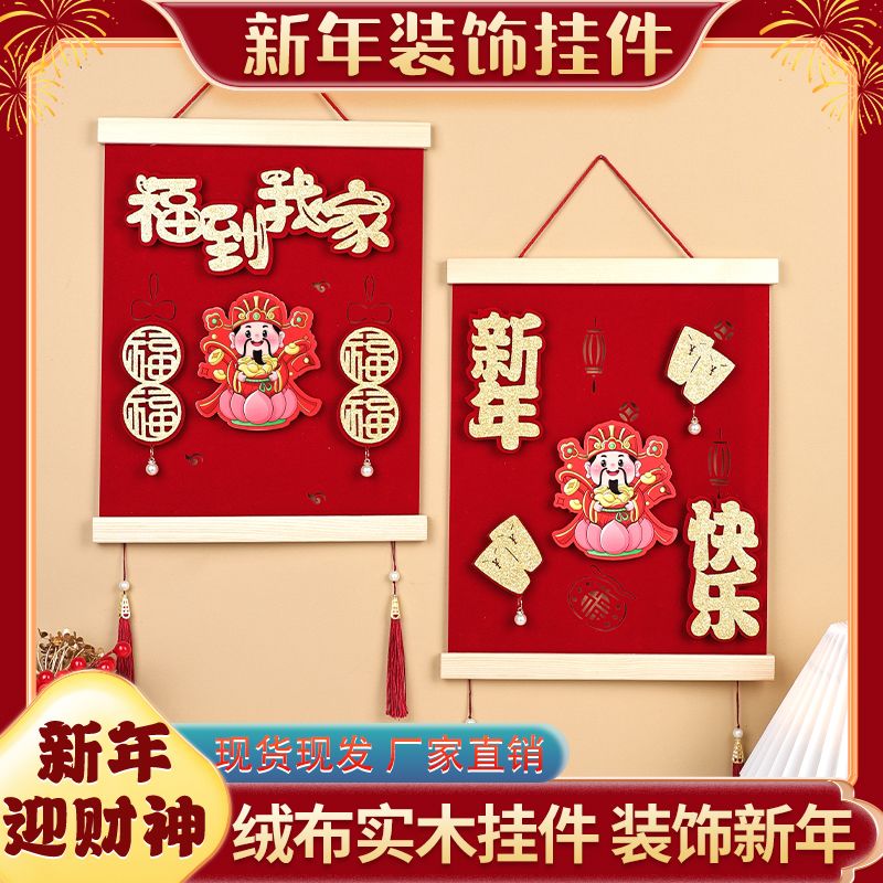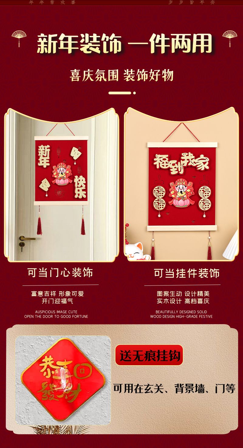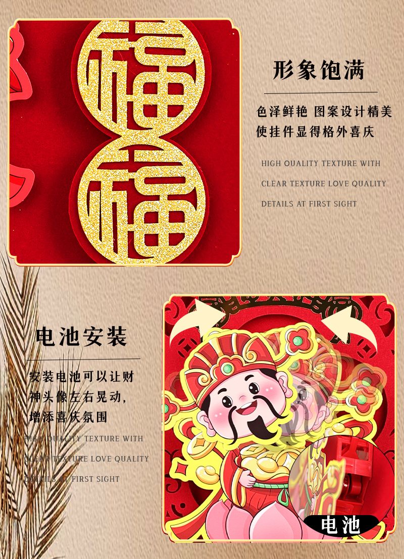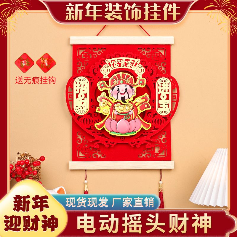 2025蛇年迎财神春节装饰挂件过年新年客厅挂饰摇头财神玄关木质