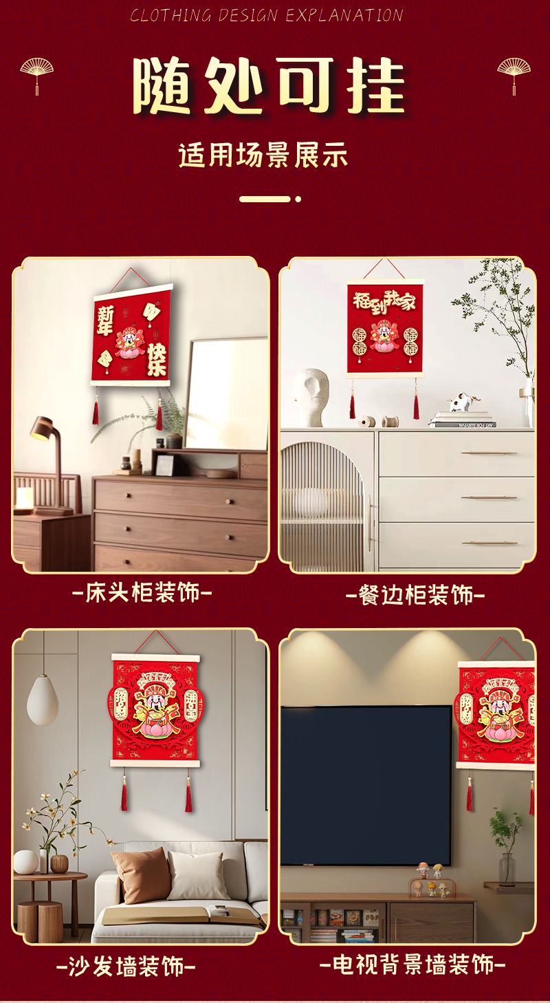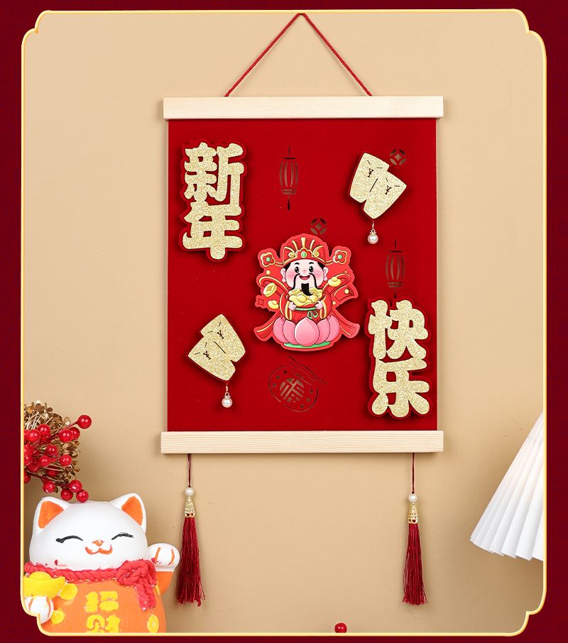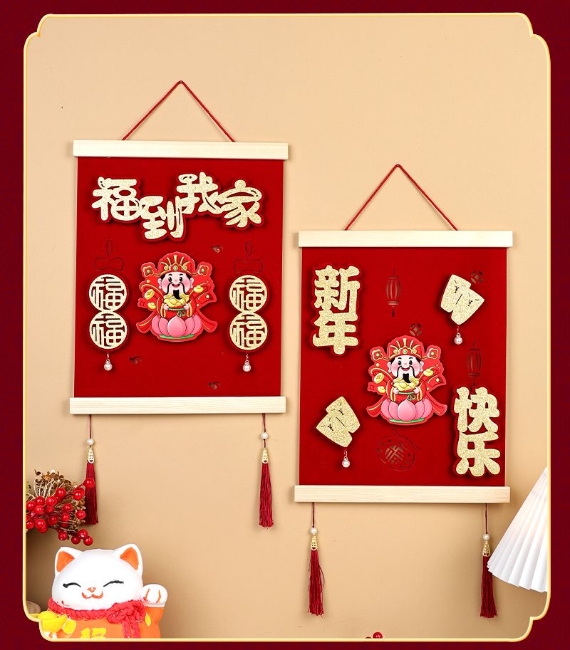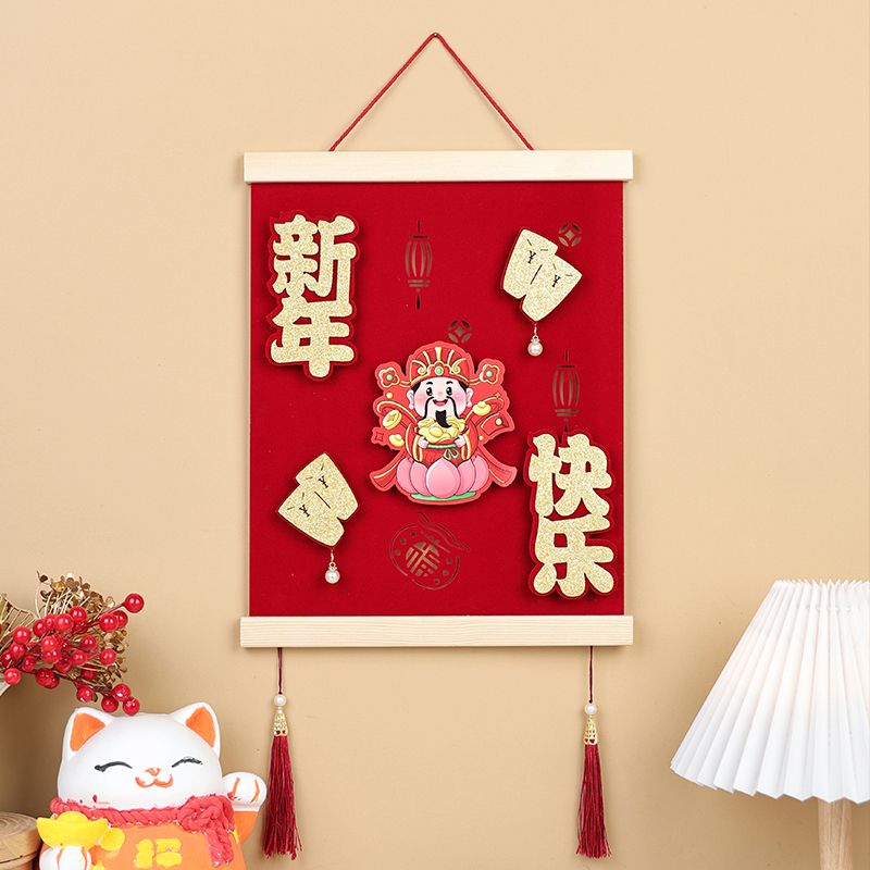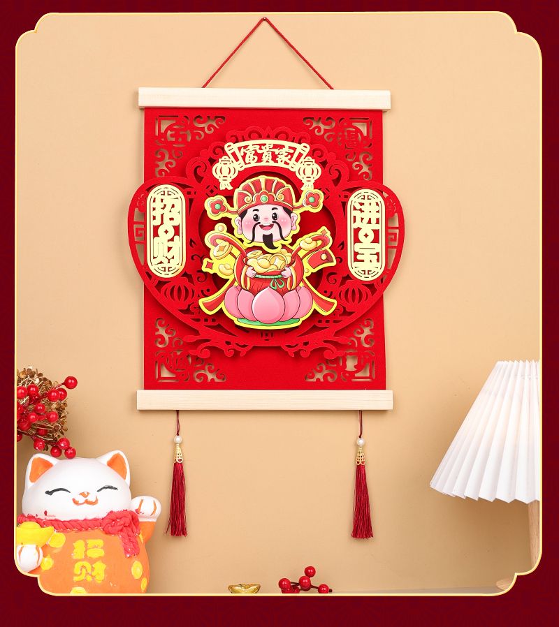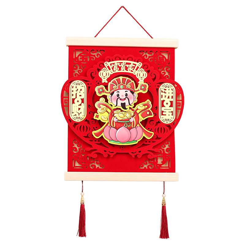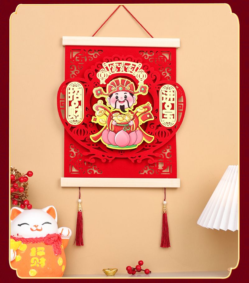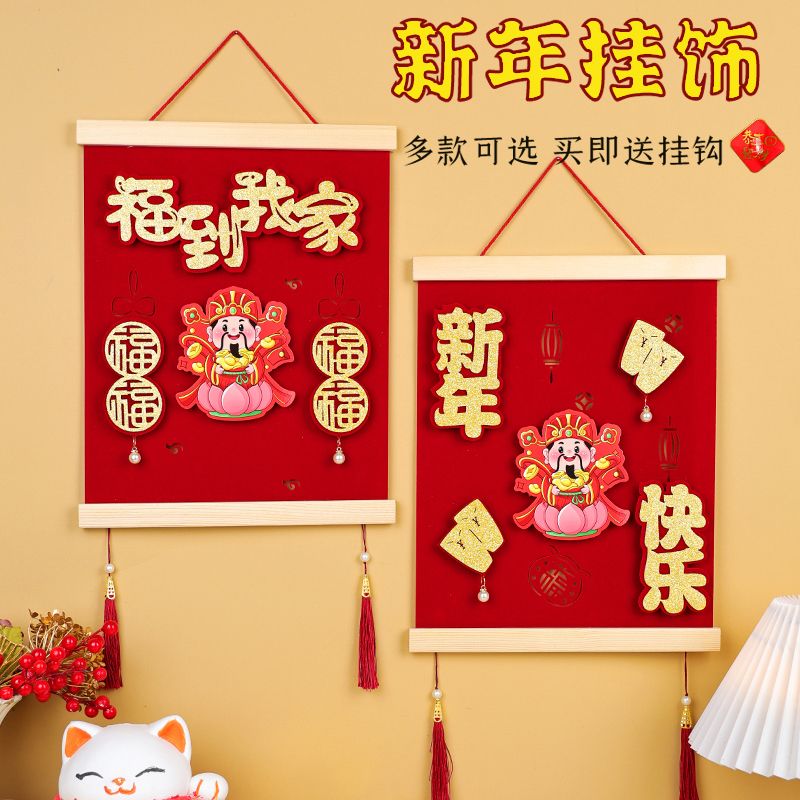 2025蛇年迎财神春节装饰挂件过年新年客厅挂饰摇头财神玄关木质