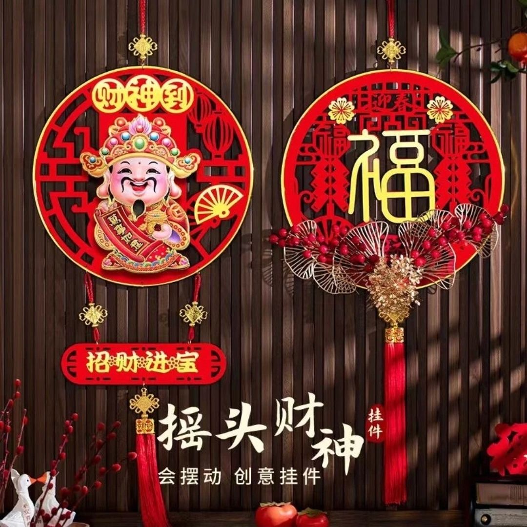 摇头财神春节挂件装饰电动福字过年客厅新款挂饰布置门贴客厅新款