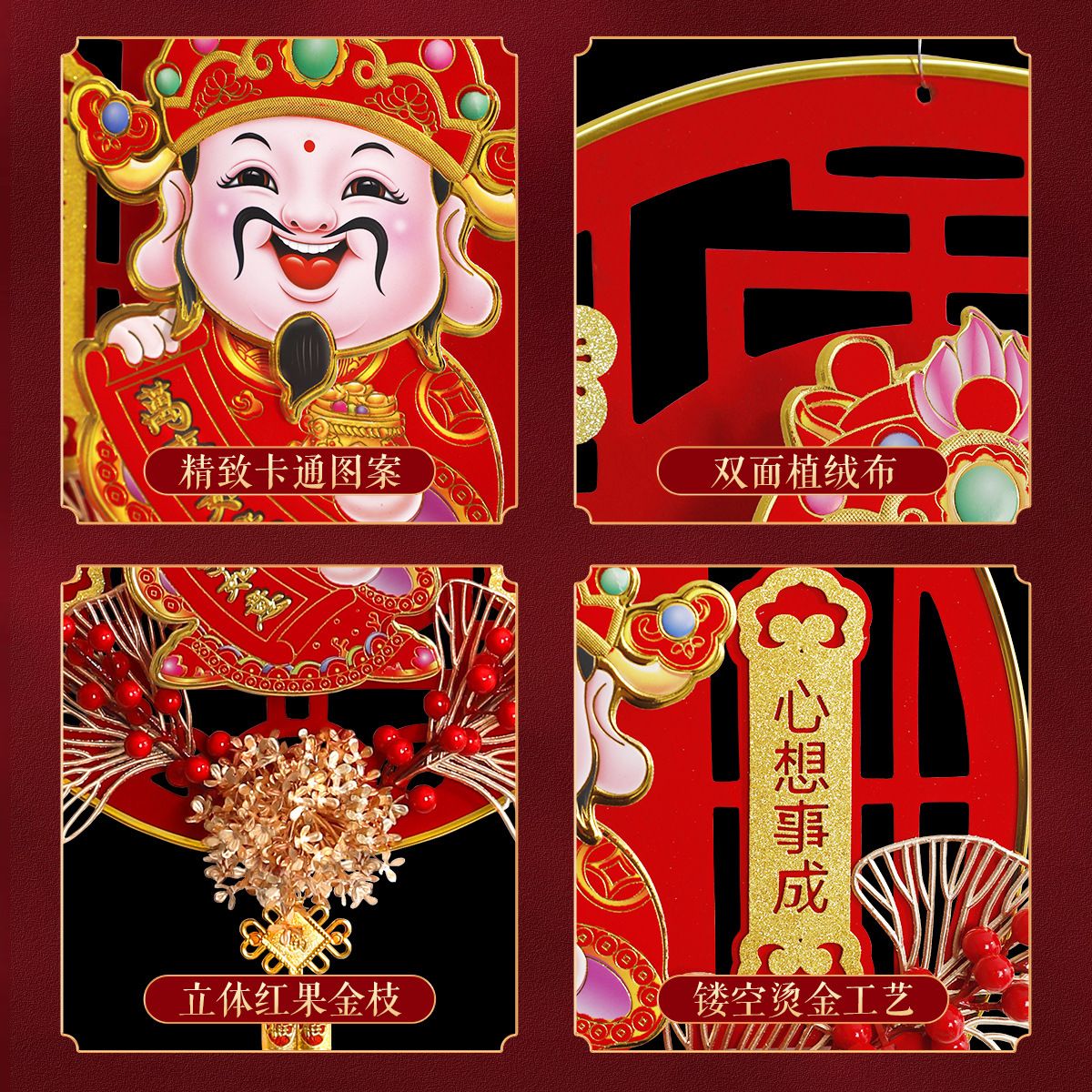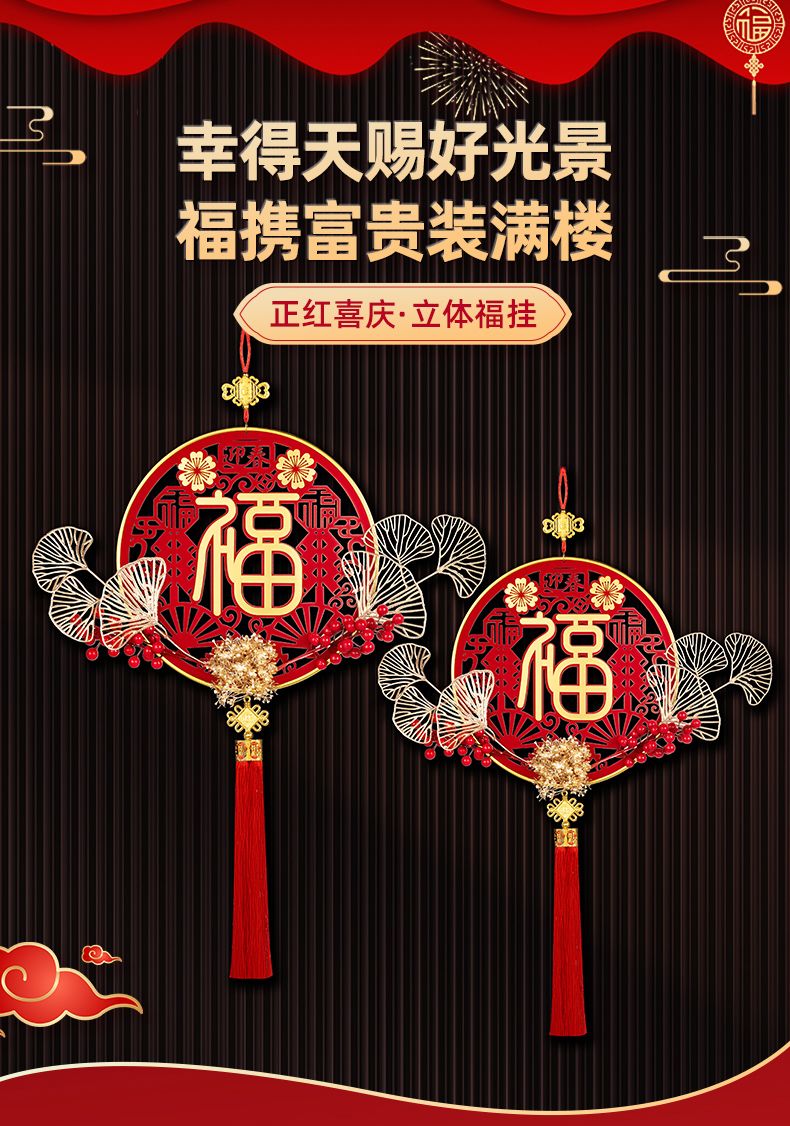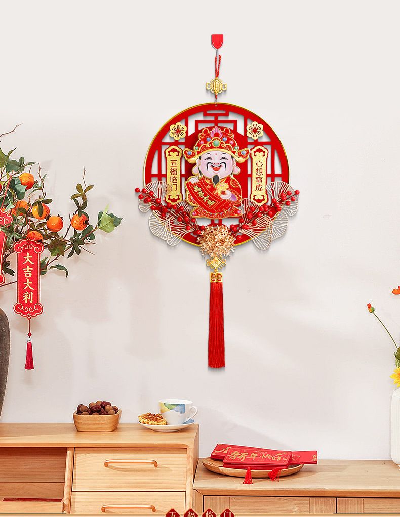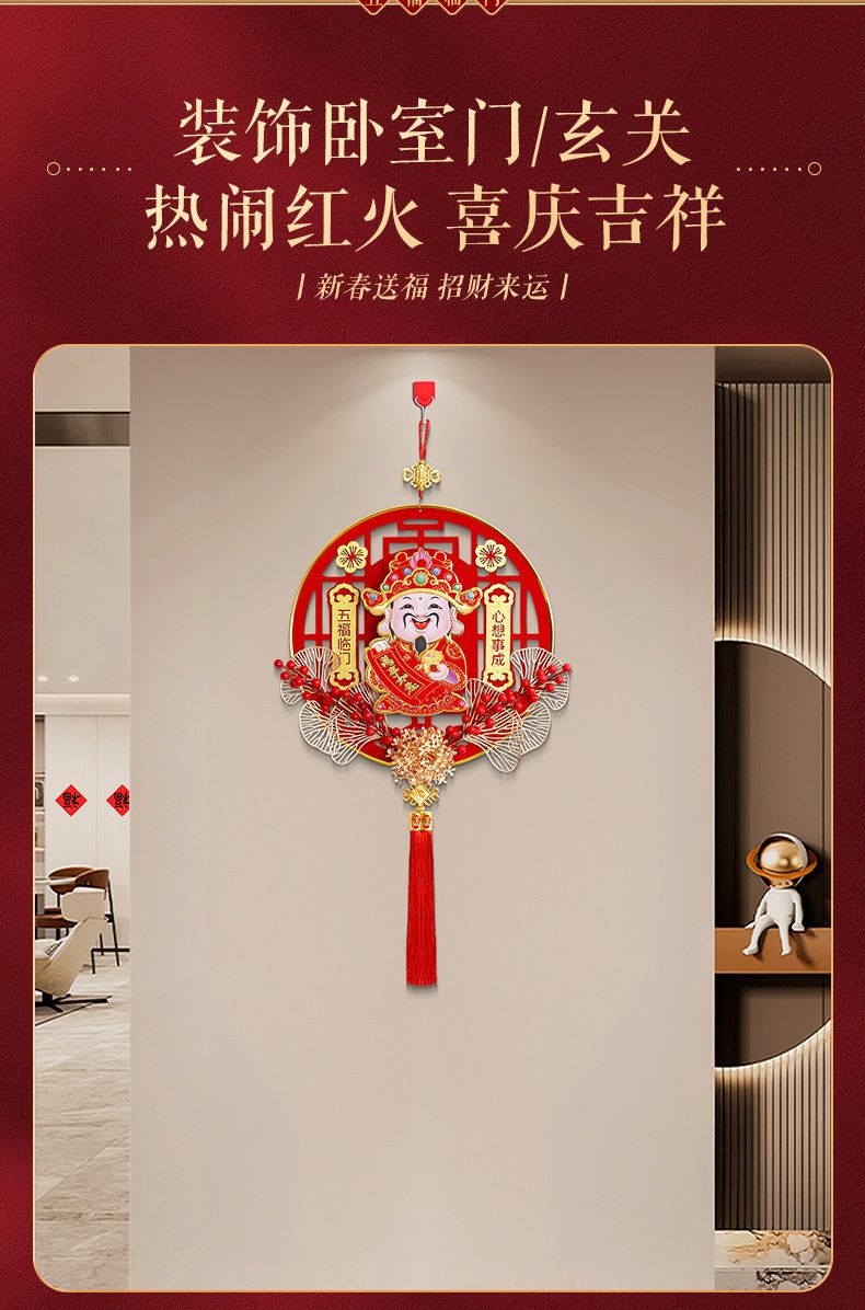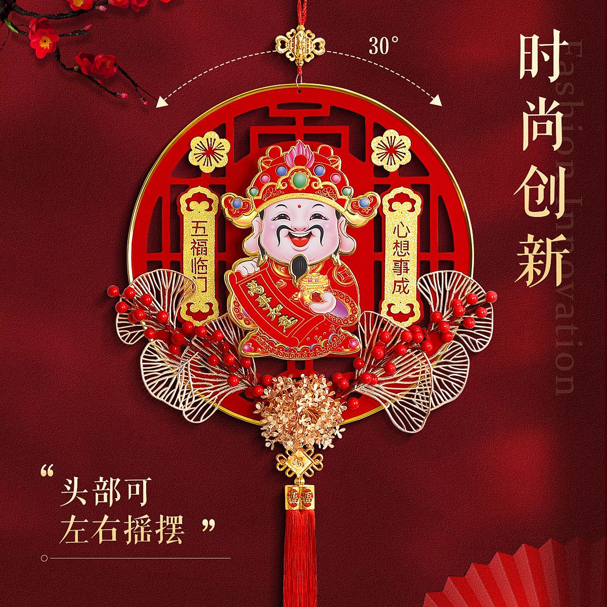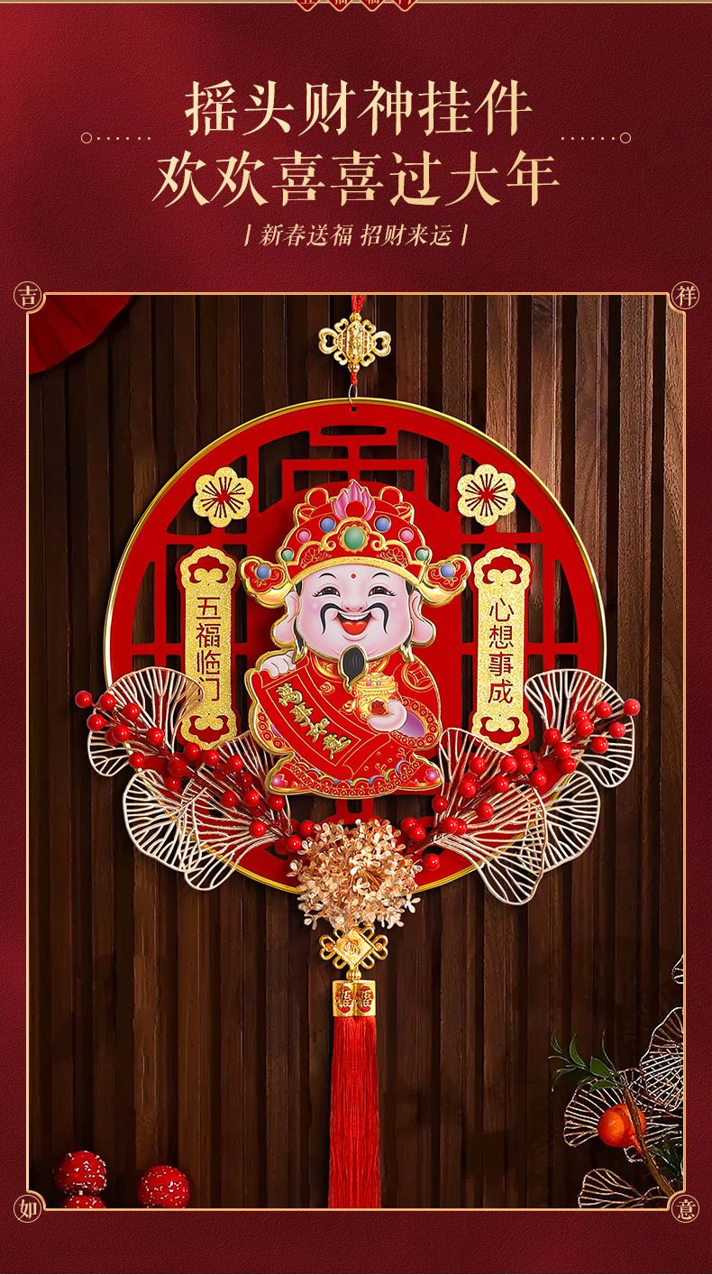 新年新款自动摇头财神爷高档客厅挂件乔迁元旦立体亚克力福字挂件