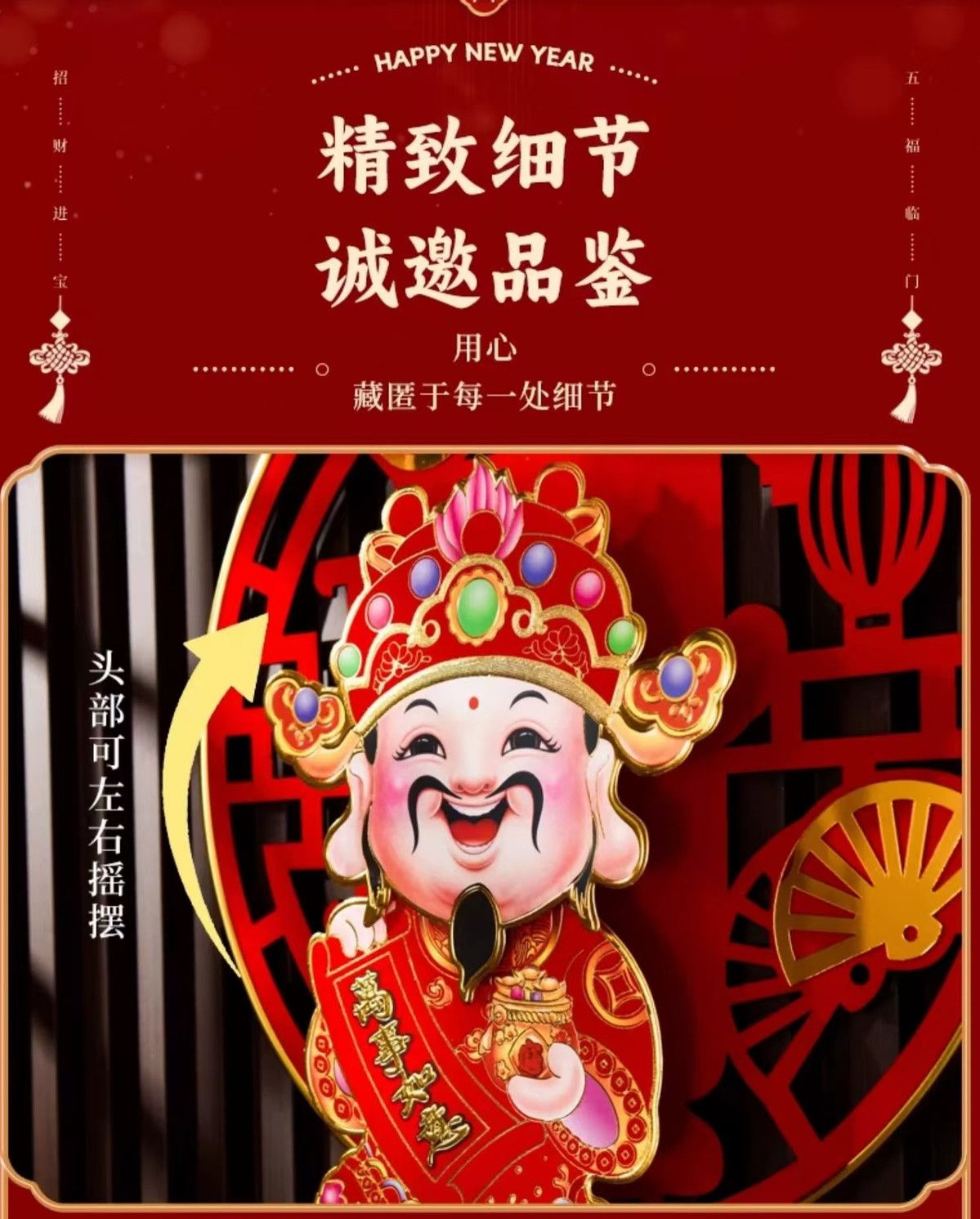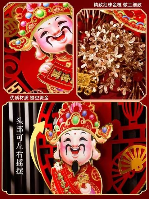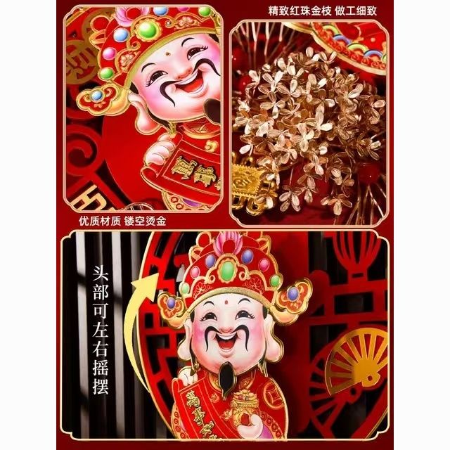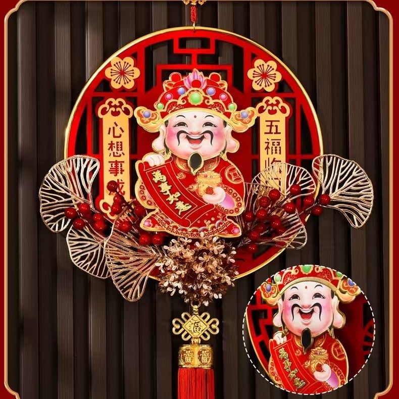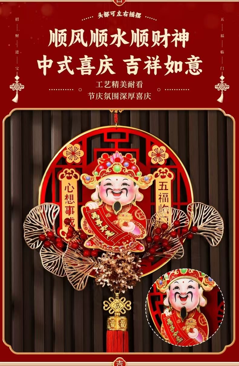2025摇头财神爷挂件春节元旦乔迁客厅背景装饰品蛇年福字新款挂饰
