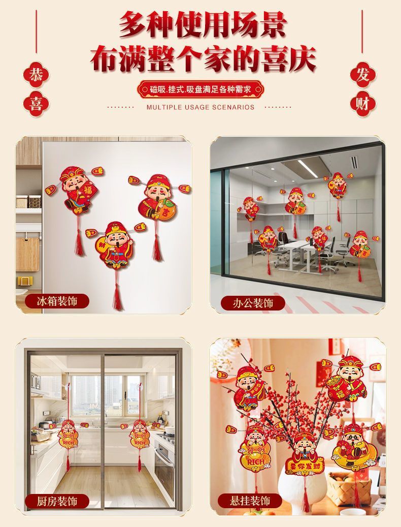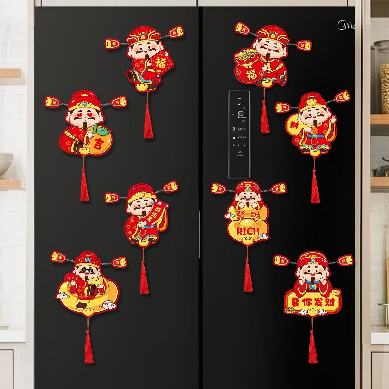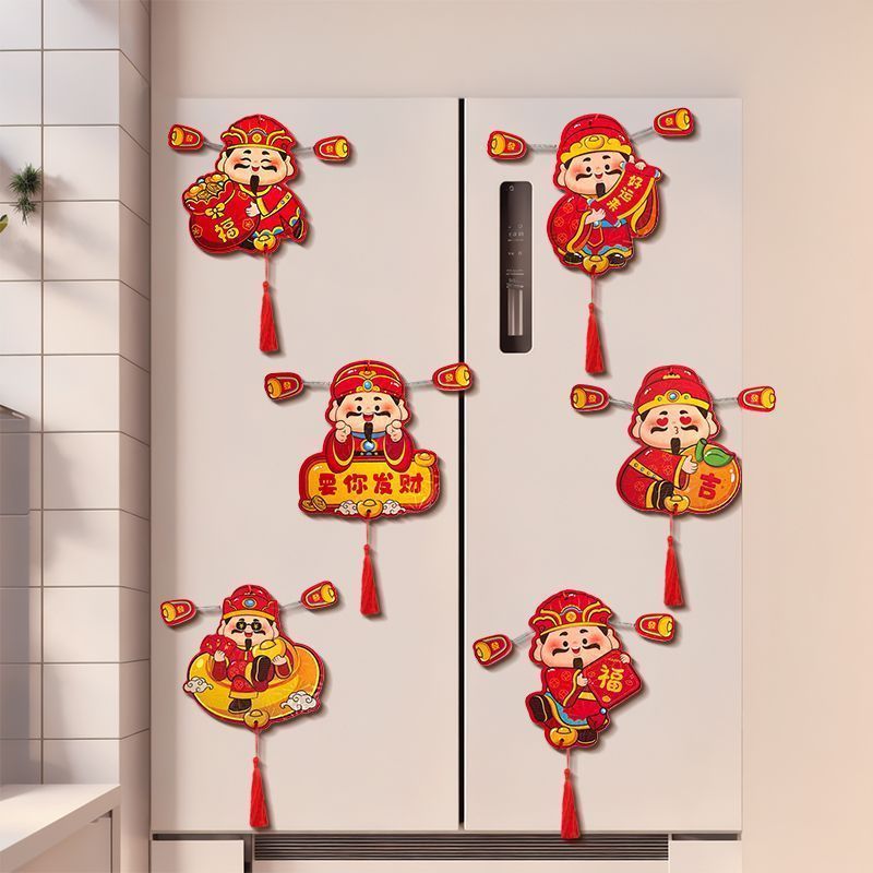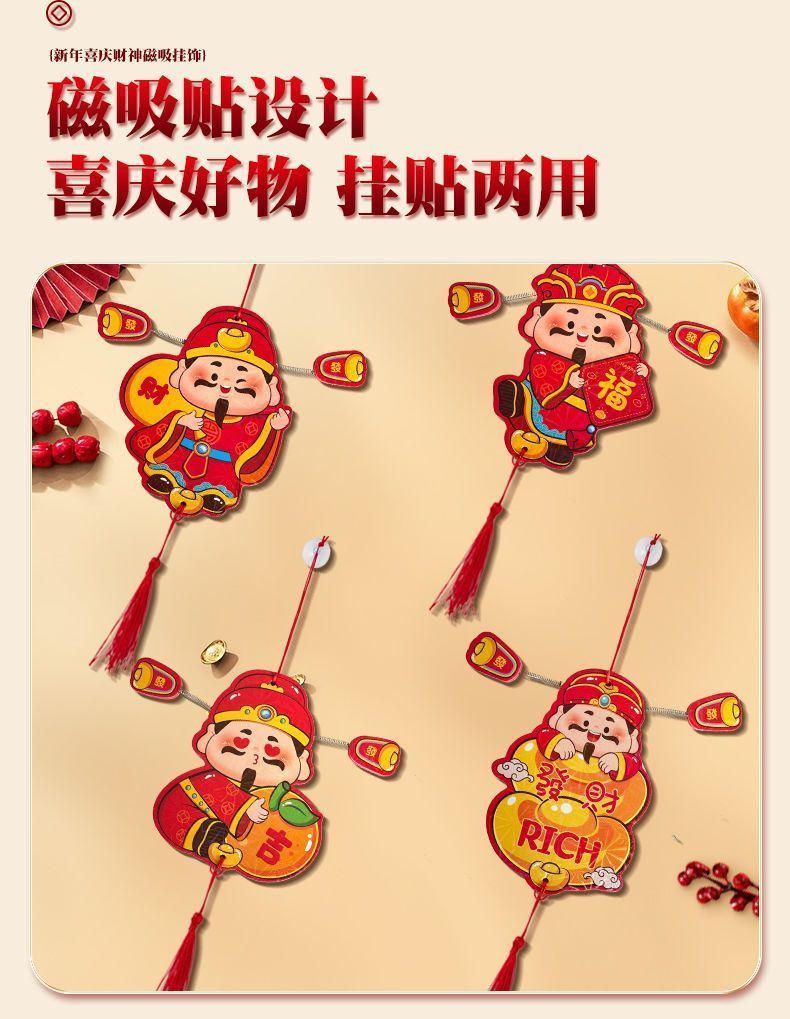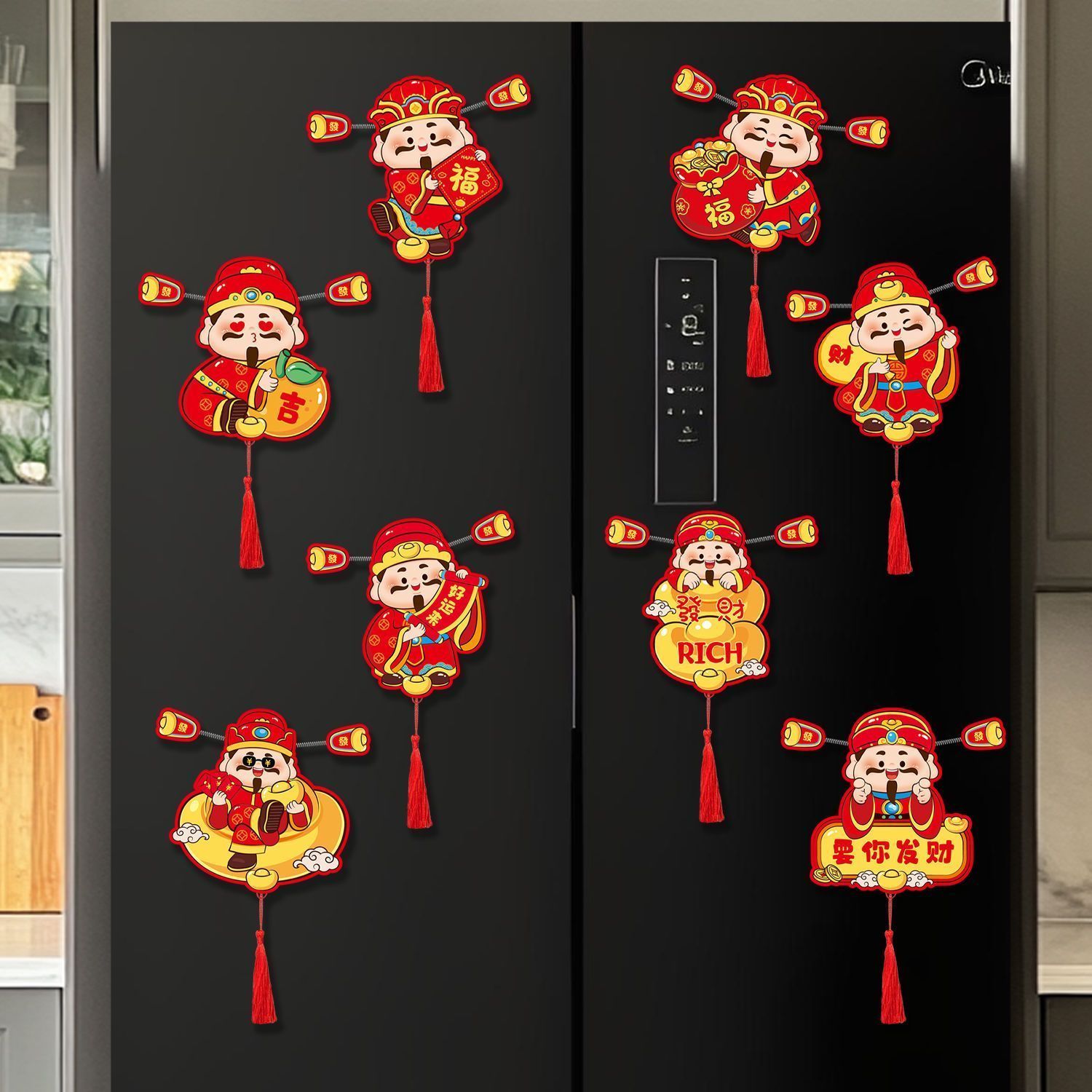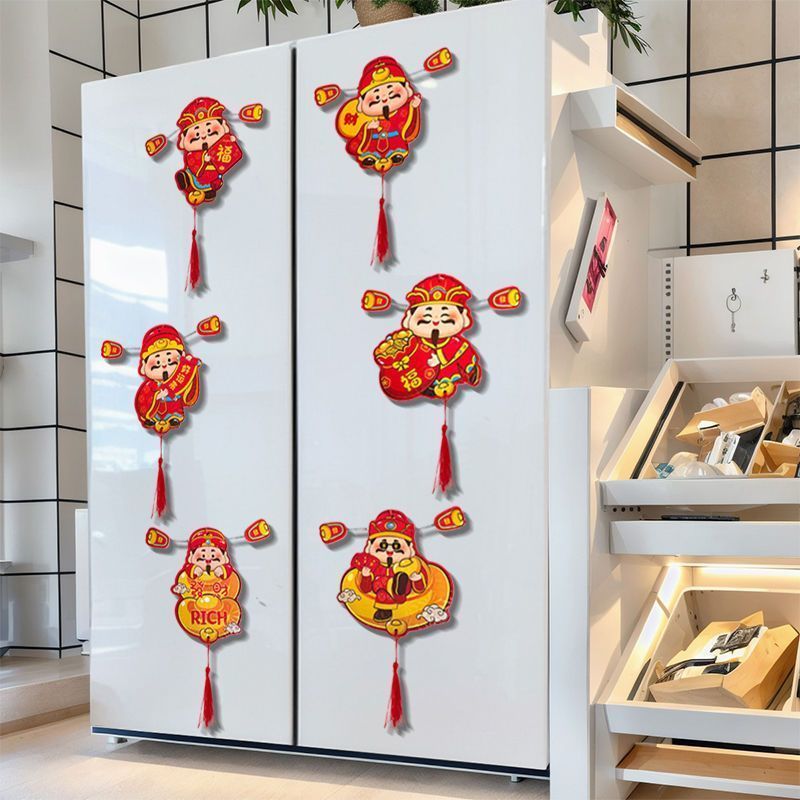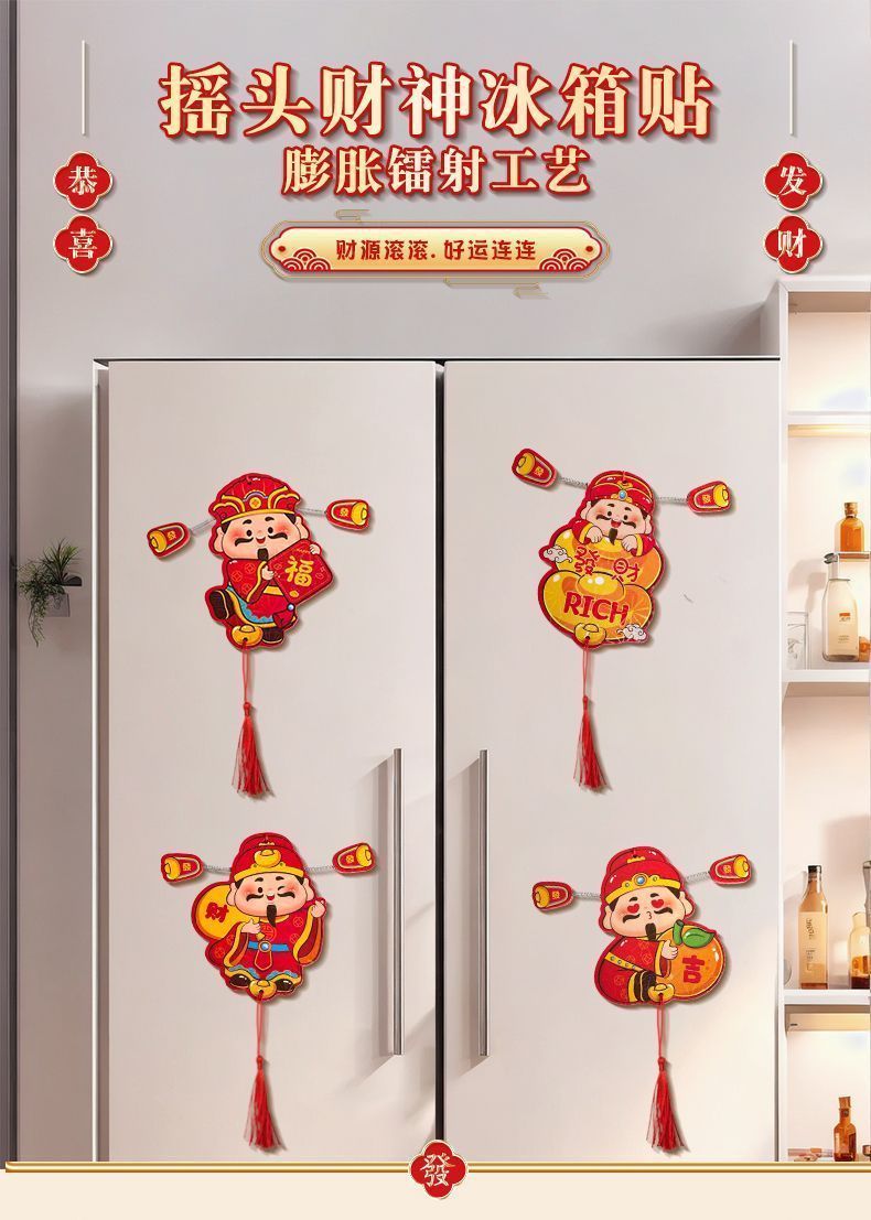 2025新年冰箱贴装饰摇头财神爷磁吸磁性贴春节过年喜庆小挂饰挂件
