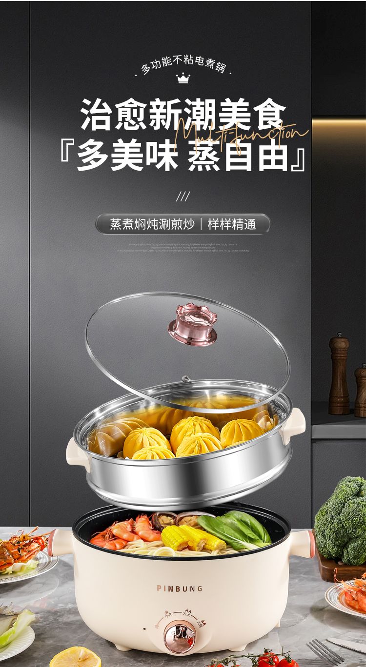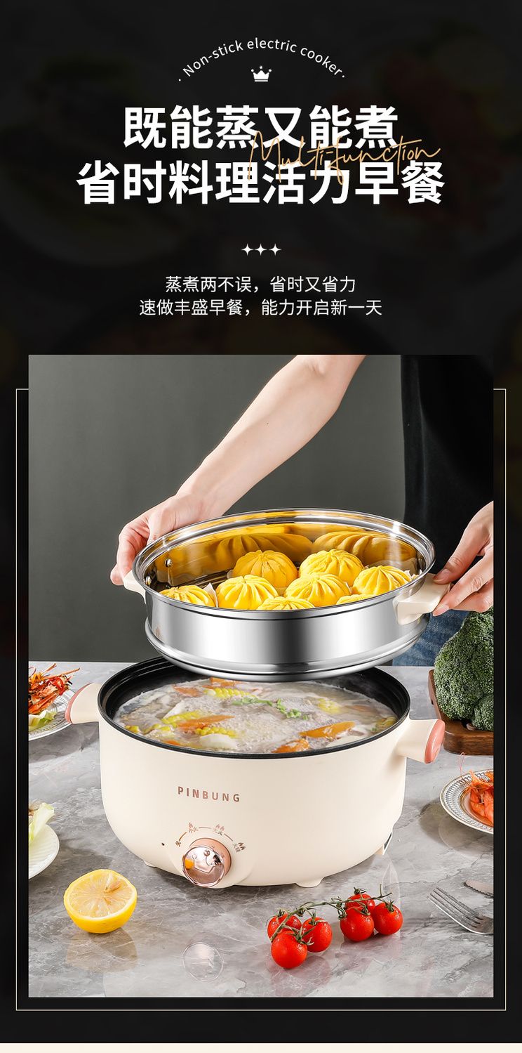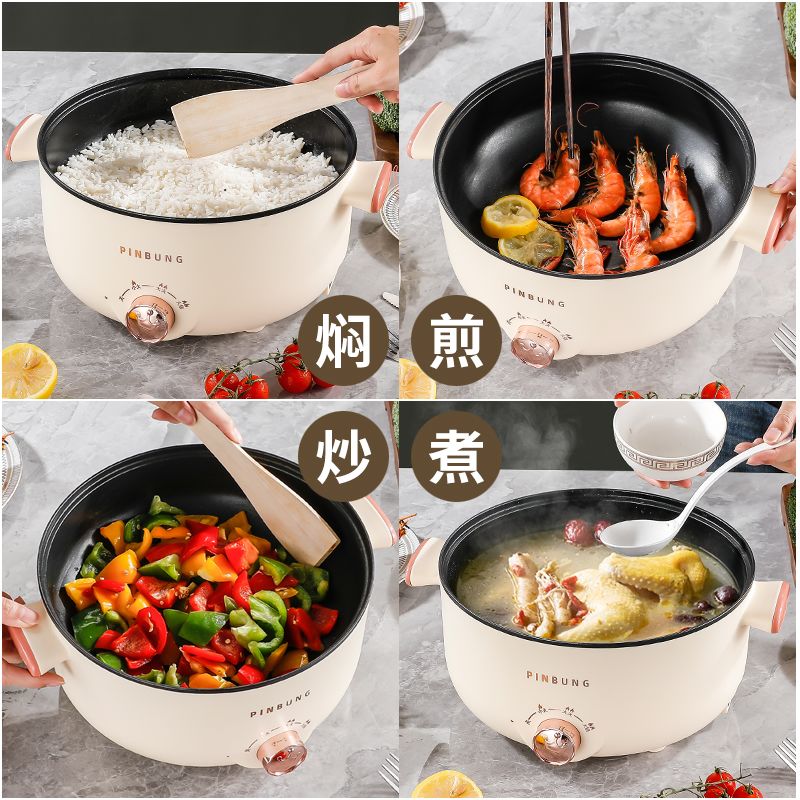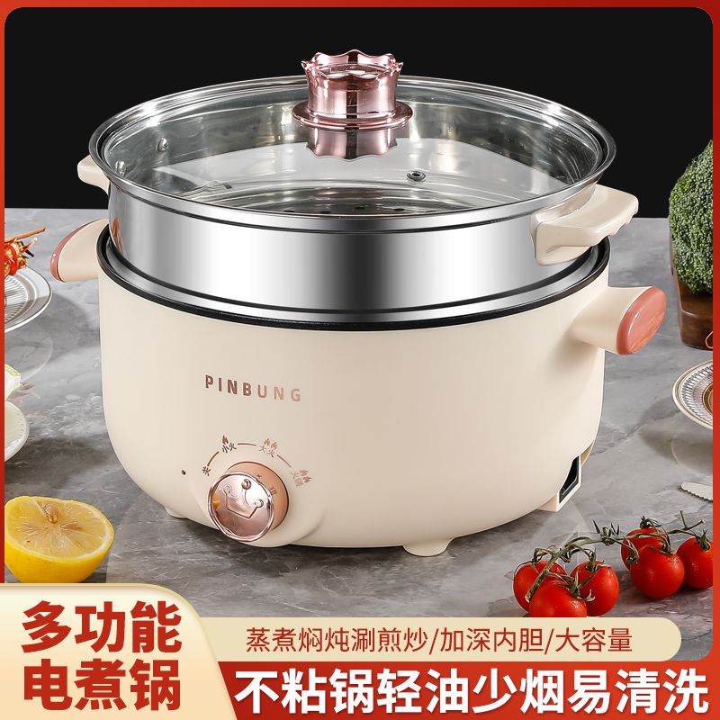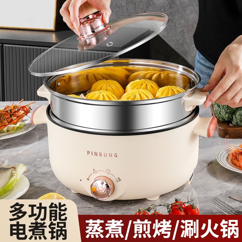 电煮锅多功能家用学生宿舍小电锅煮面电锅电炒锅蒸煮一体电热火锅