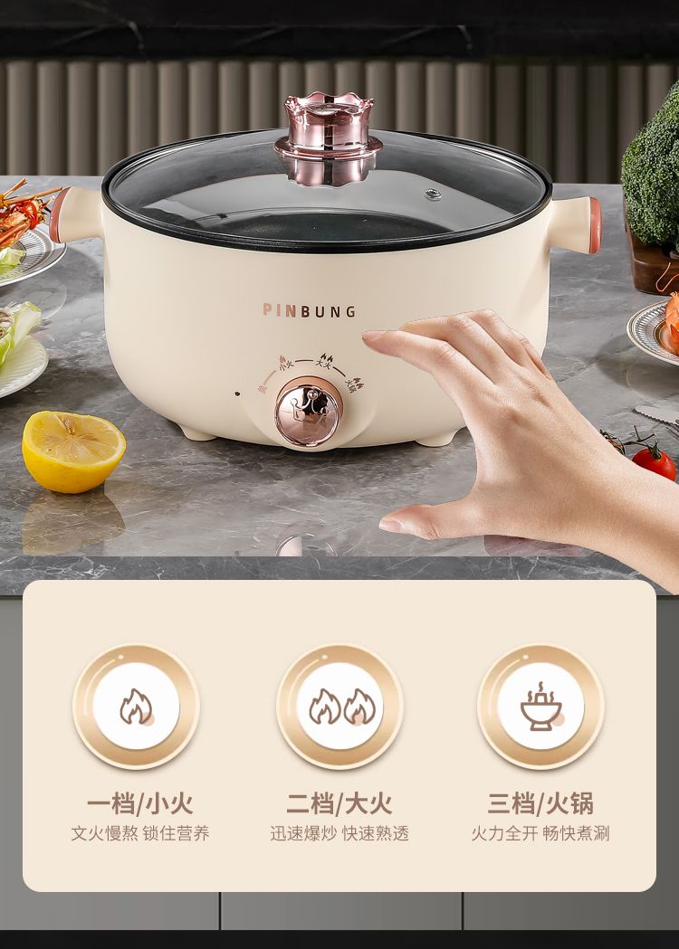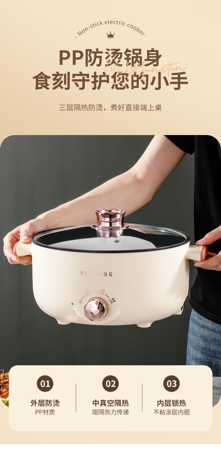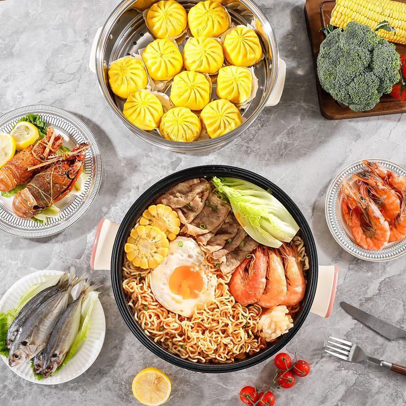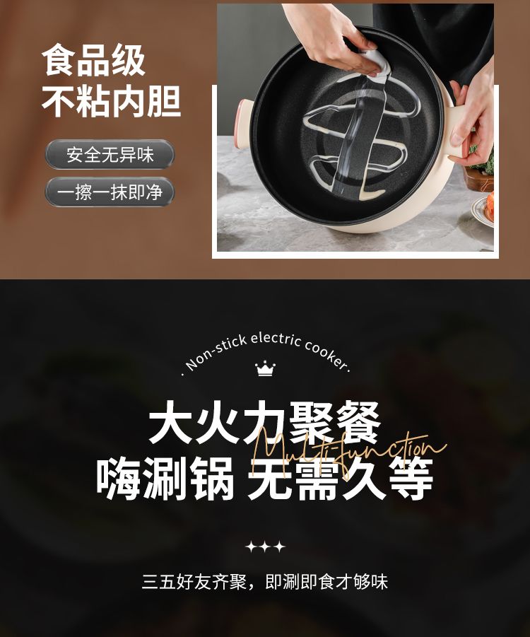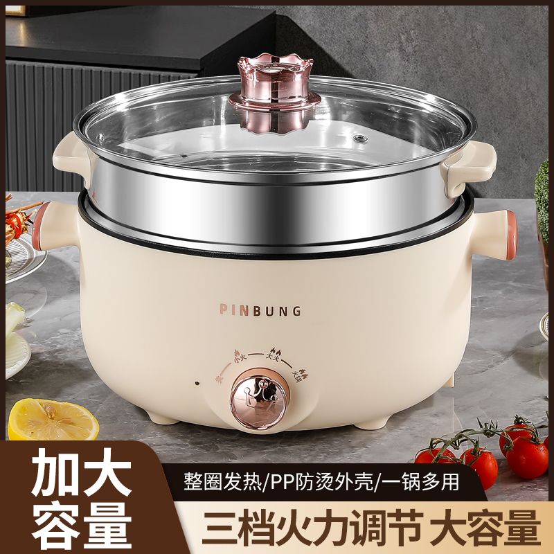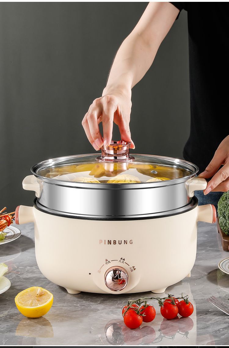 电煮锅多功能家用学生宿舍小电锅煮面电锅电炒锅蒸煮一体电热火锅