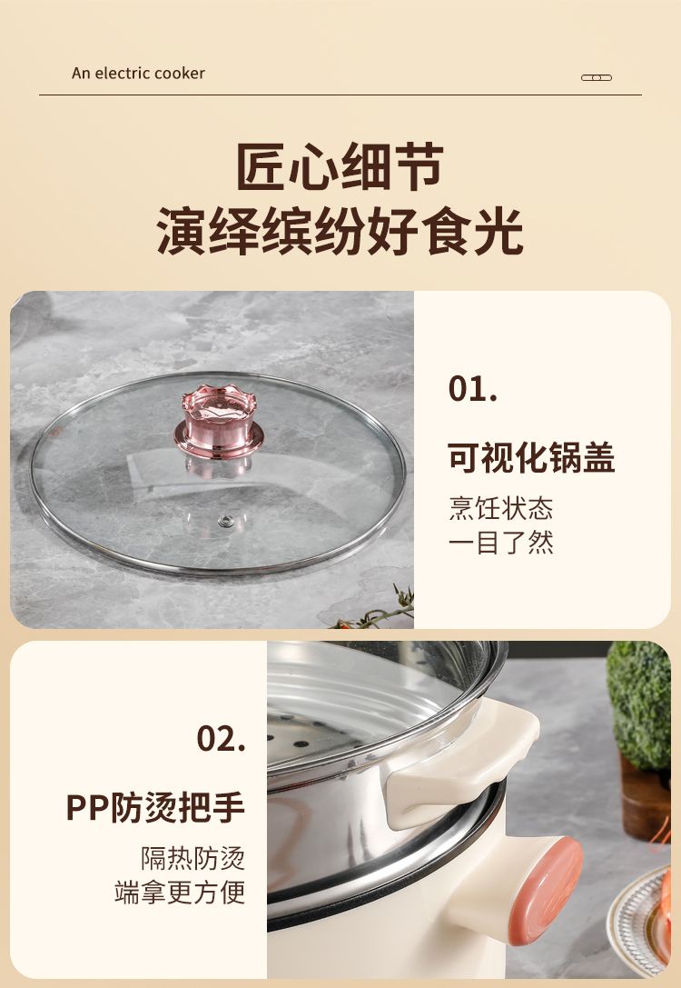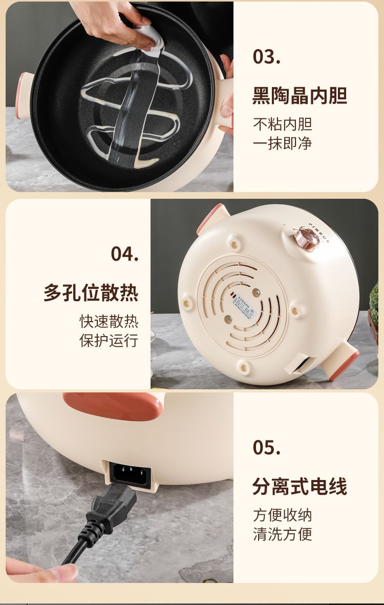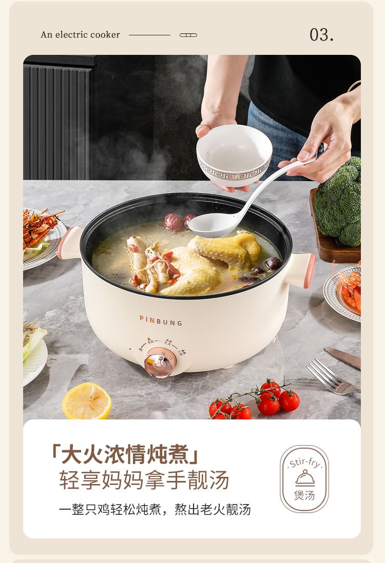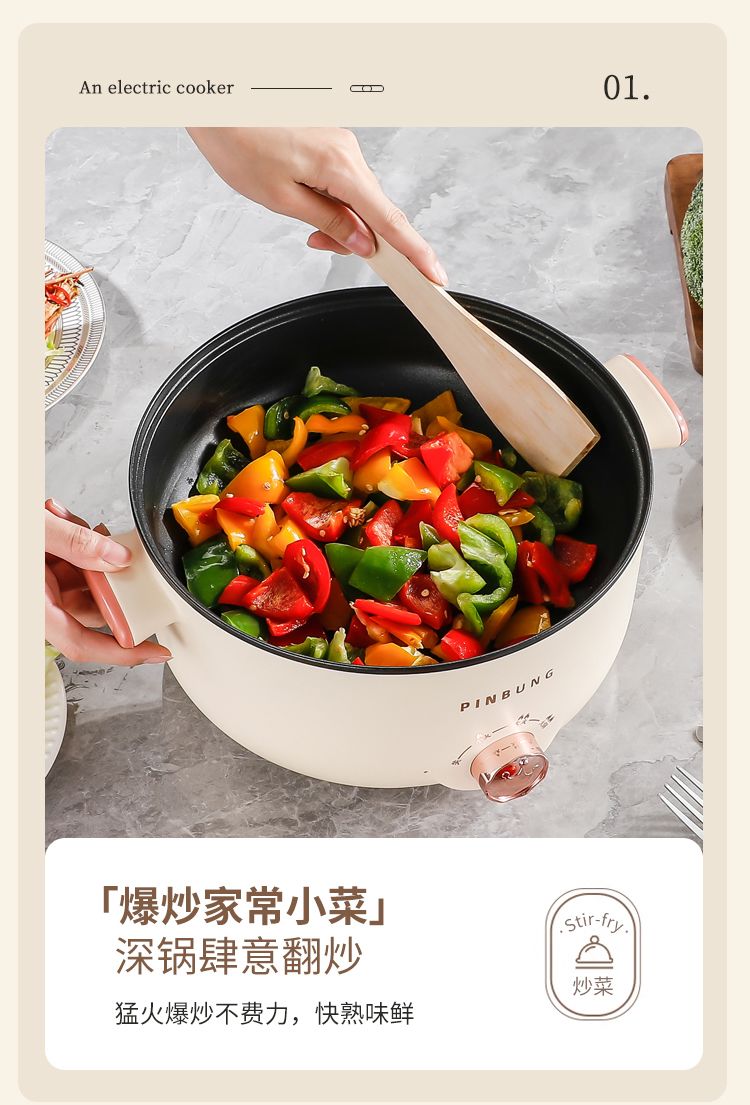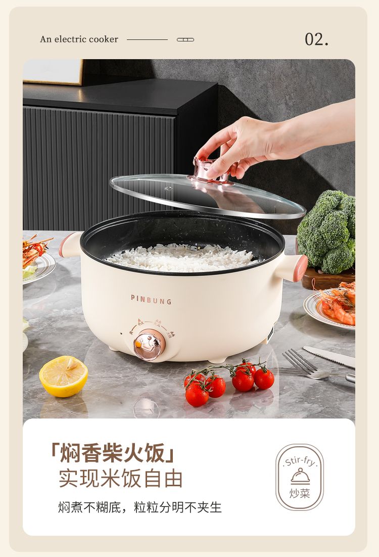 电煮锅多功能家用学生宿舍小电锅煮面电锅电炒锅蒸煮一体电热火锅