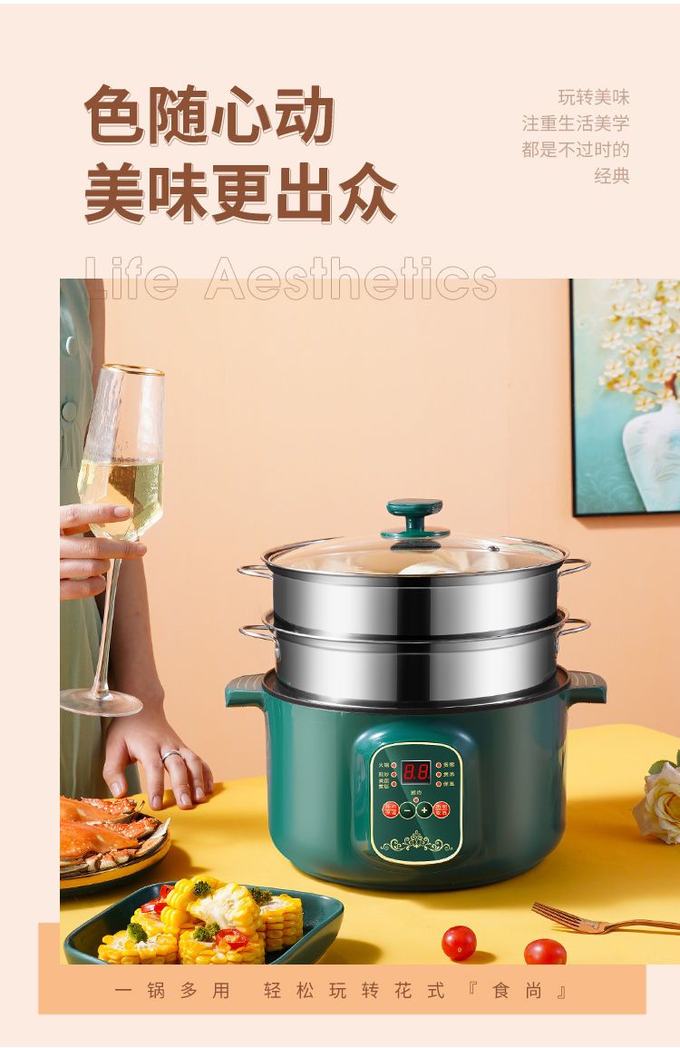 电蒸锅多功能电热锅家用炒菜小电锅一体锅多层蒸菜锅大容量电火锅