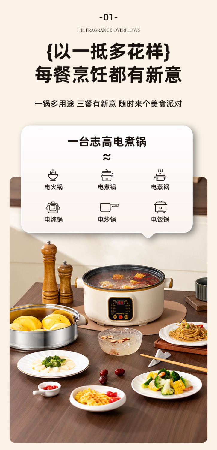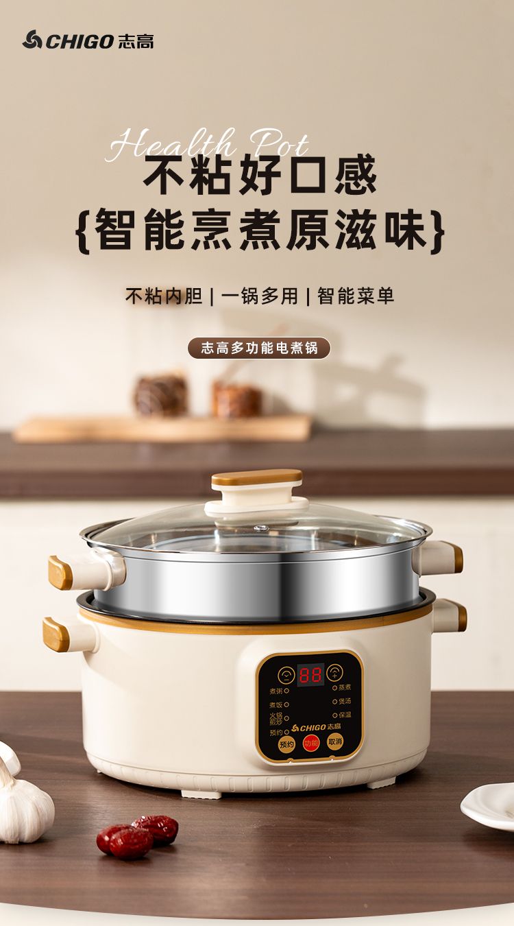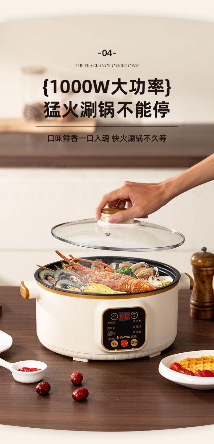 志高电煮锅多功能家用学生宿舍煮面小电锅电炒锅蒸煮一体电热火锅