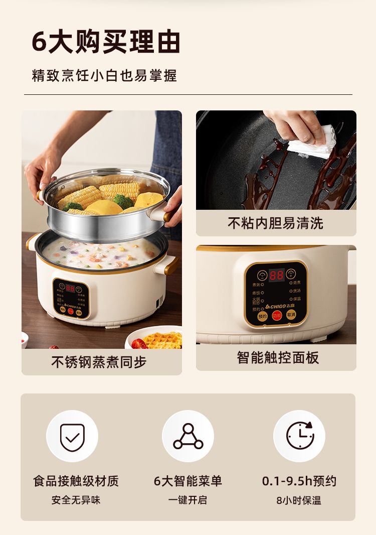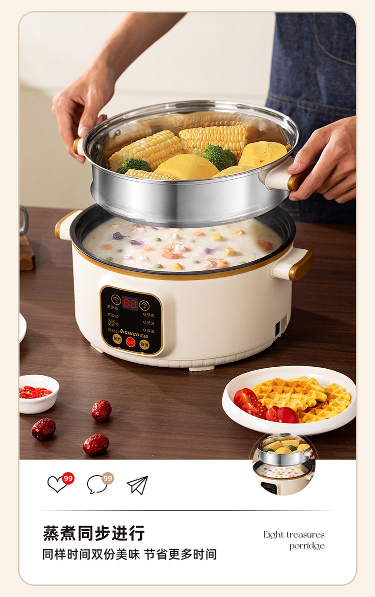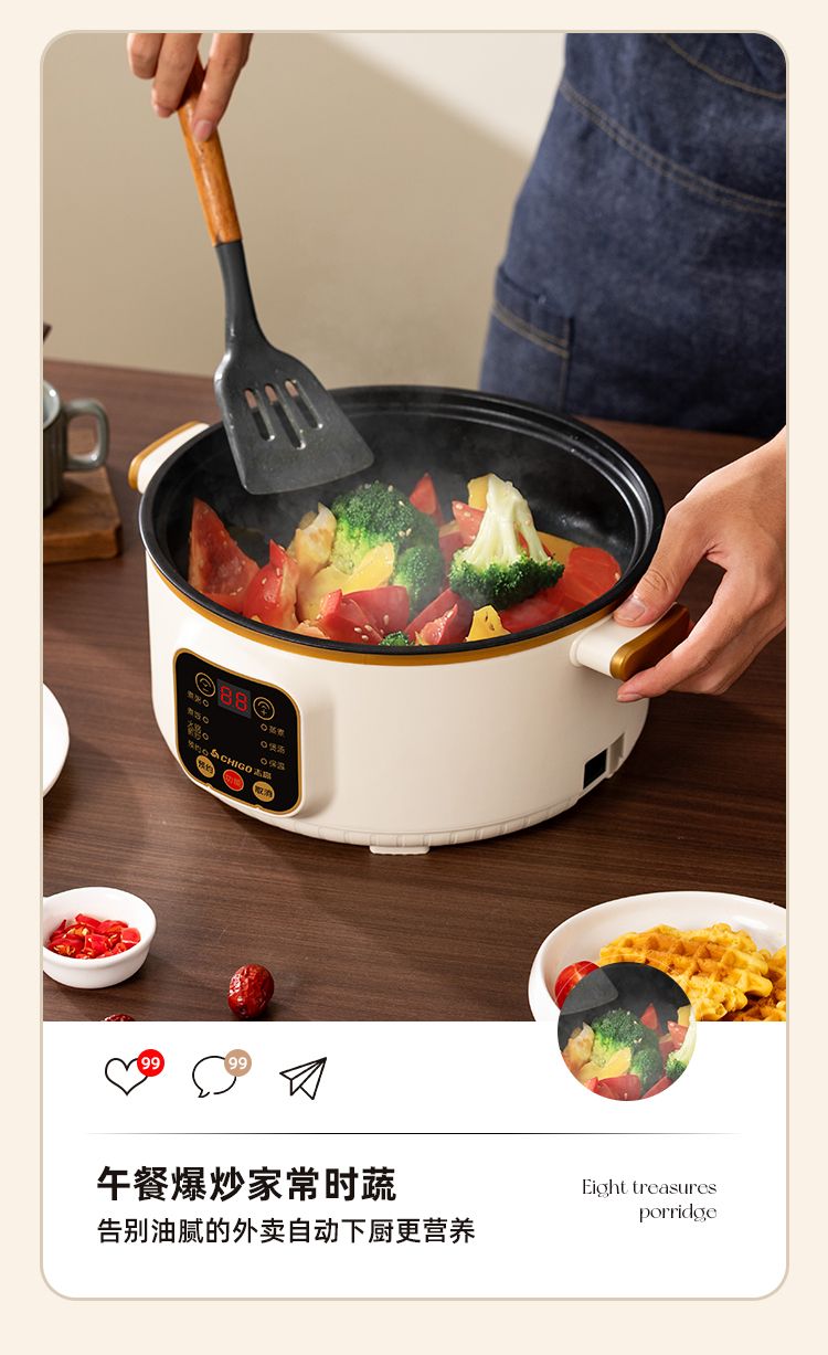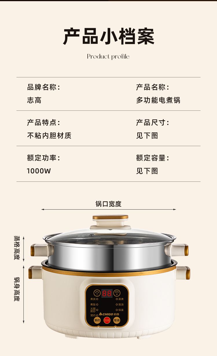 志高电煮锅多功能家用学生宿舍煮面小电锅电炒锅蒸煮一体电热火锅